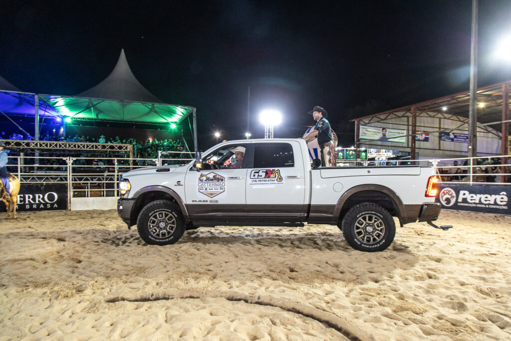 Durante a abertura da Festa uma camionete trouxe o ex campeão de Barretos que saudou a todos e não decepcionou na sua montaria da noite, assim como seu irmão Luiz Fernando Ribeiro