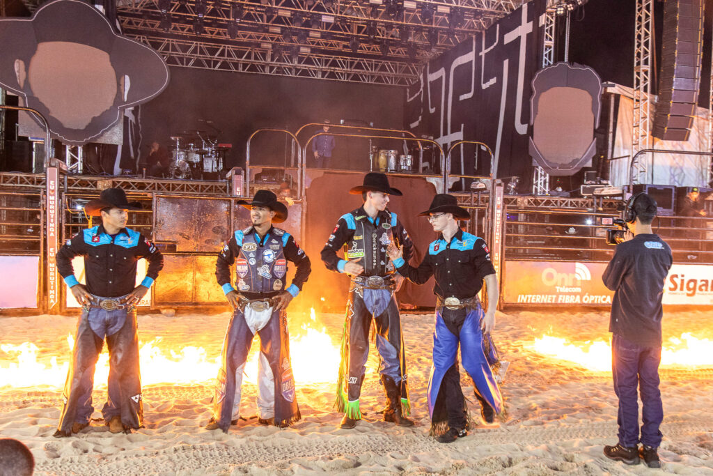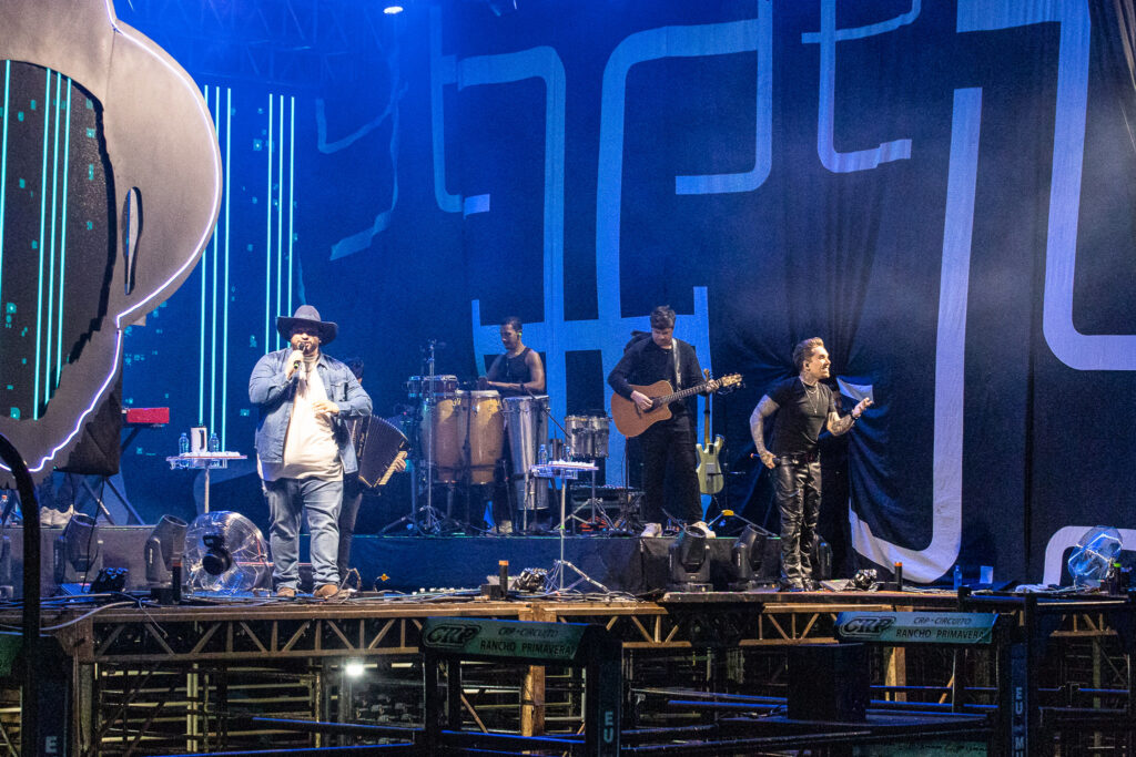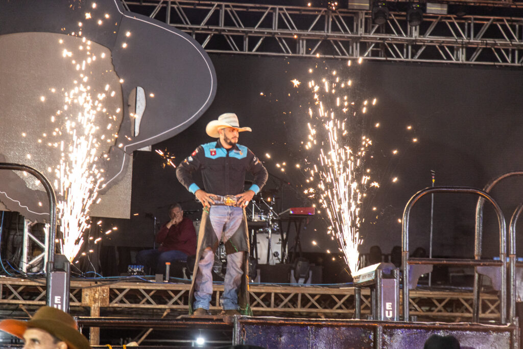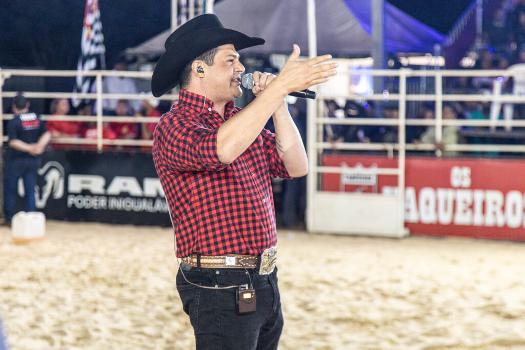 Apos as montarias a atração se voltou ao palco com a apresentação da dupla Felipe e Rodrigo. A plateia cantou junto os grandes sucessos da dupla e que até deu uma canja tocando duas musicas da Banda Charlie Brown Jr.