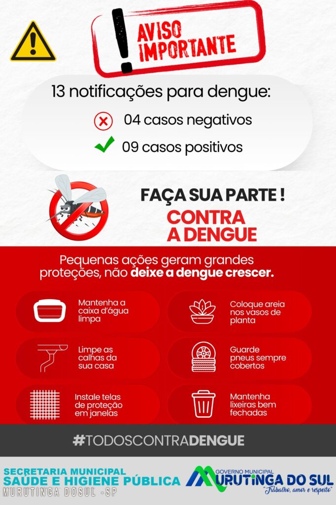 O quadro abaixo contem os números da Dengue em Murutinga.