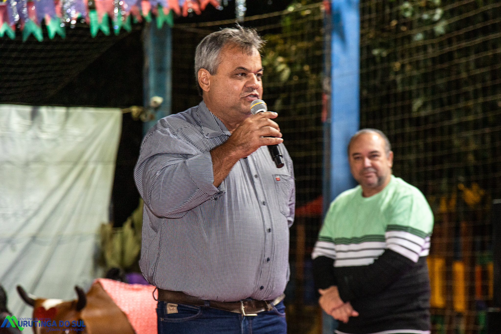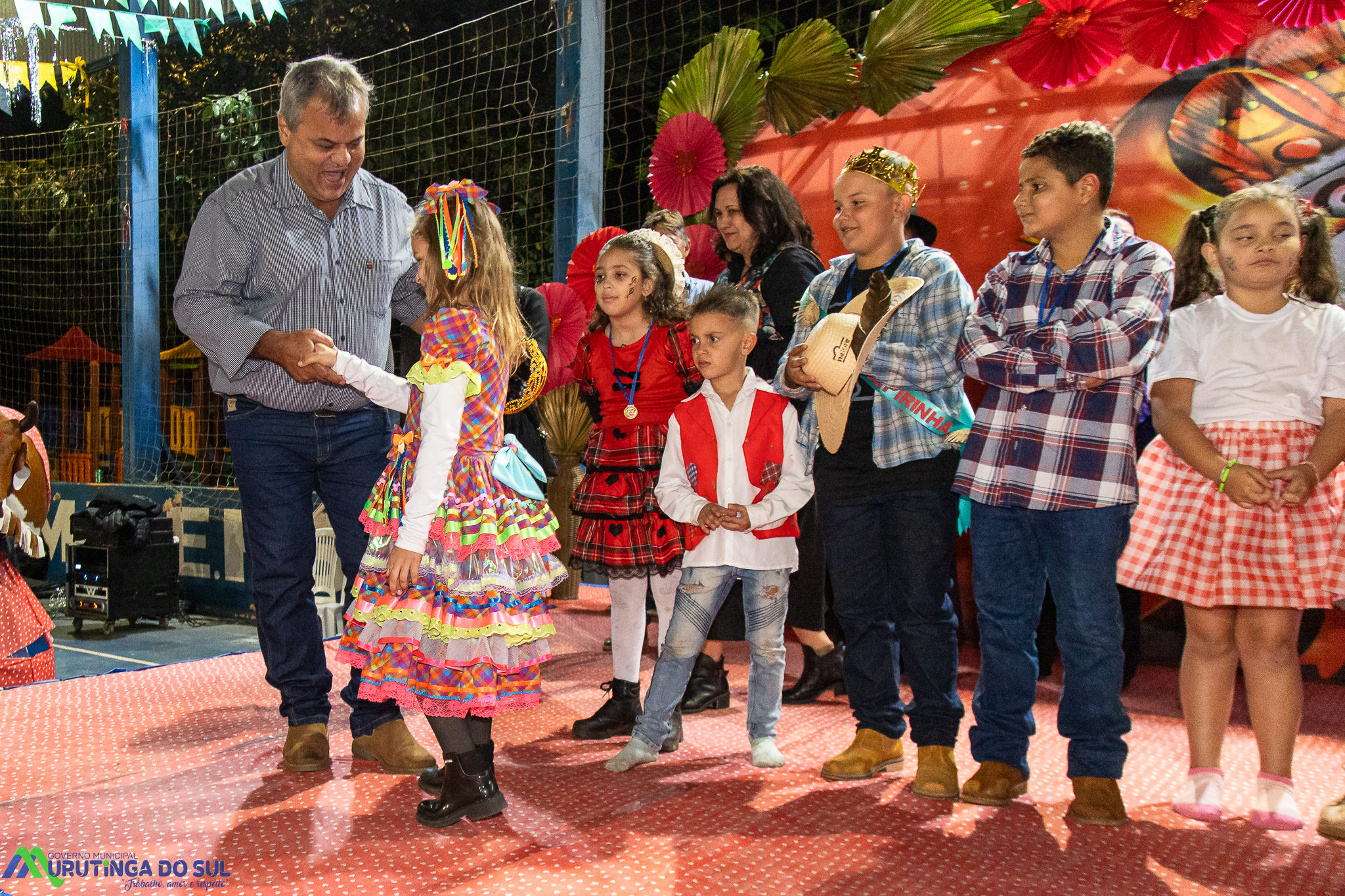 O prefeito Cristiano esteve presente no palco juntamente com a 1º dama Andreia, o Vice Kikão e sua esposa Eliana, o Presidente da Câmara Municipal Vanderlei Ferreira representando os vereadores presentes. “Nossa educação vai muito bem, nossa educação é Medalha de ouro e graças a Deus podemos fazer essa bela festa. Nossa Educação agora conta com carro próprio para melhor atender nossa Direção, uma reivindicação antiga e que pudemos conquistar com recursos próprios” – disse o Prefeito ao abrir a Festa da Cultura.