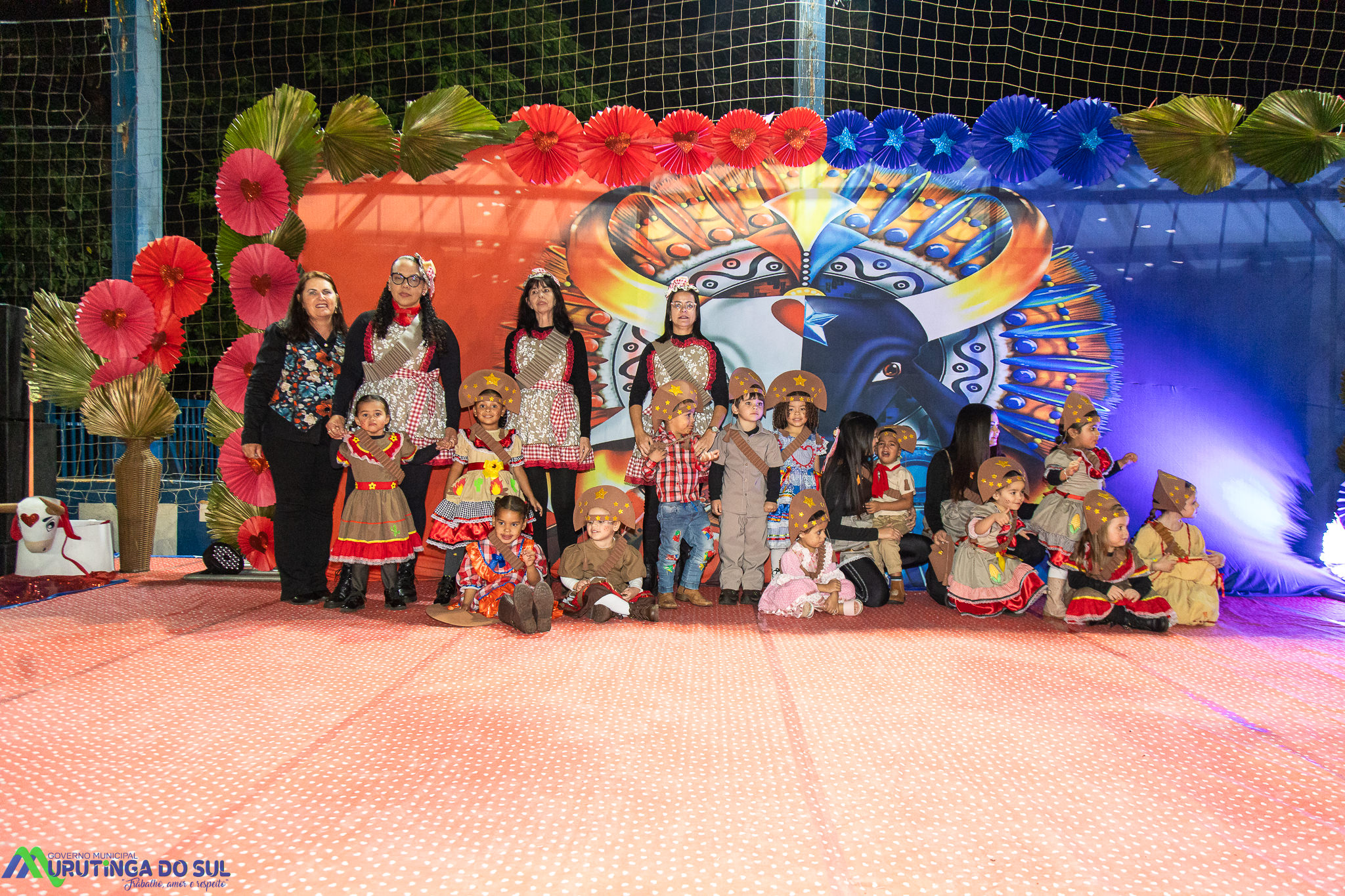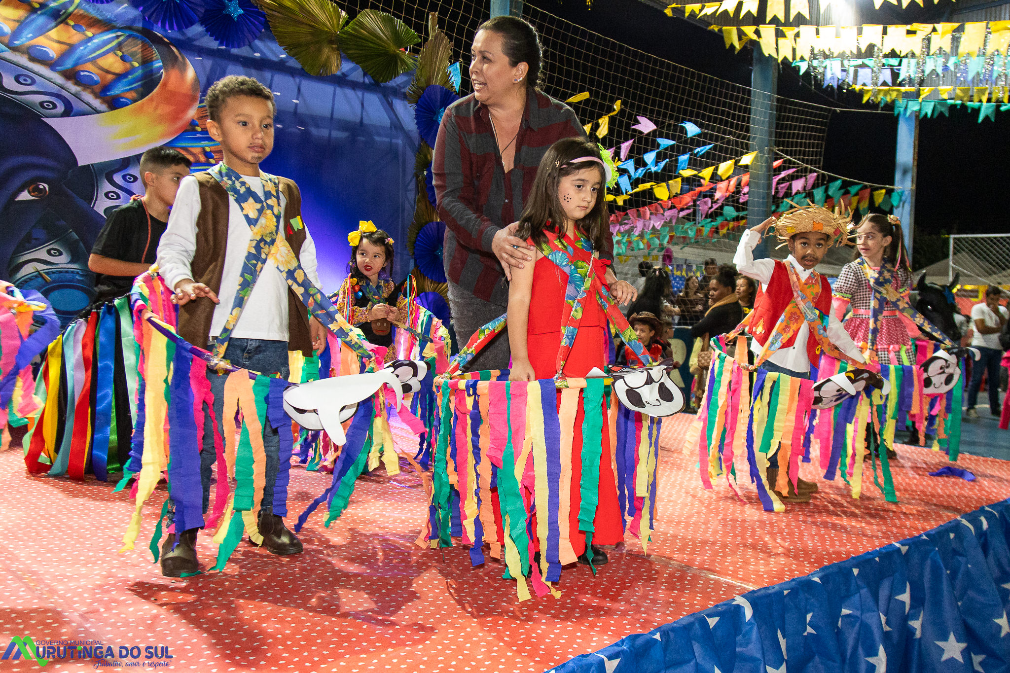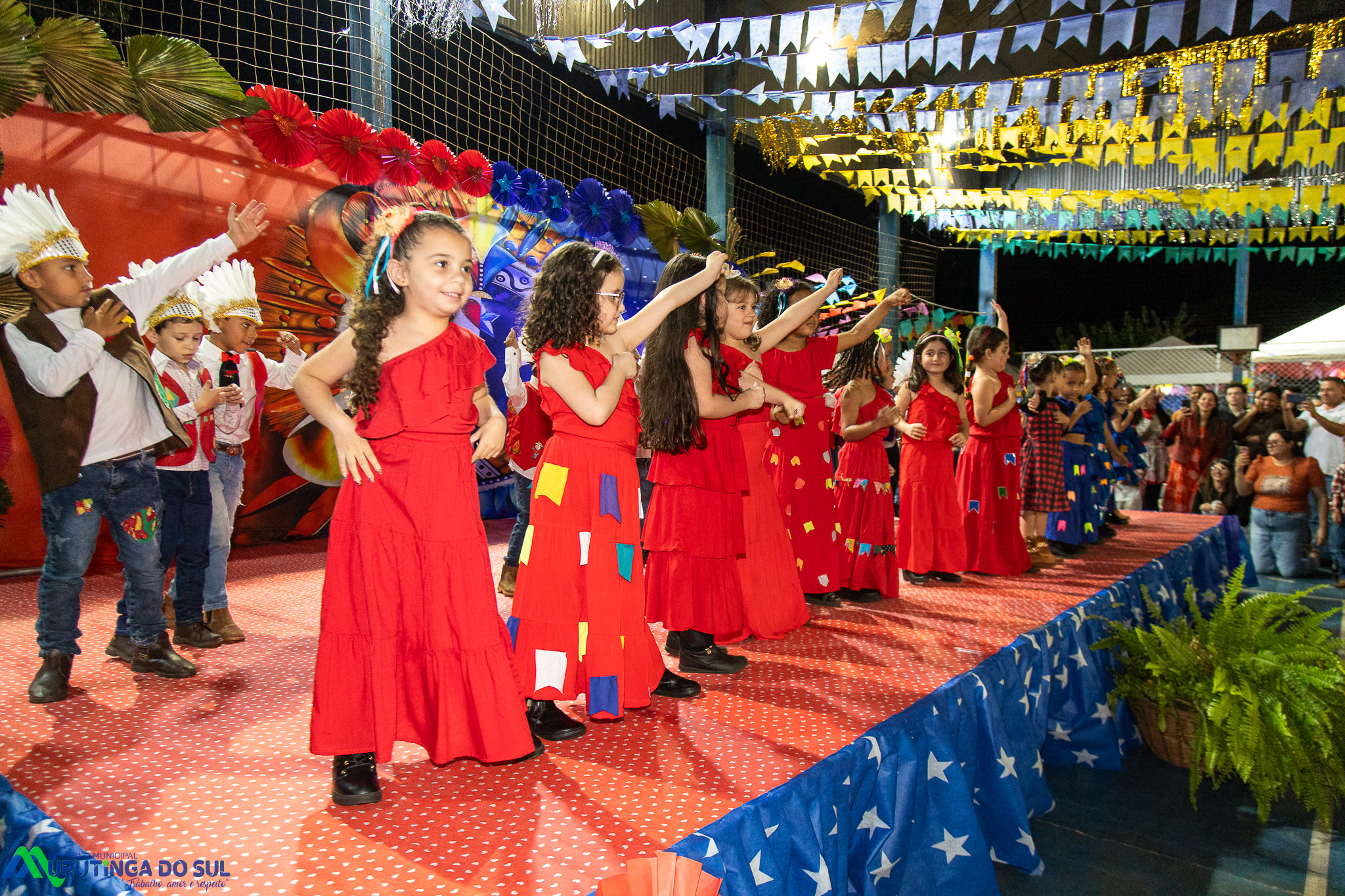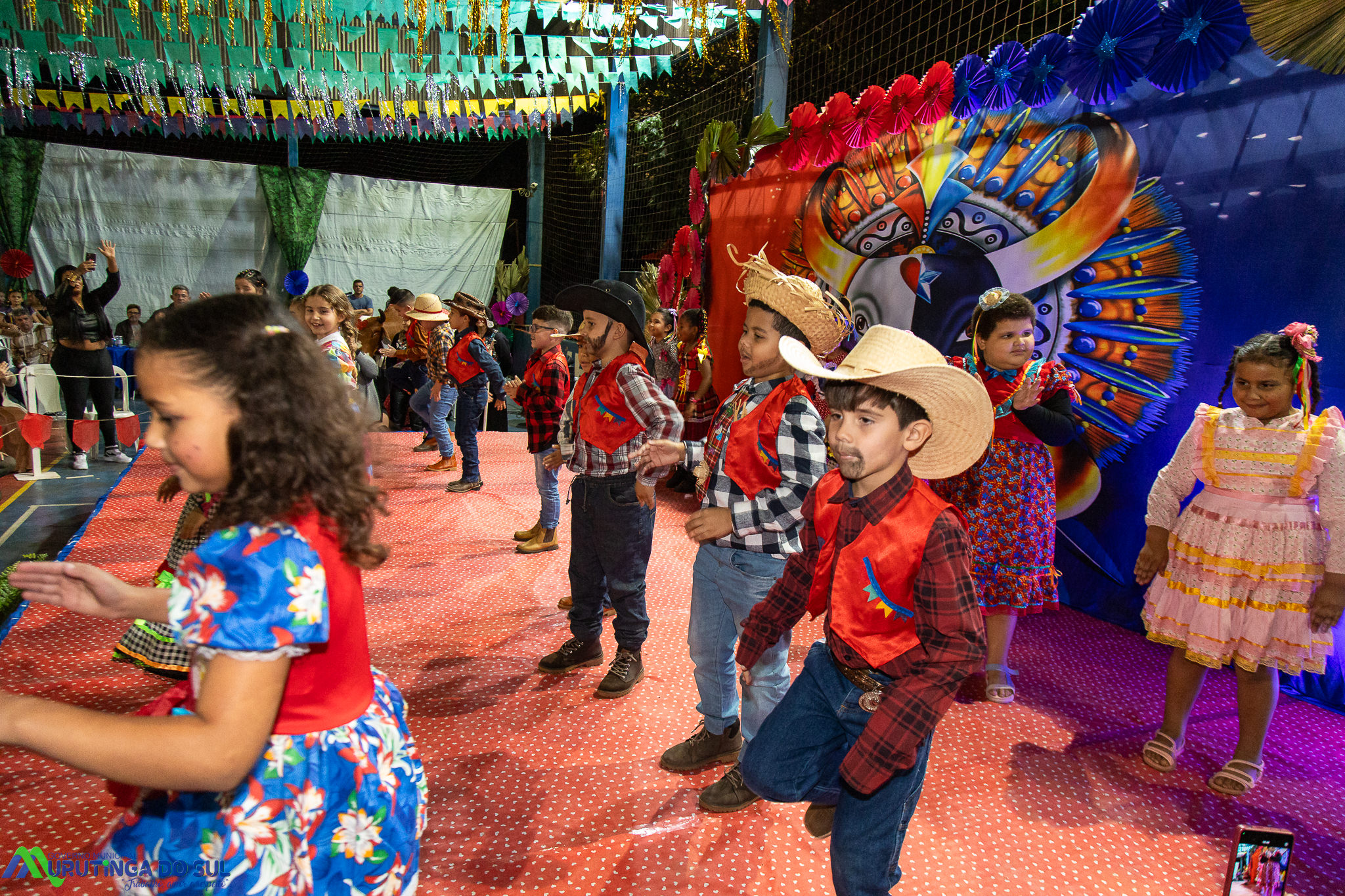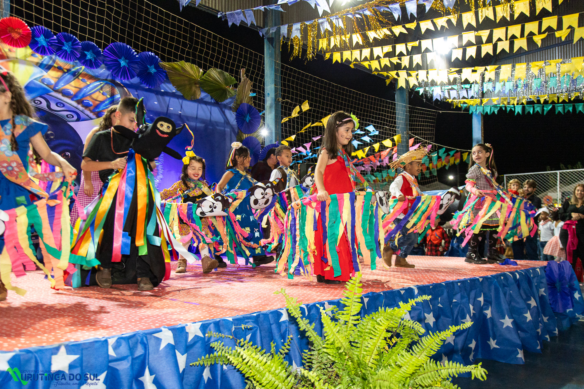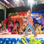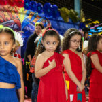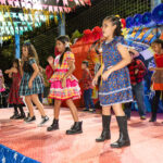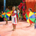 Participaram as crianças do maternal da C.E.I. e tbm as crianças da EMEIF A. Bim Storti com danças típicas daquela região como carimbó, boi bumba, Catira, Frevo e outras. Alem das danças as crianças puderam desfrutar gratuitamente de brinquedos infláveis, touro mecânico e pipoca.