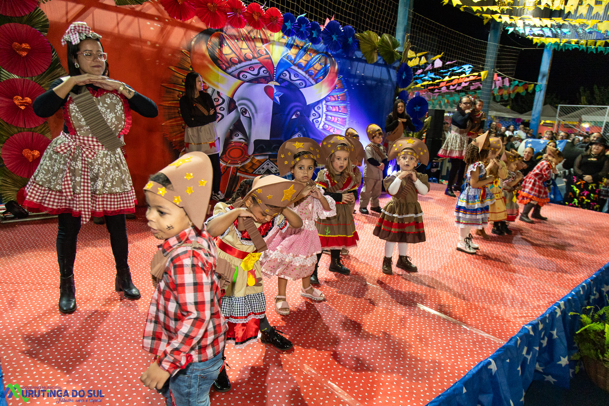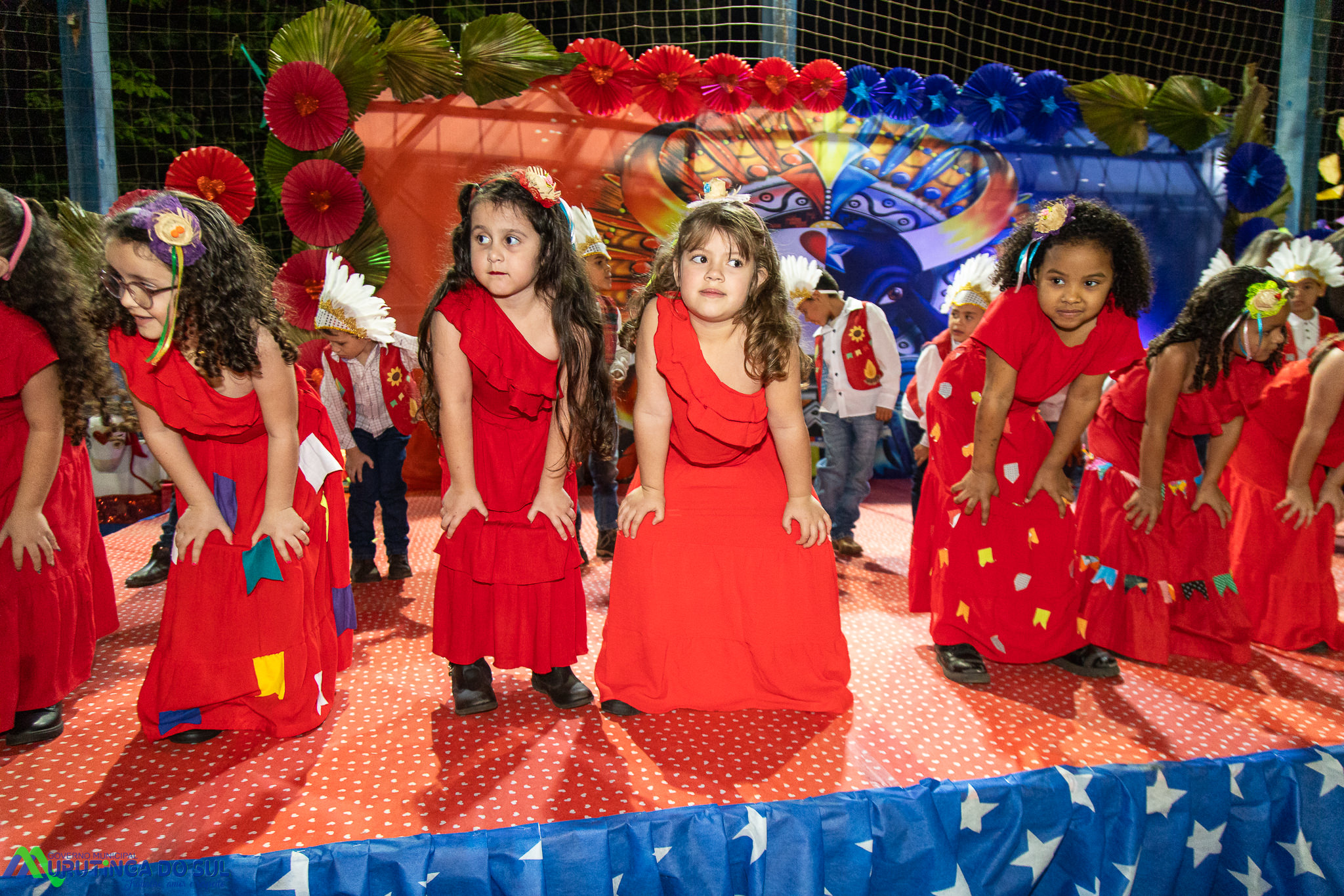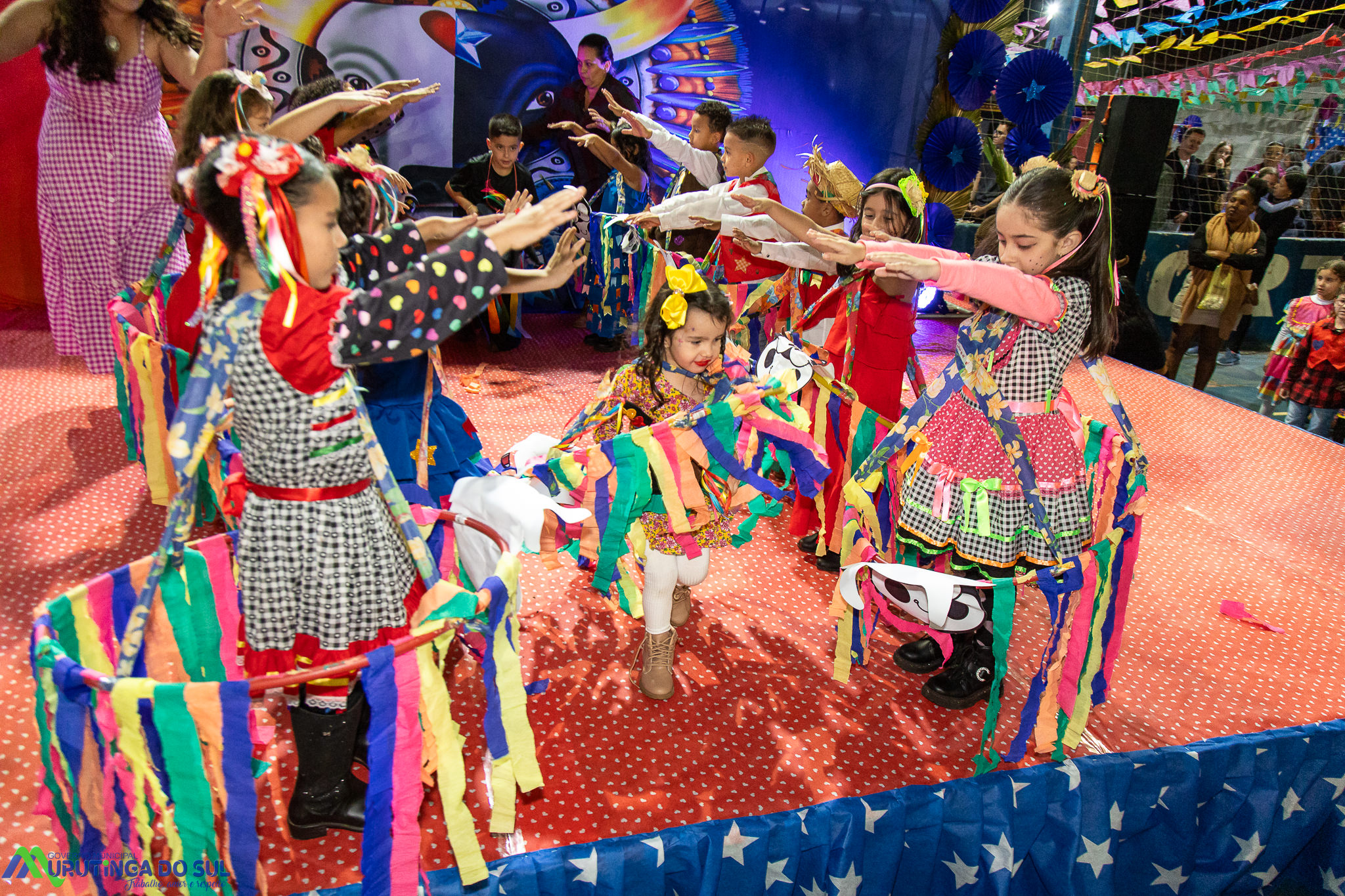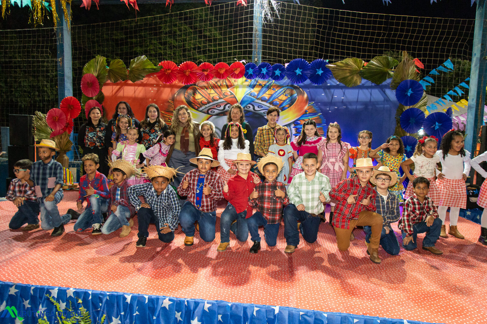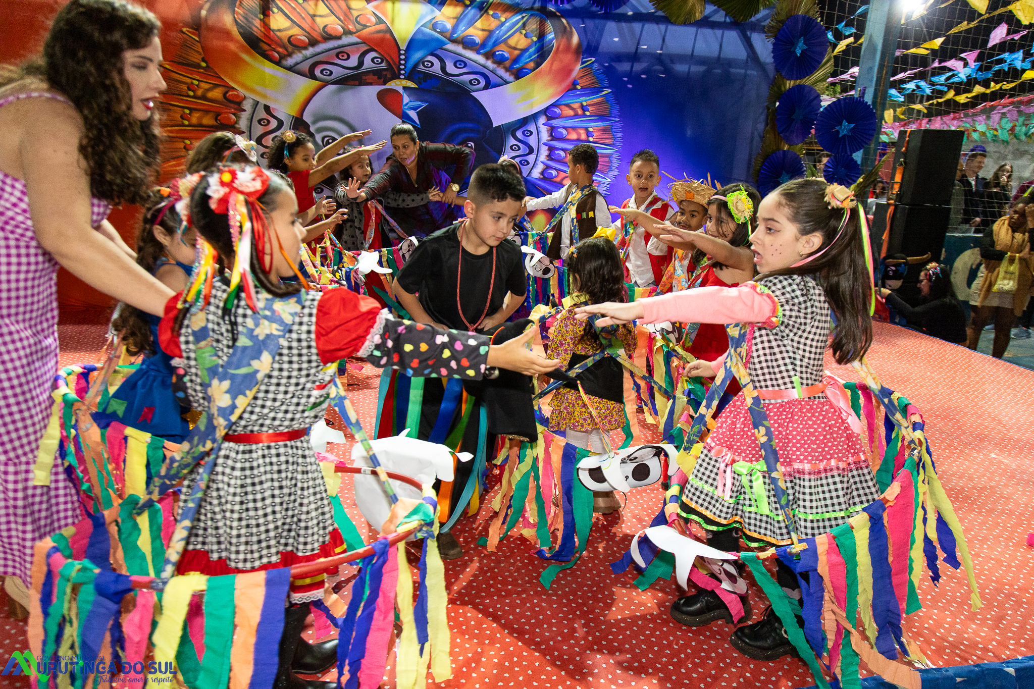 Participaram as crianças do maternal da C.E.I. e tbm as crianças da EMEIF A. Bim Storti com danças típicas daquela região como carimbó, boi bumba, Catira, Frevo e outras. Alem das danças as crianças puderam desfrutar gratuitamente de brinquedos infláveis, touro mecânico e pipoca.