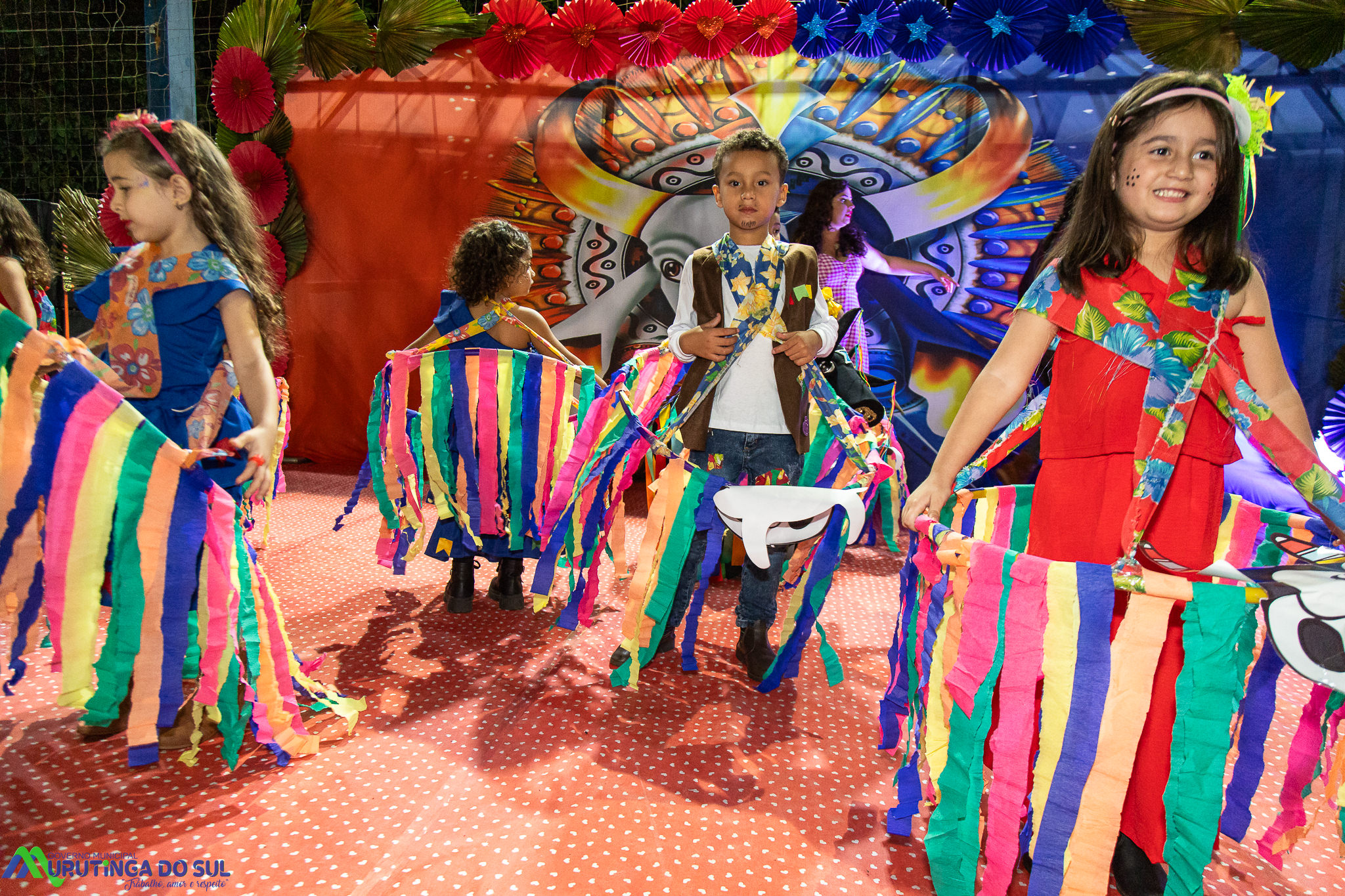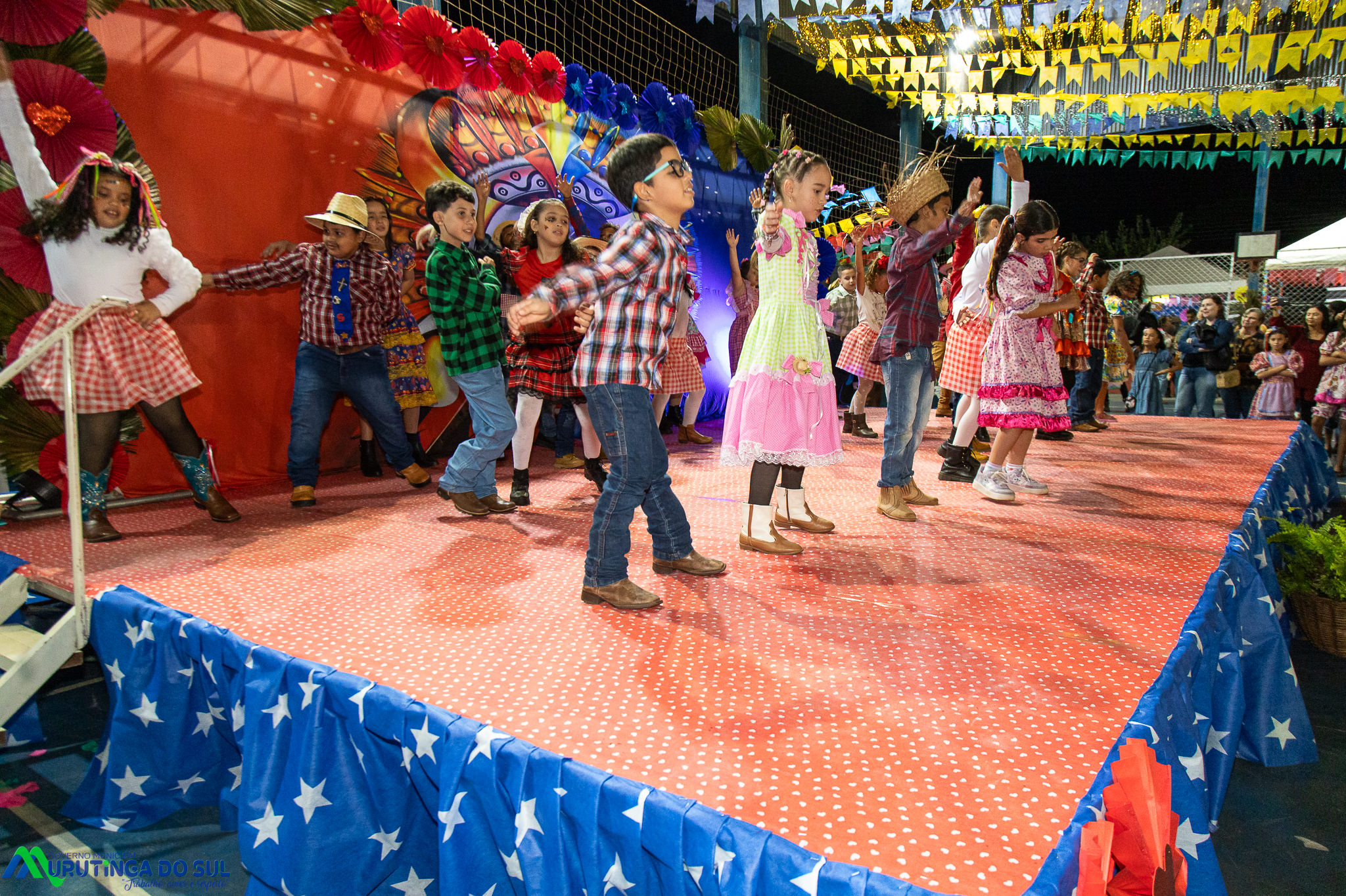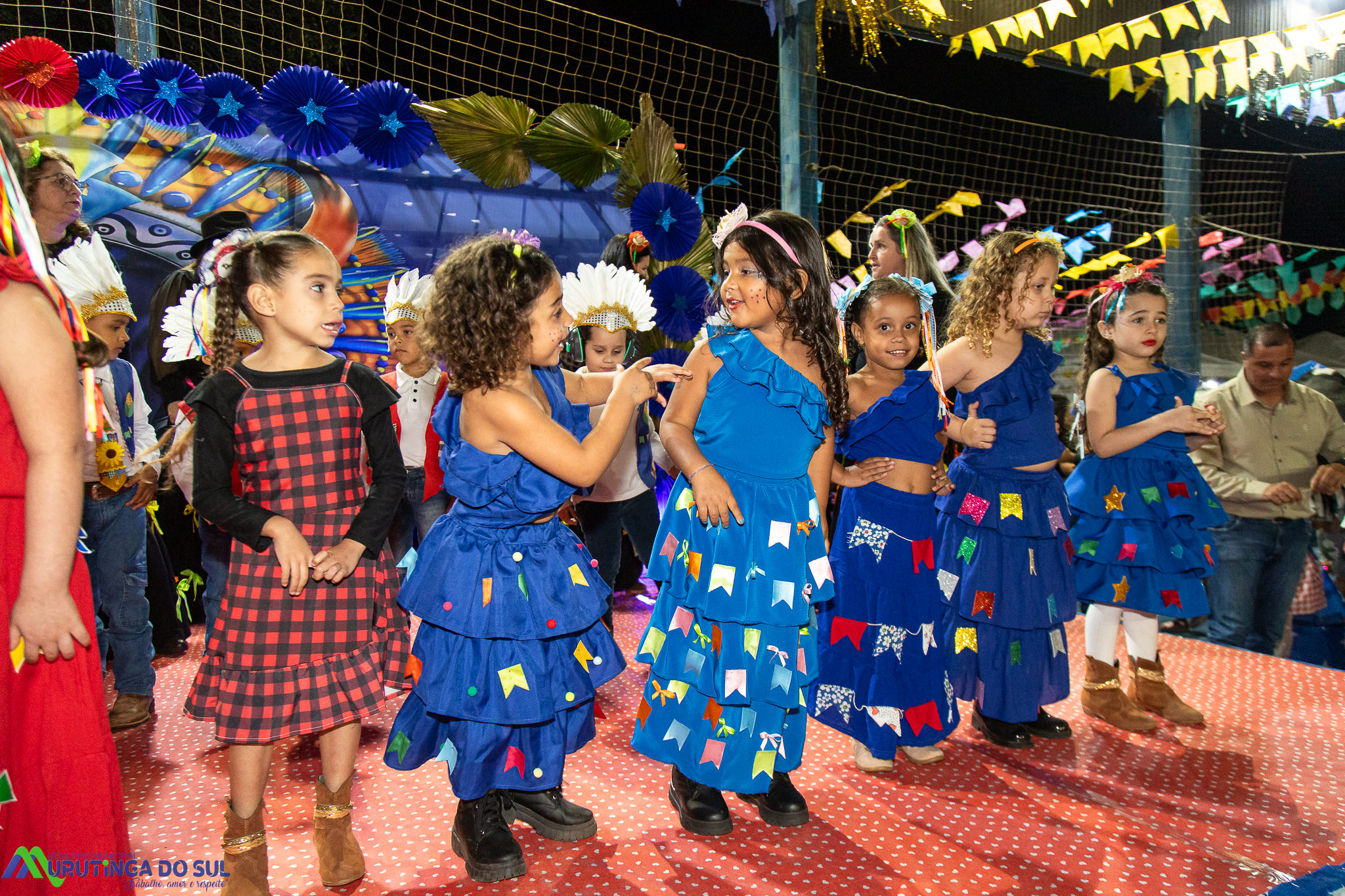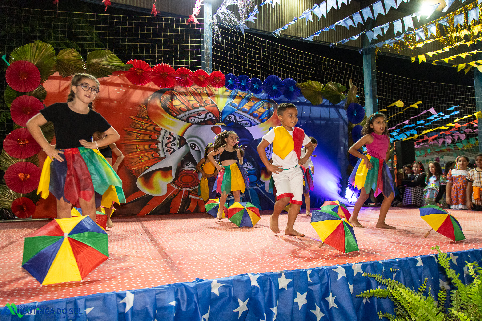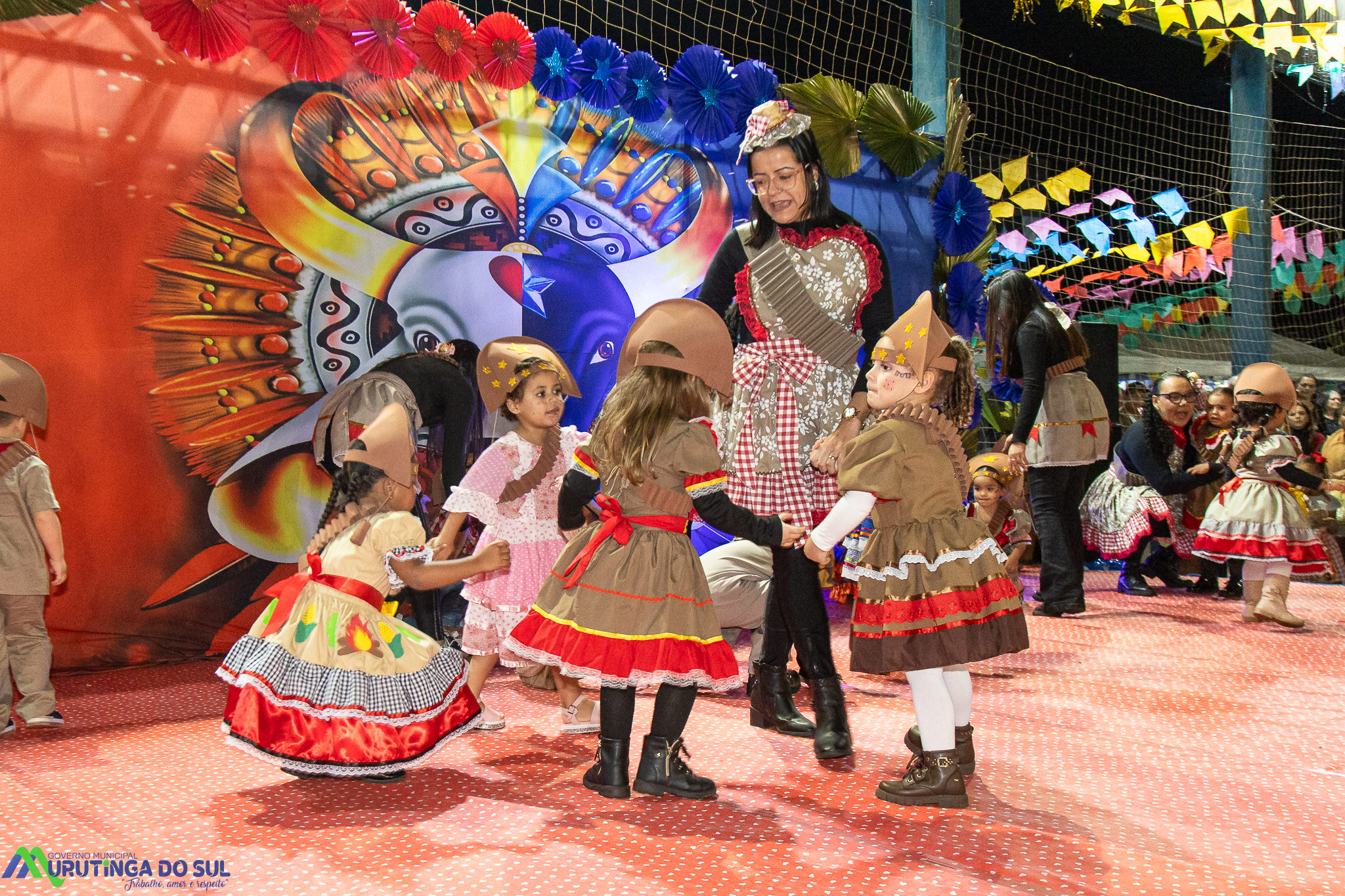 Participaram as crianças do maternal da C.E.I. e tbm as crianças da EMEIF A. Bim Storti com danças típicas daquela região como carimbó, boi bumba, Catira, Frevo e outras. Alem das danças as crianças puderam desfrutar gratuitamente de brinquedos infláveis, touro mecânico e pipoca.