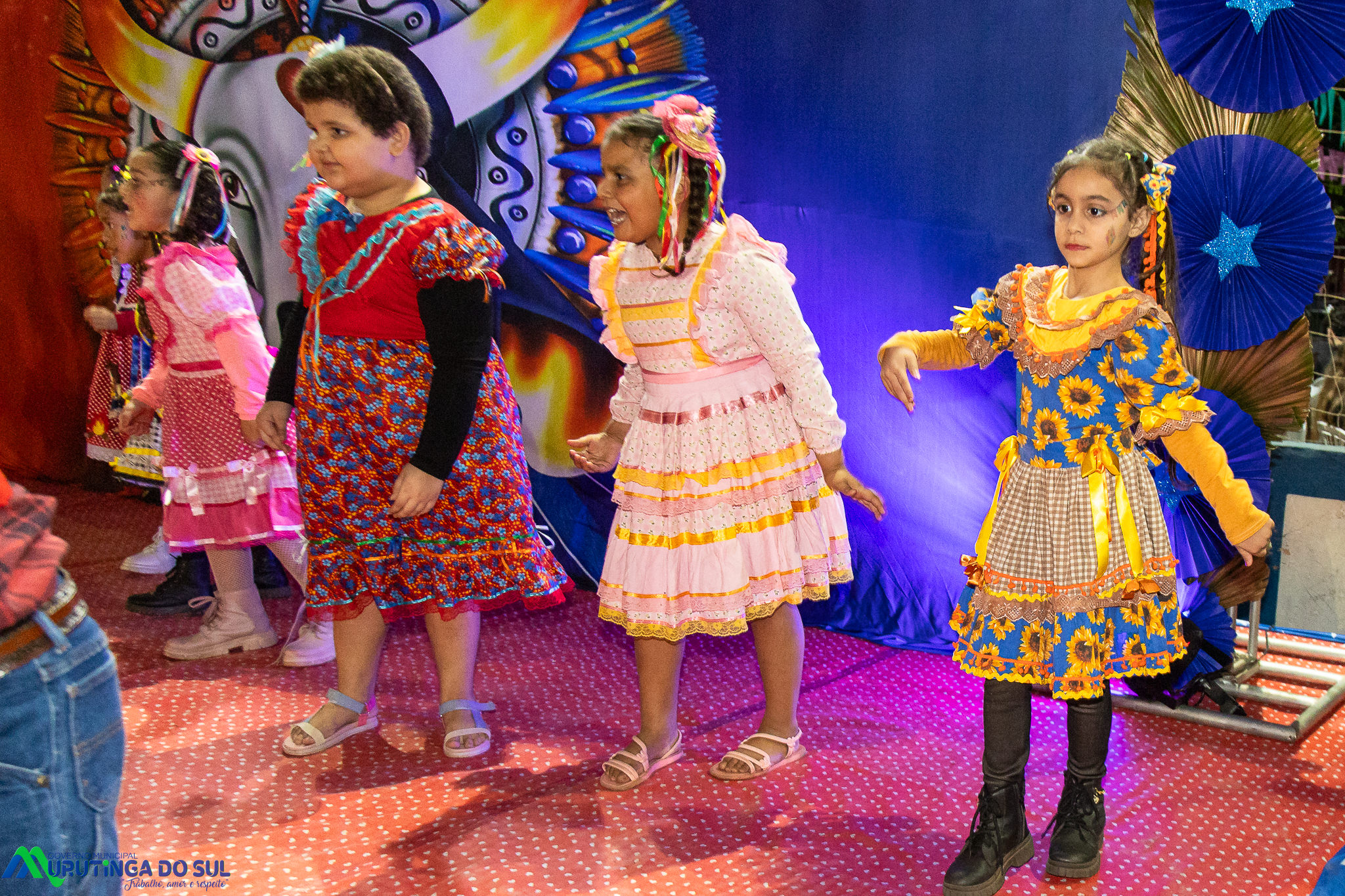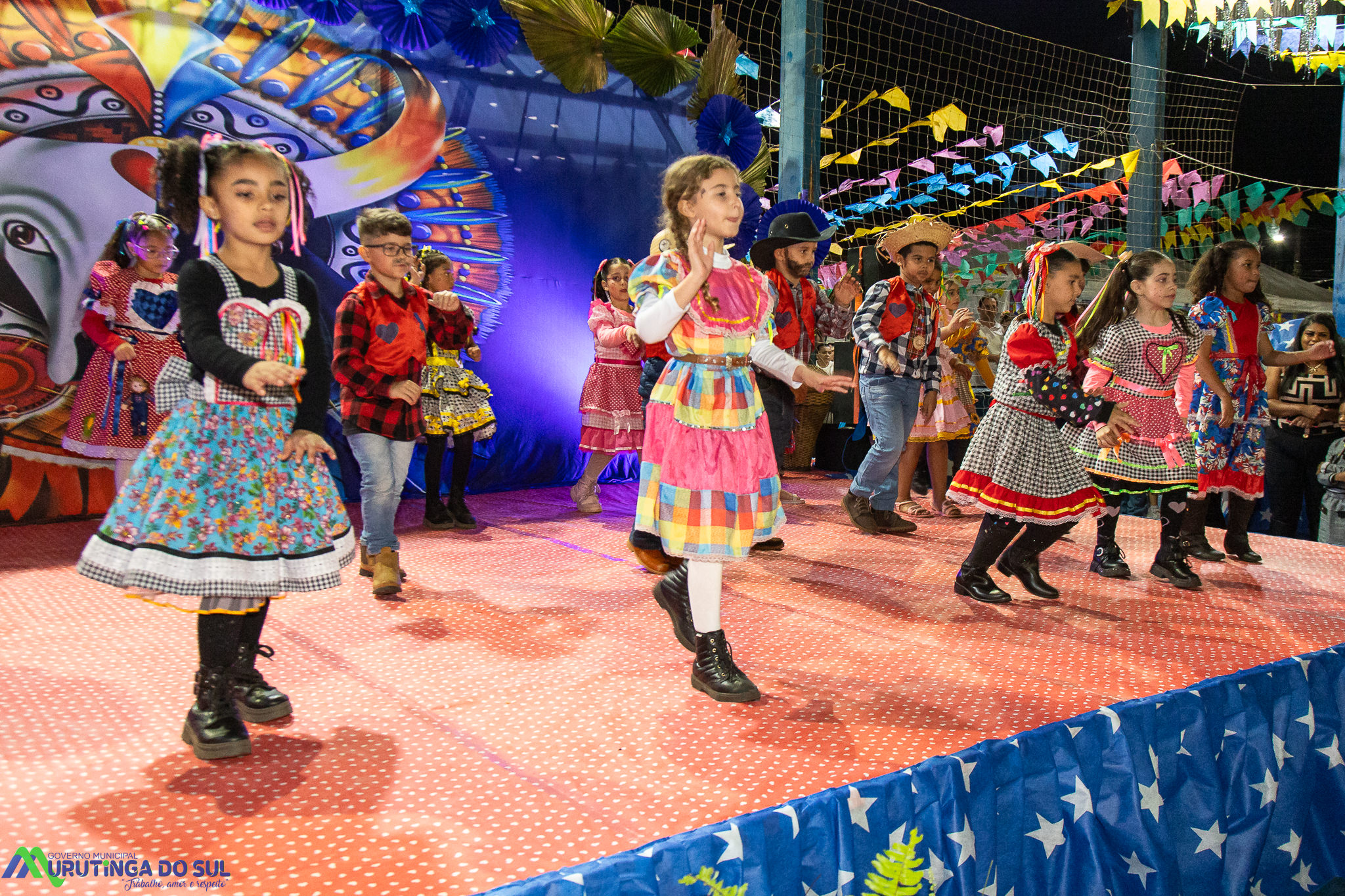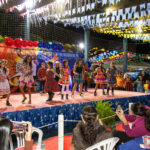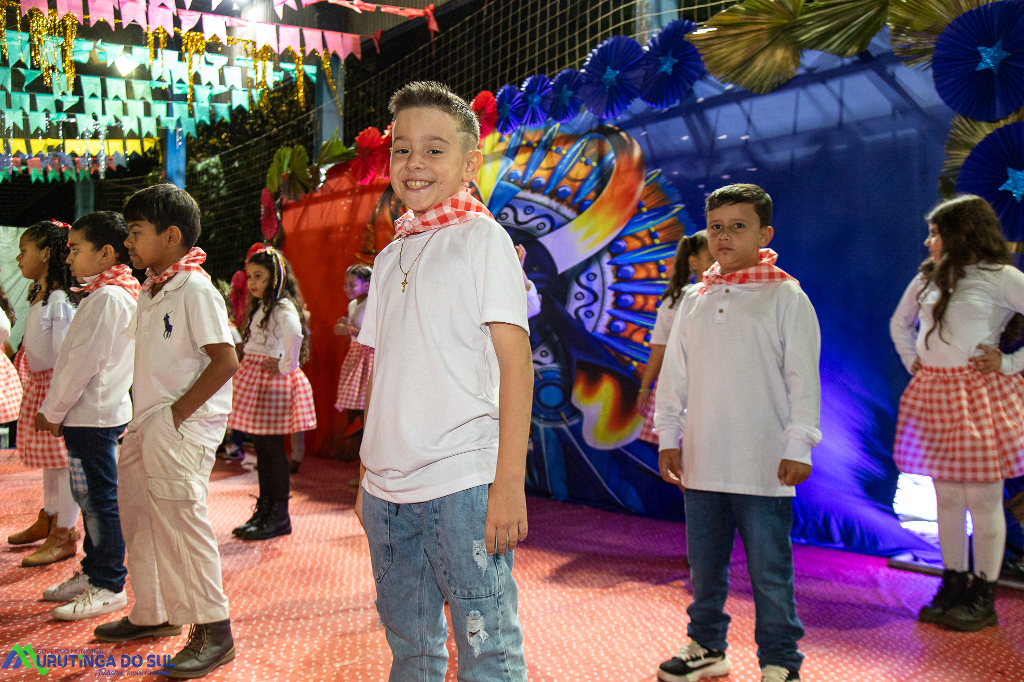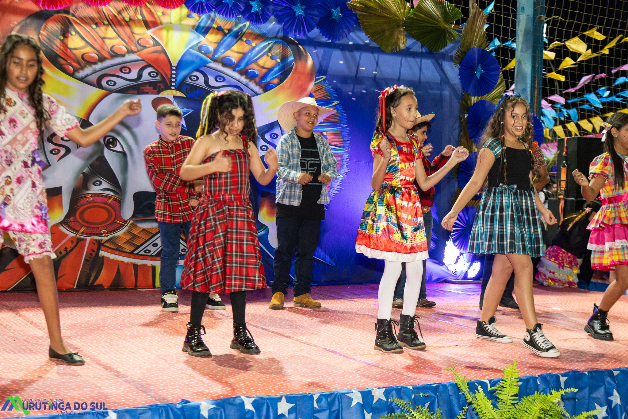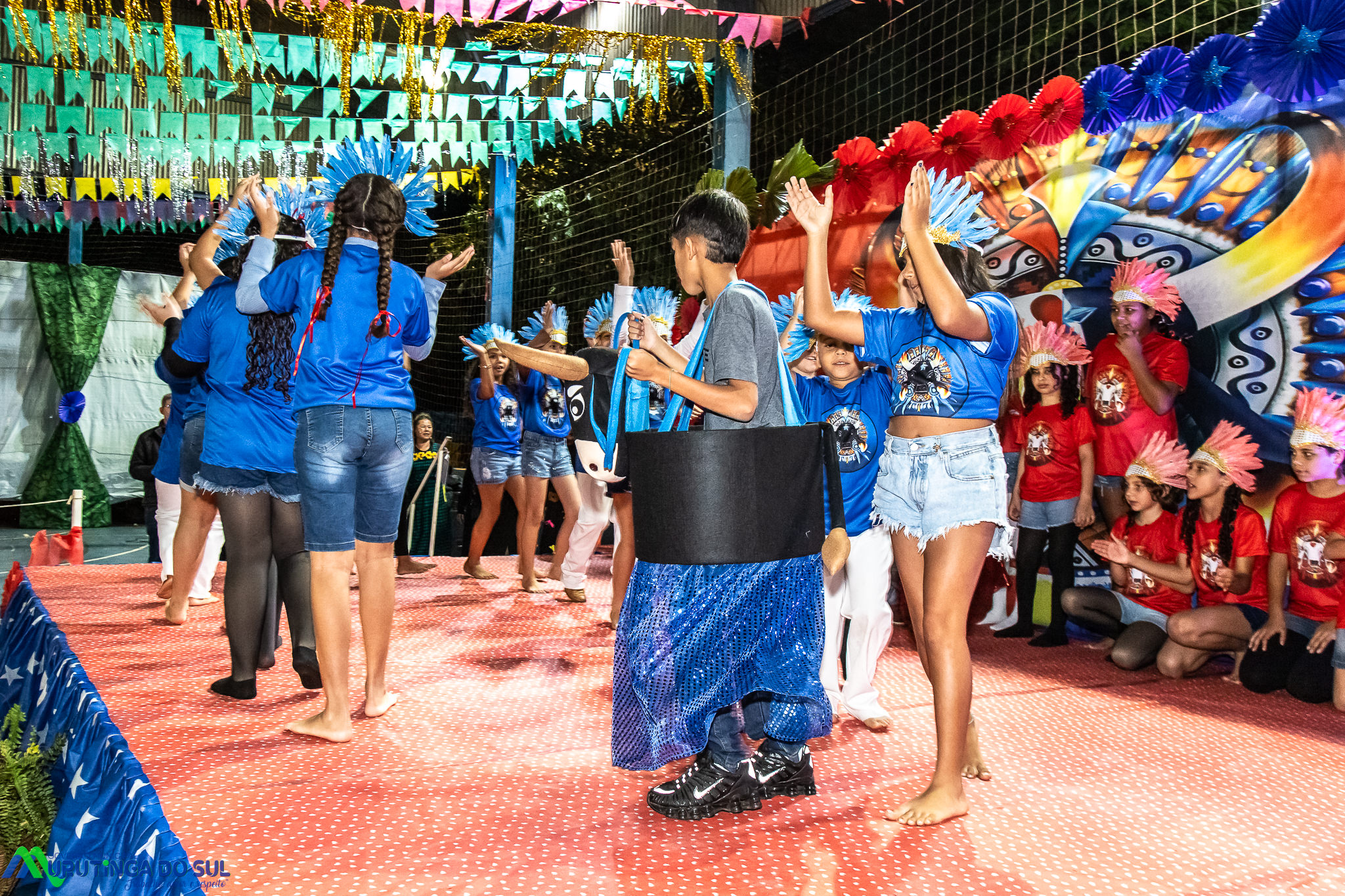 Participaram as crianças do maternal da C.E.I. e tbm as crianças da EMEIF A. Bim Storti com danças típicas daquela região como carimbó, boi bumba, Catira, Frevo e outras. Alem das danças as crianças puderam desfrutar gratuitamente de brinquedos infláveis, touro mecânico e pipoca.