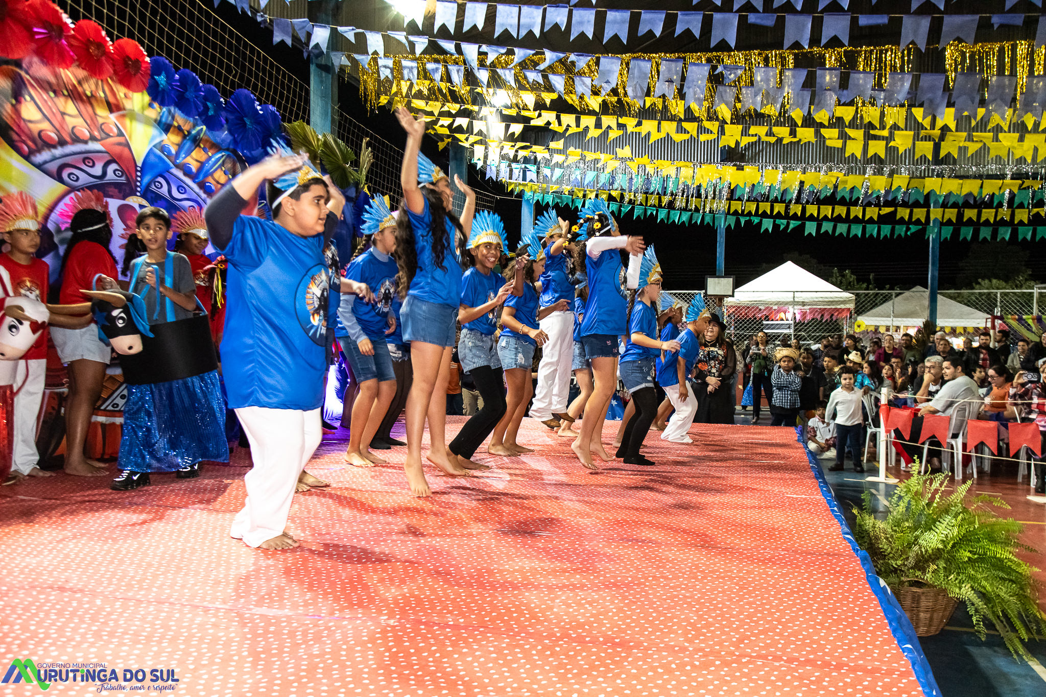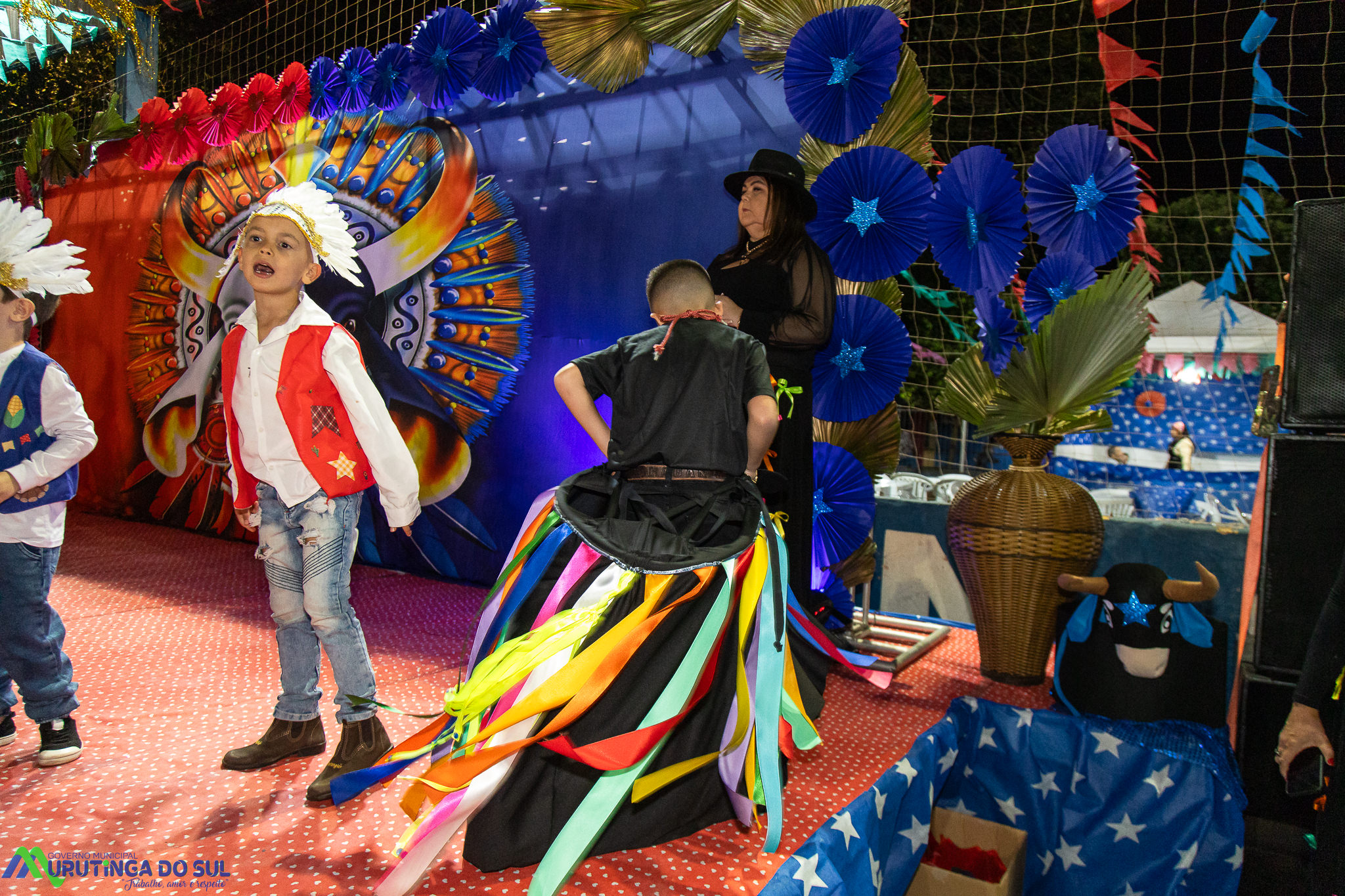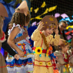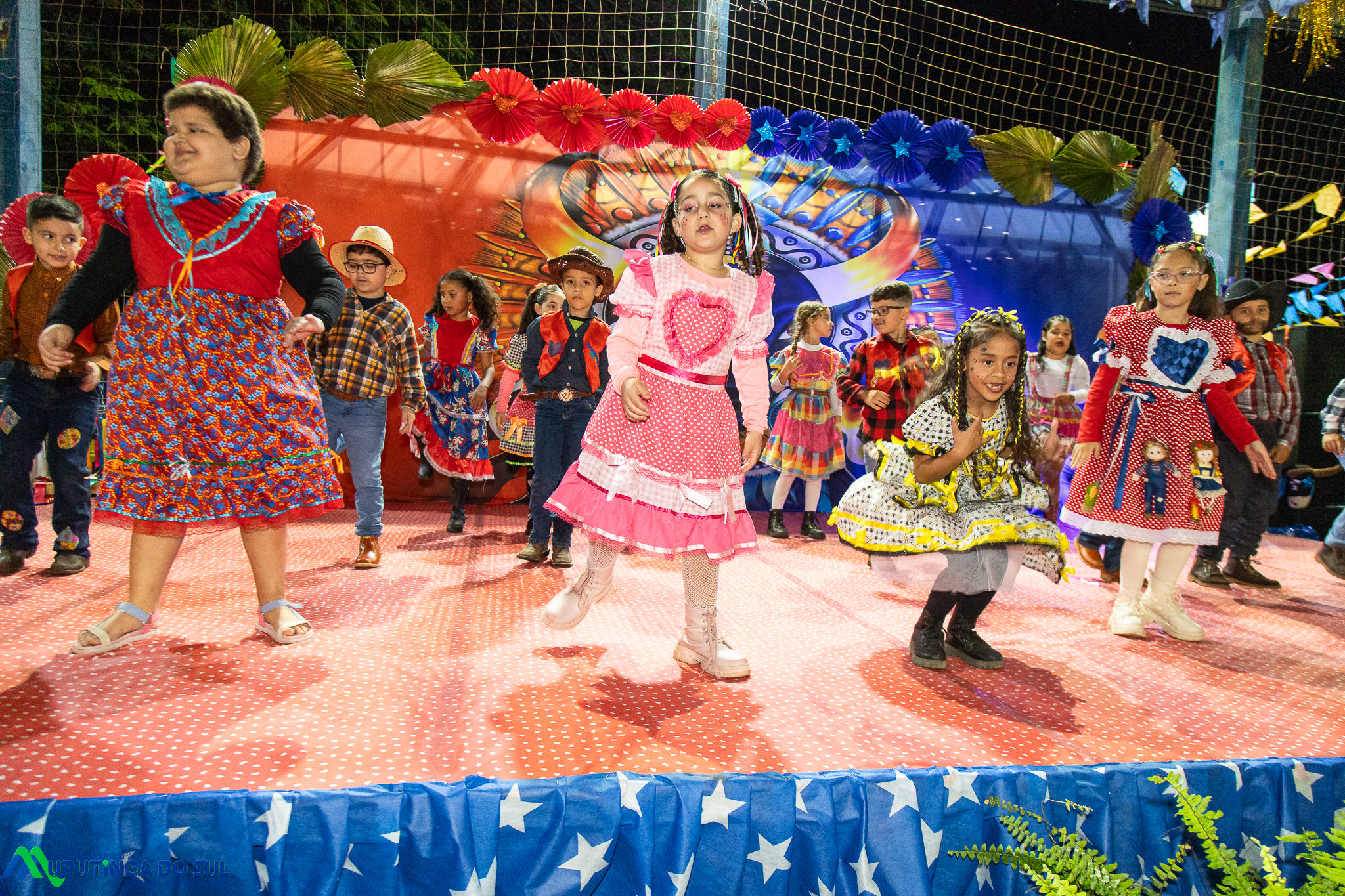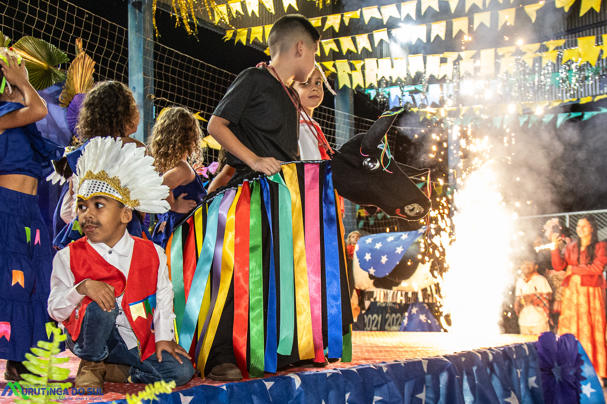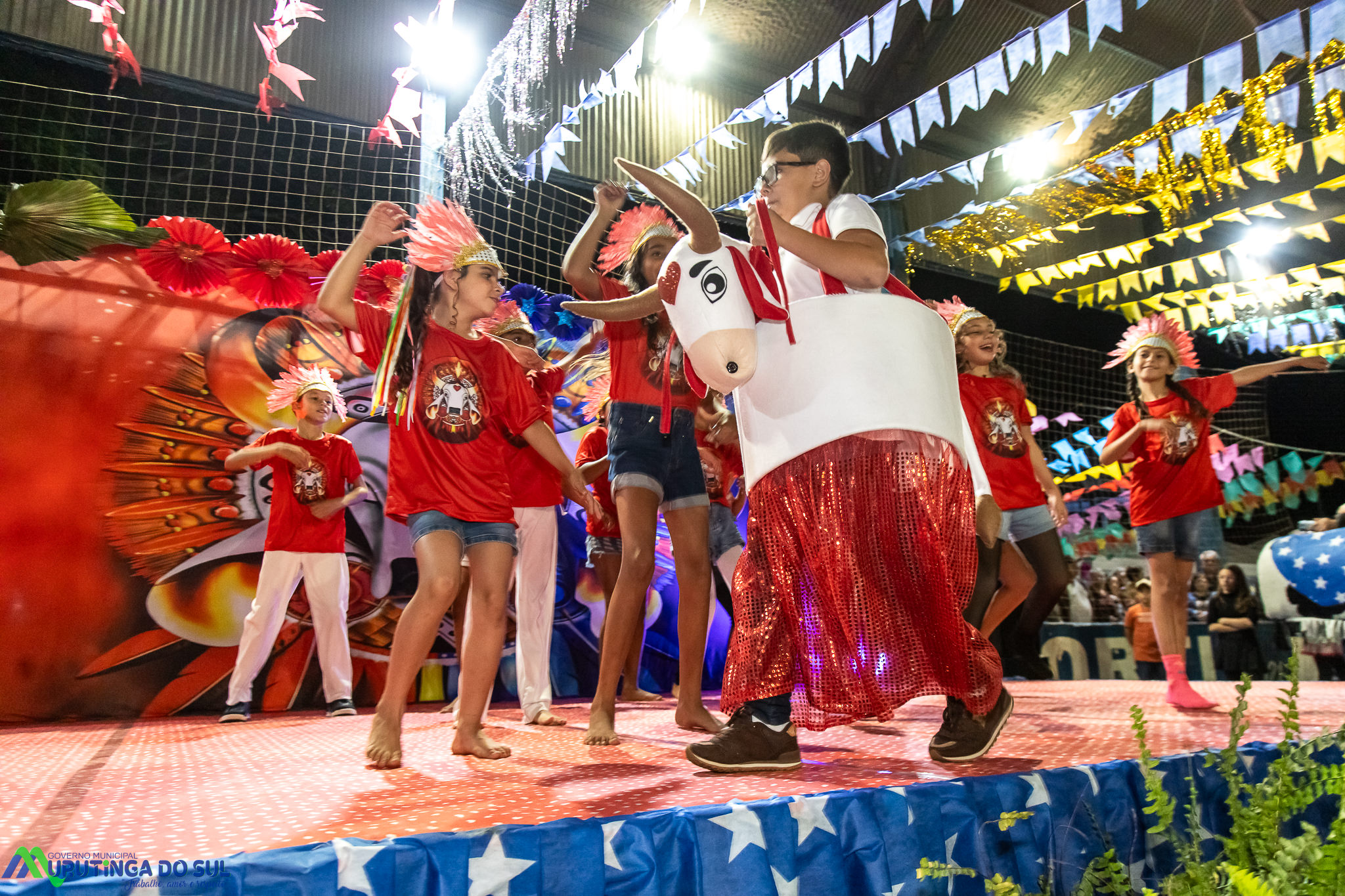 Participaram as crianças do maternal da C.E.I. e tbm as crianças da EMEIF A. Bim Storti com danças típicas daquela região como carimbó, boi bumba, Catira, Frevo e outras. Alem das danças as crianças puderam desfrutar gratuitamente de brinquedos infláveis, touro mecânico e pipoca.