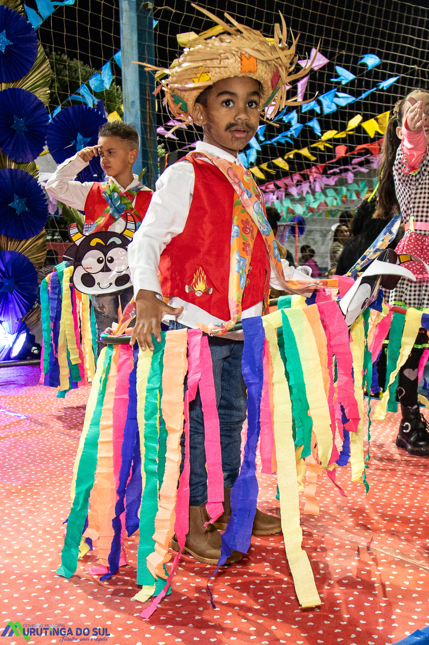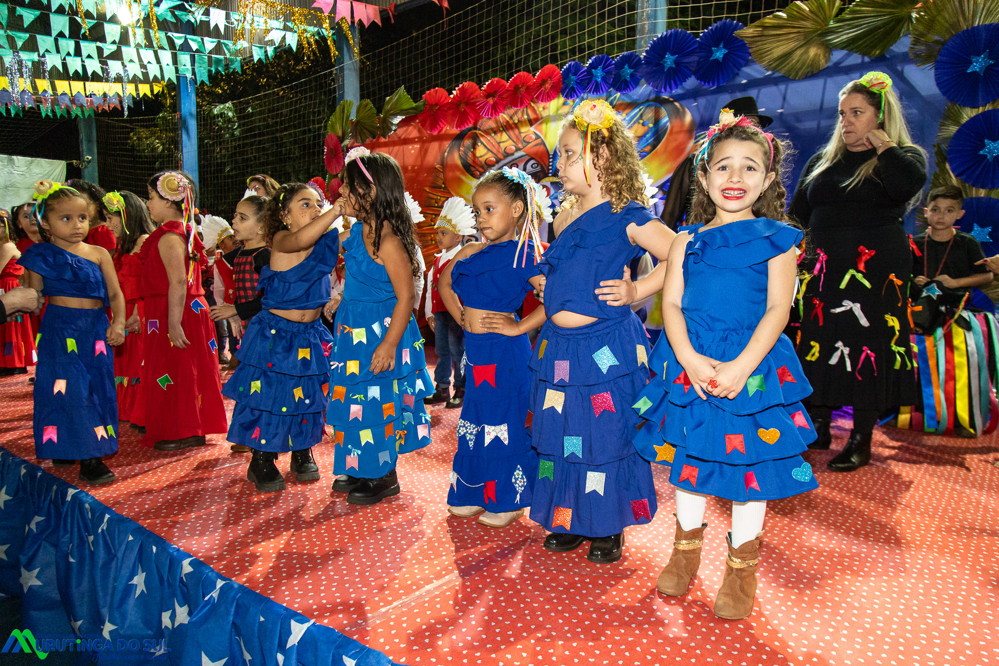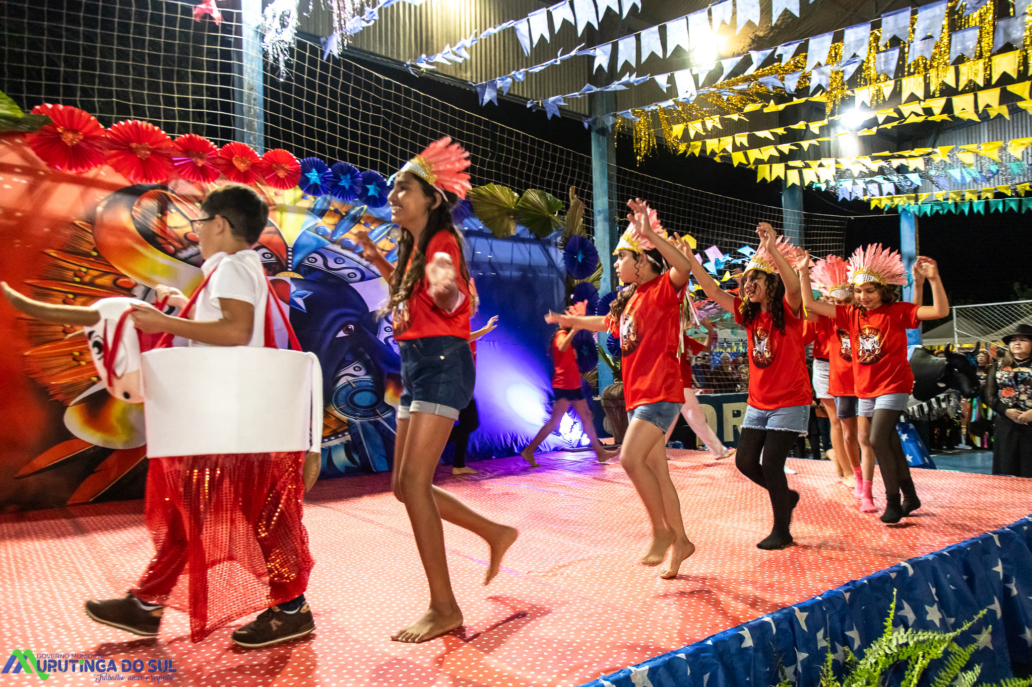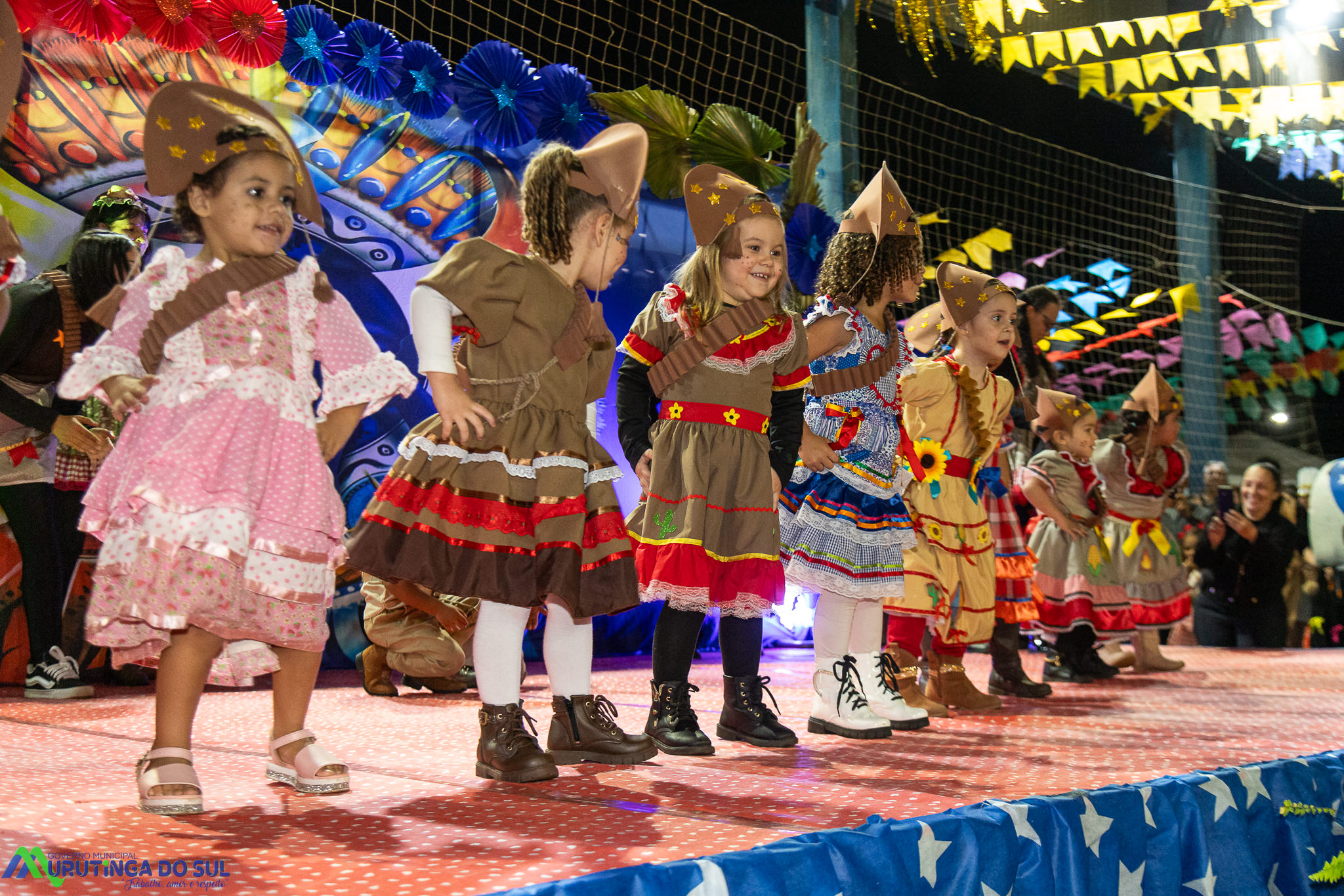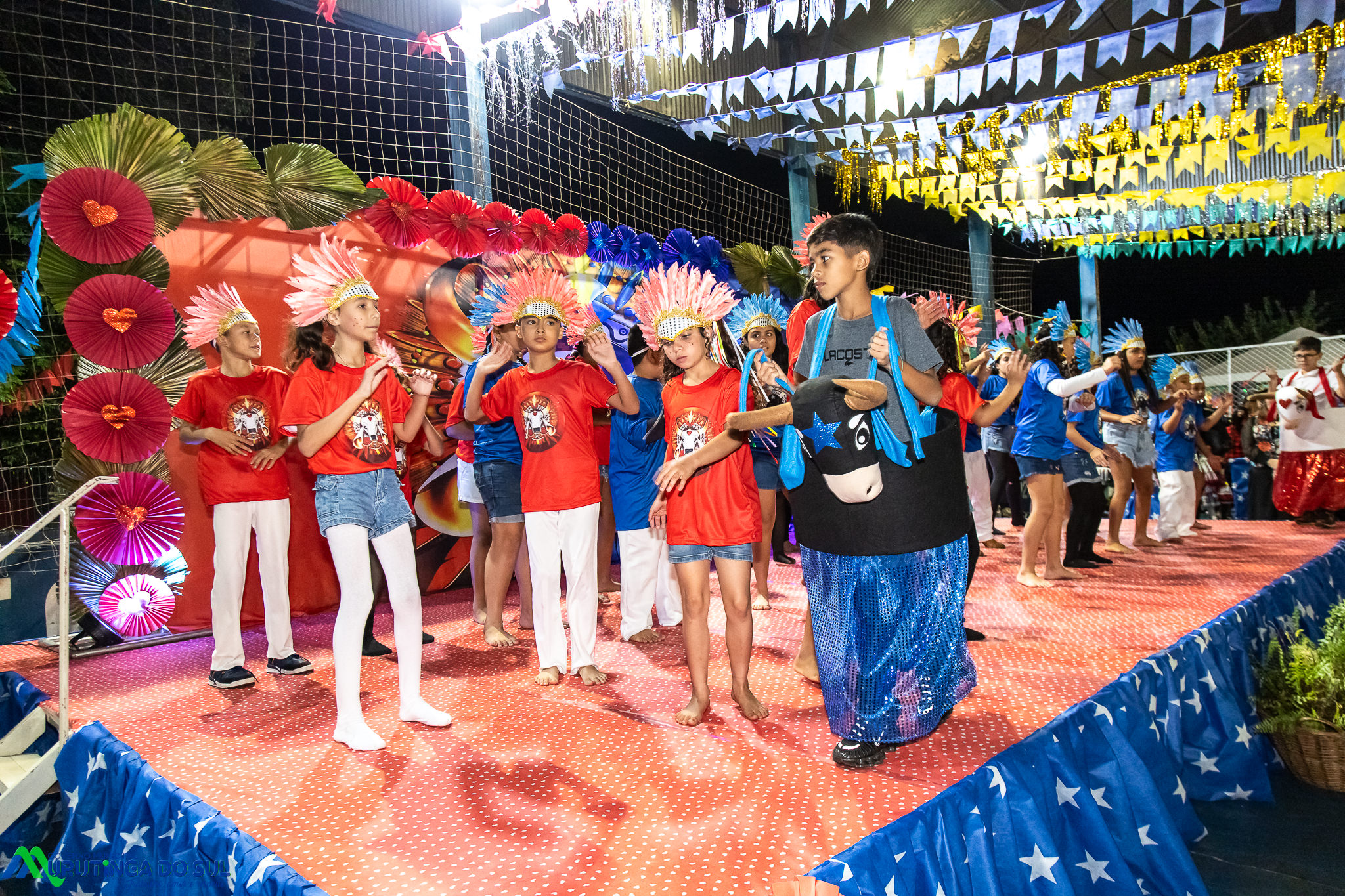 Participaram as crianças do maternal da C.E.I. e tbm as crianças da EMEIF A. Bim Storti com danças típicas daquela região como carimbó, boi bumba, Catira, Frevo e outras. Alem das danças as crianças puderam desfrutar gratuitamente de brinquedos infláveis, touro mecânico e pipoca.