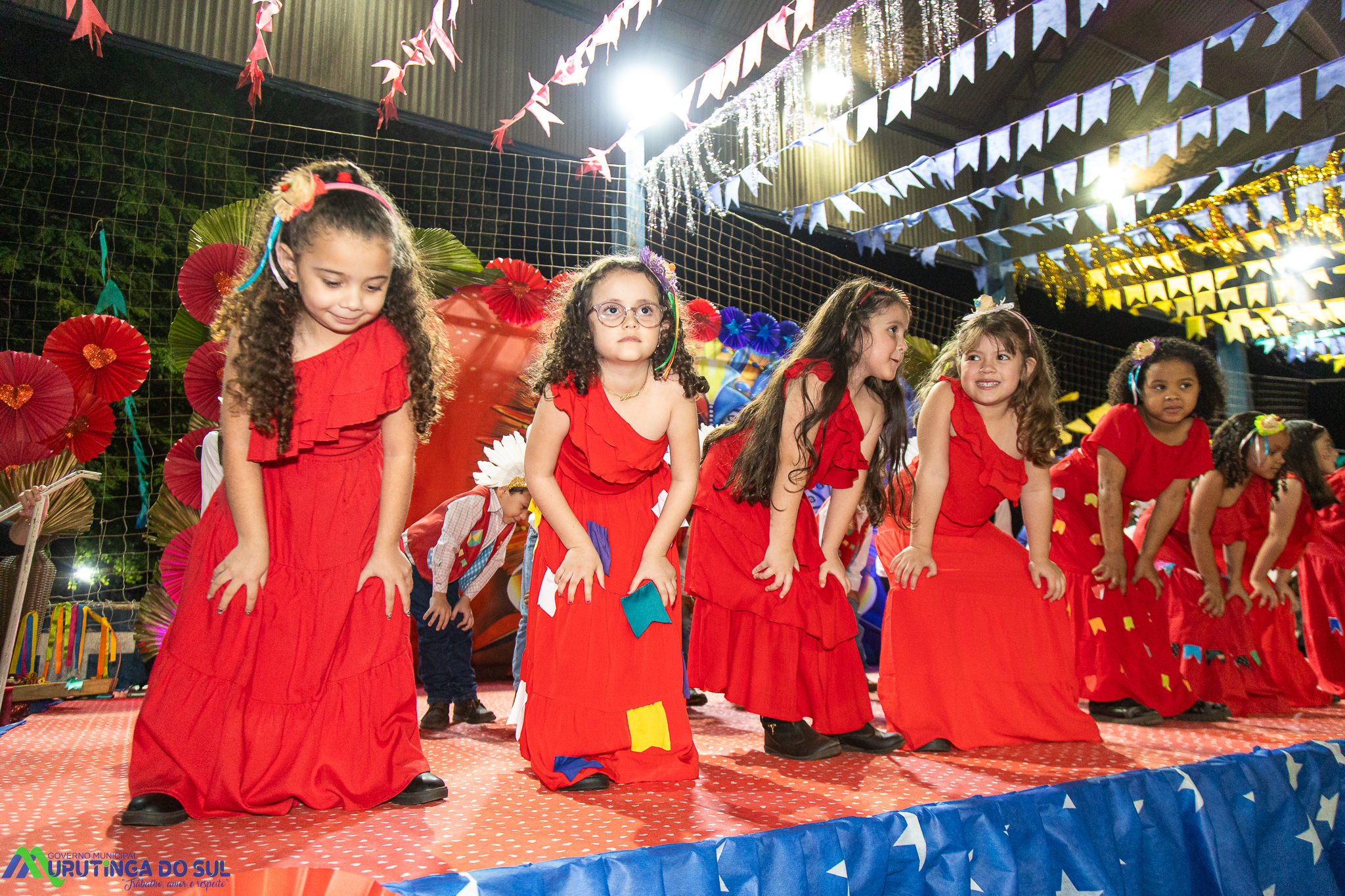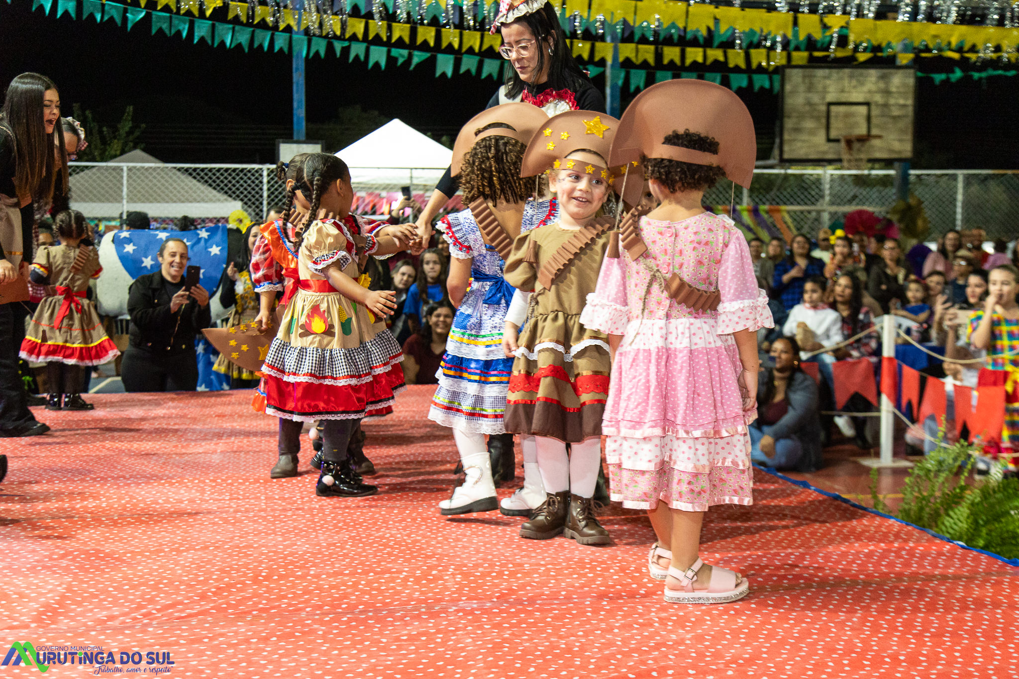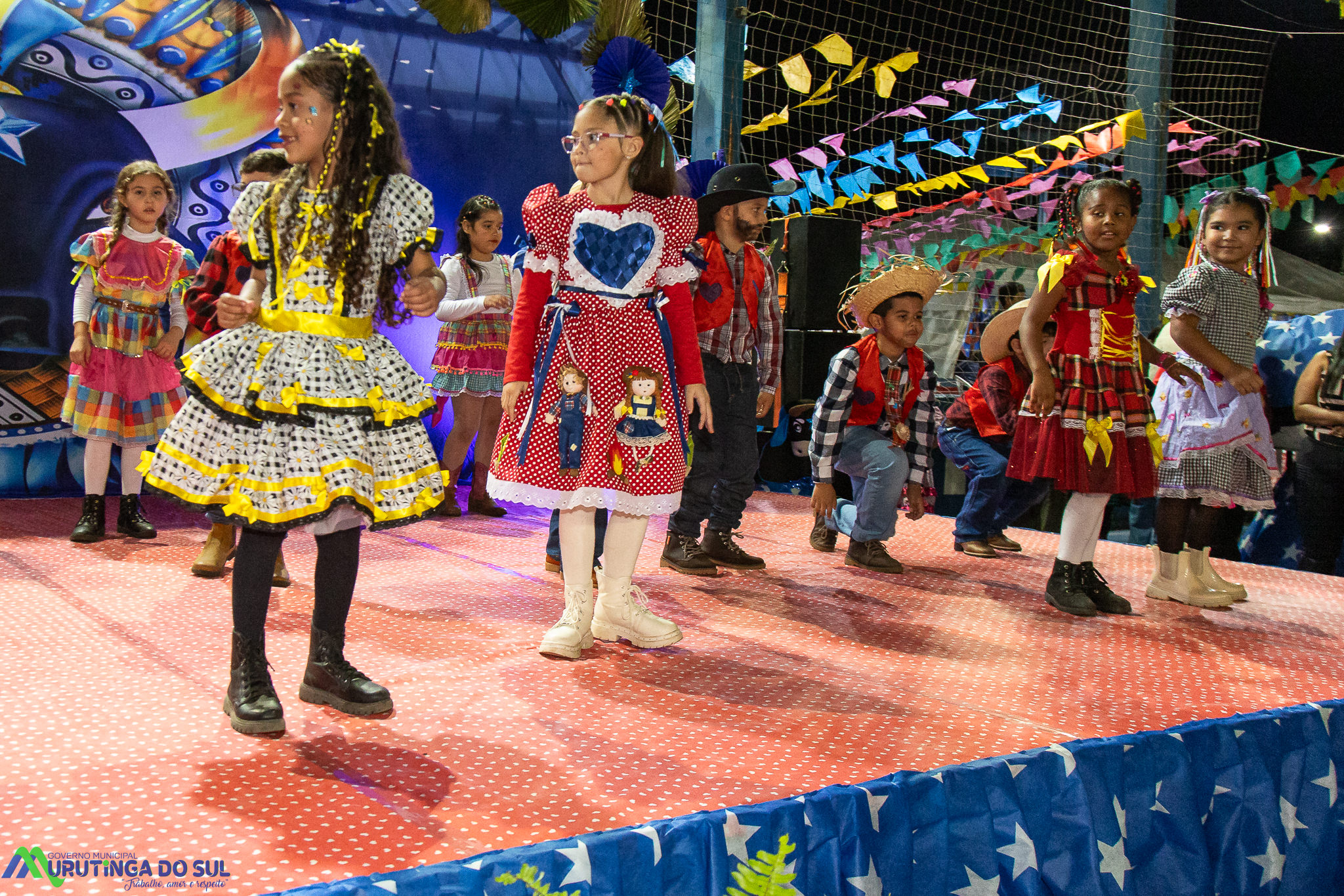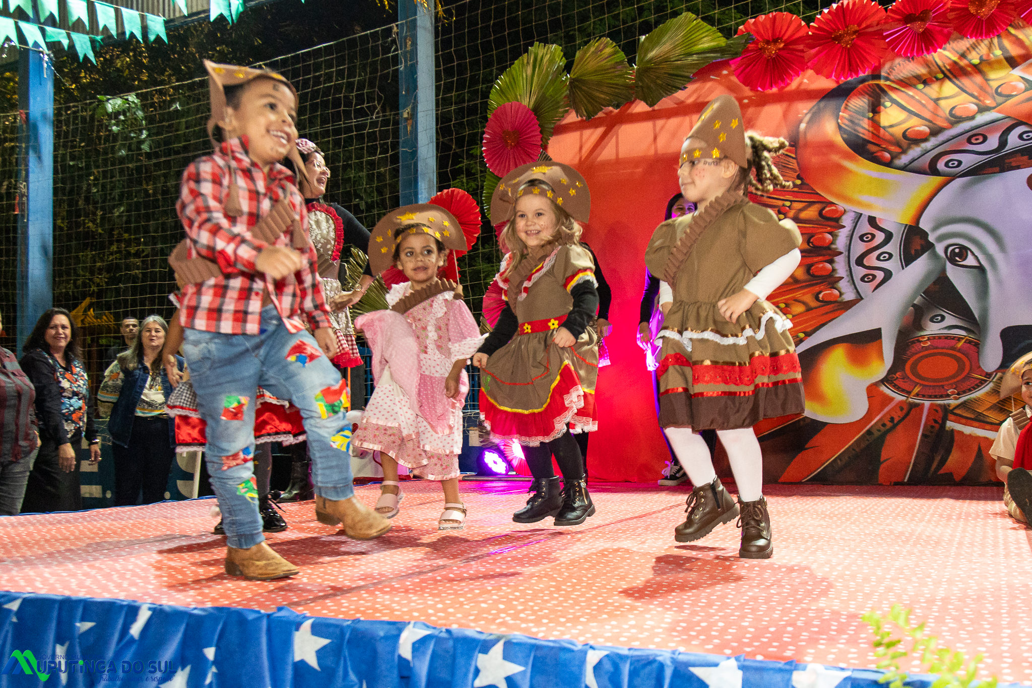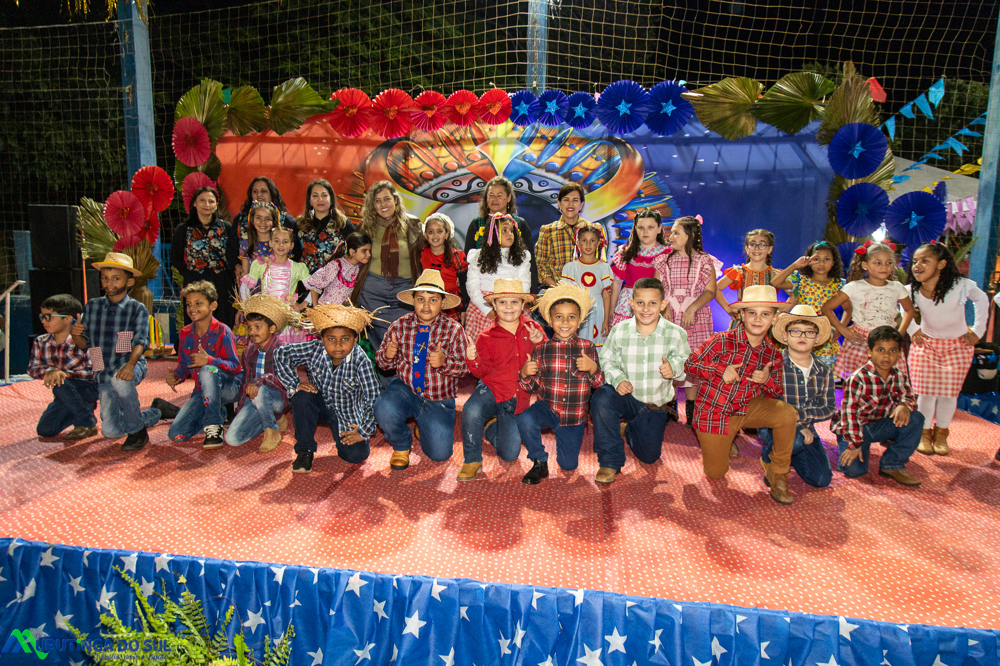 Participaram as crianças do maternal da C.E.I. e tbm as crianças da EMEIF A. Bim Storti com danças típicas daquela região como carimbó, boi bumba, Catira, Frevo e outras. Alem das danças as crianças puderam desfrutar gratuitamente de brinquedos infláveis, touro mecânico e pipoca.