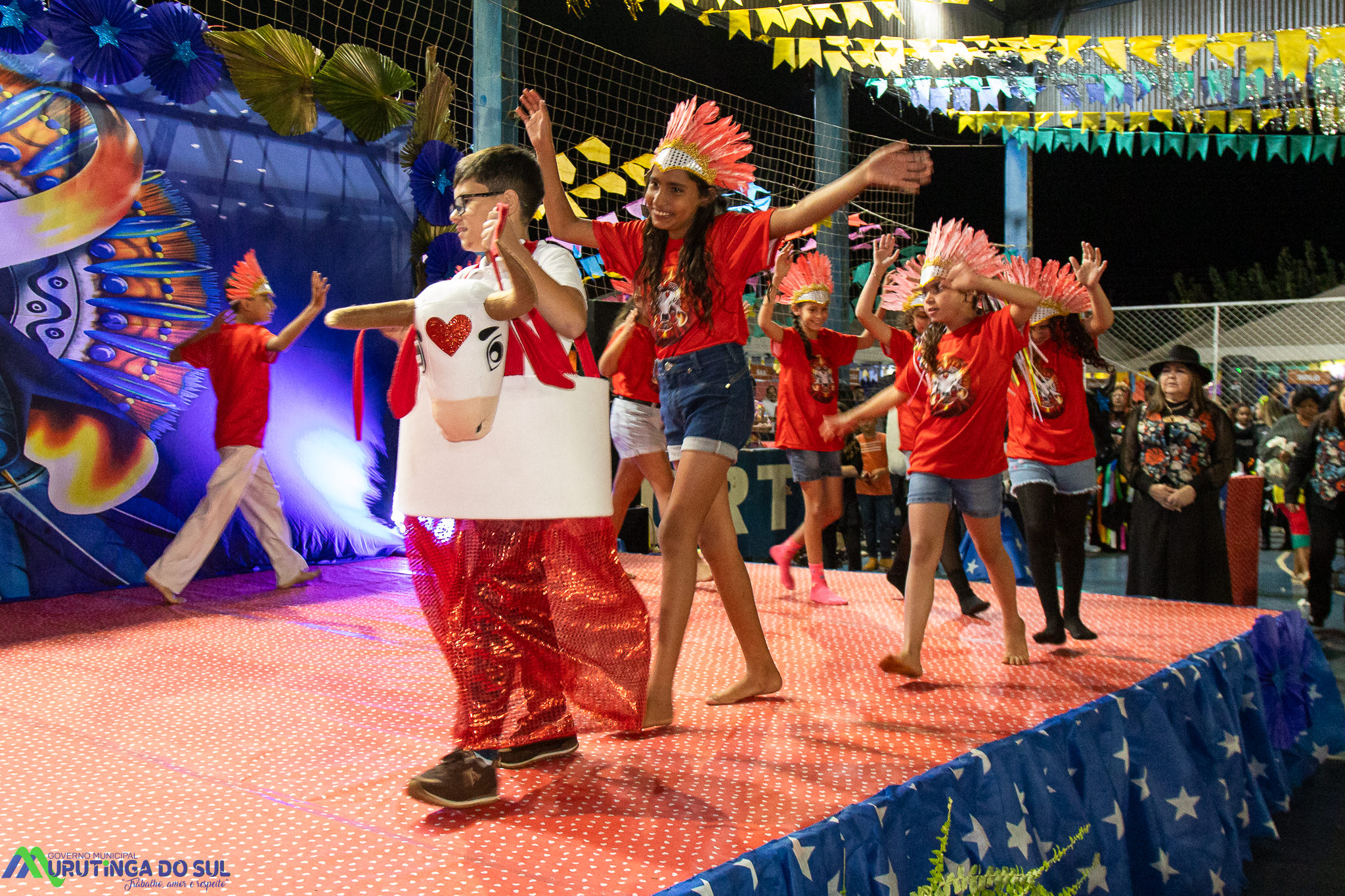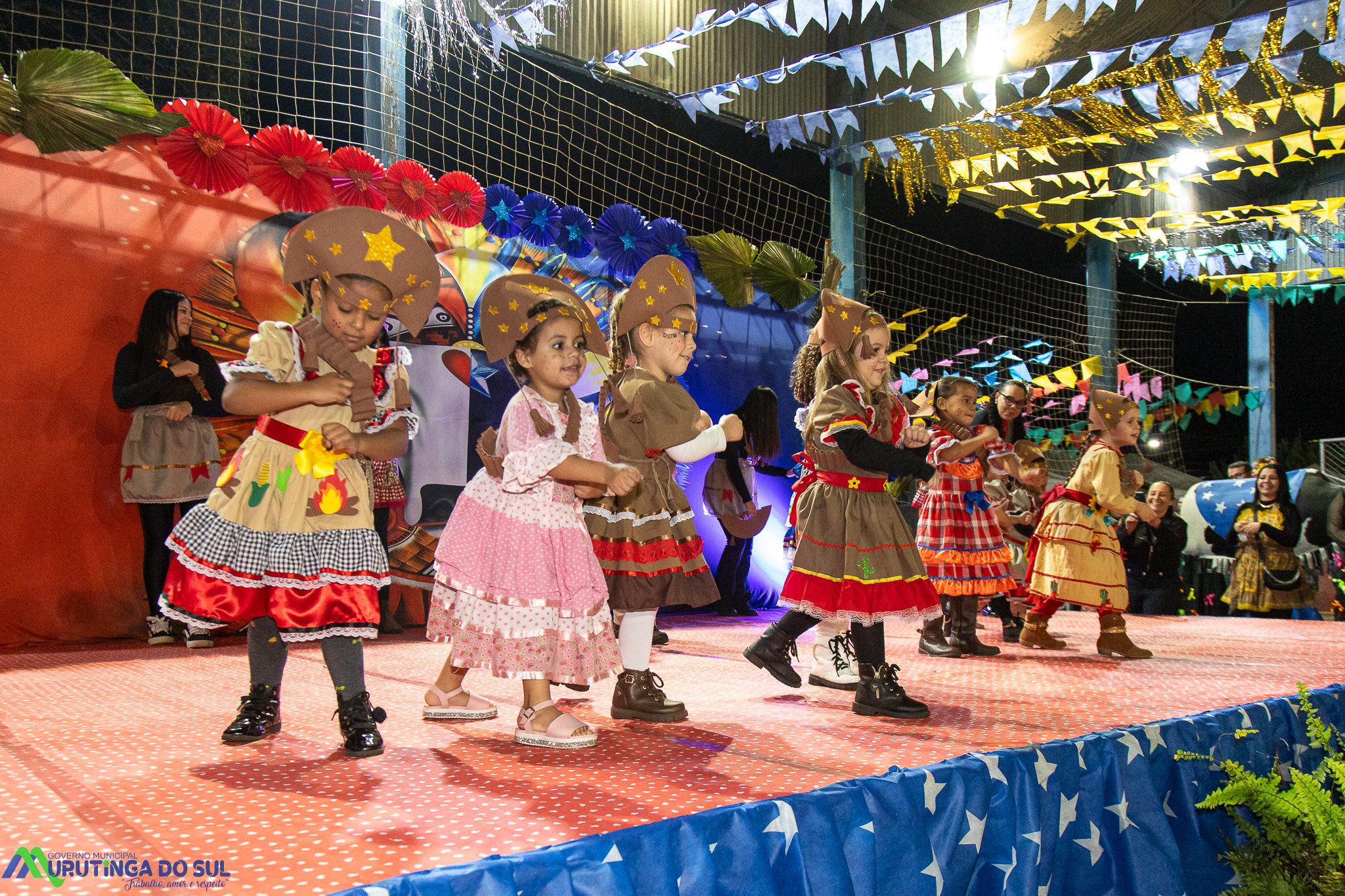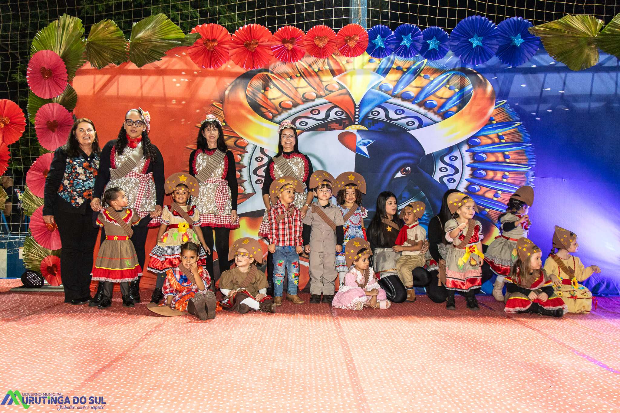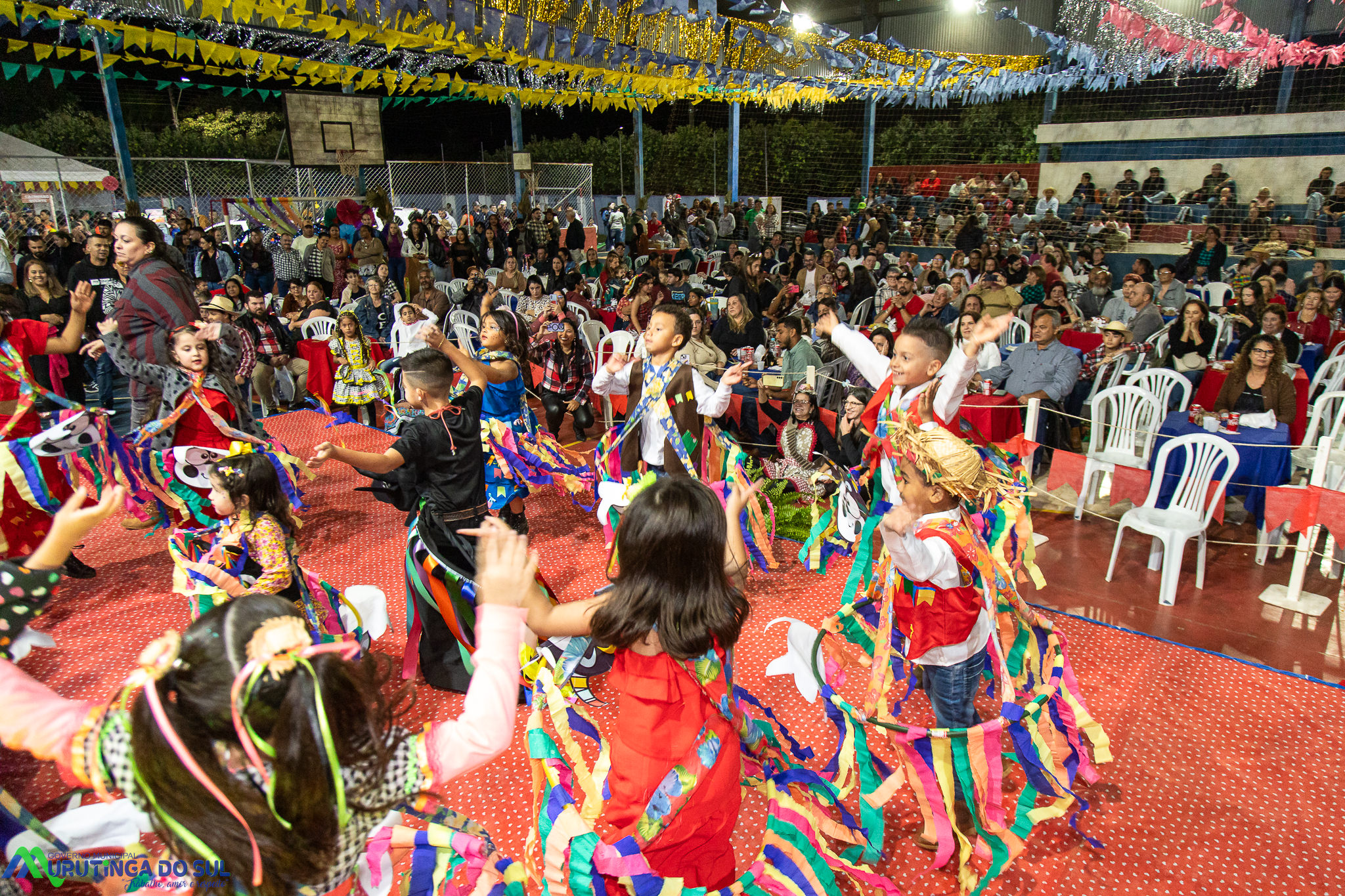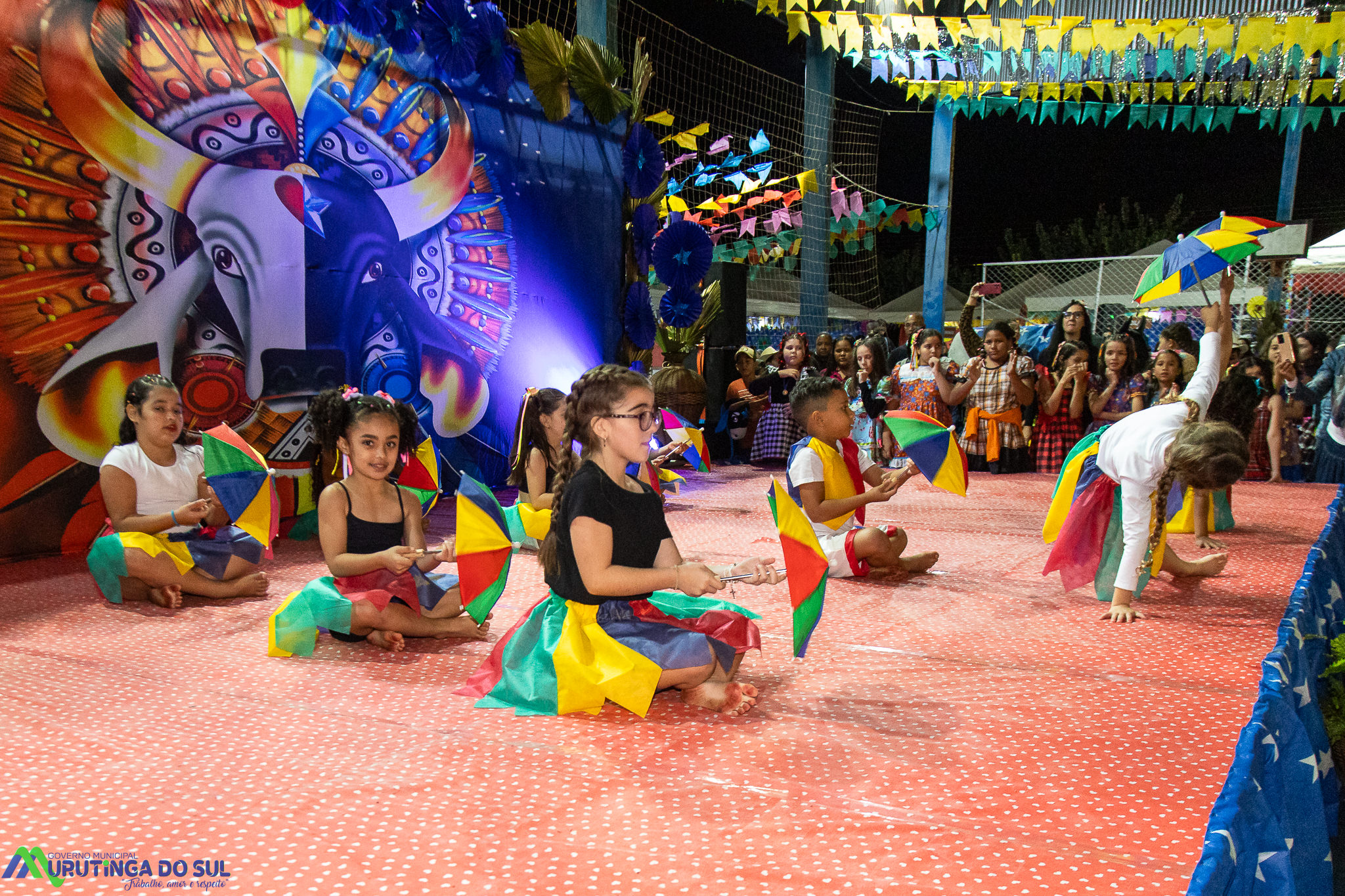 Participaram as crianças do maternal da C.E.I. e tbm as crianças da EMEIF A. Bim Storti com danças típicas daquela região como carimbó, boi bumba, Catira, Frevo e outras. Alem das danças as crianças puderam desfrutar gratuitamente de brinquedos infláveis, touro mecânico e pipoca.