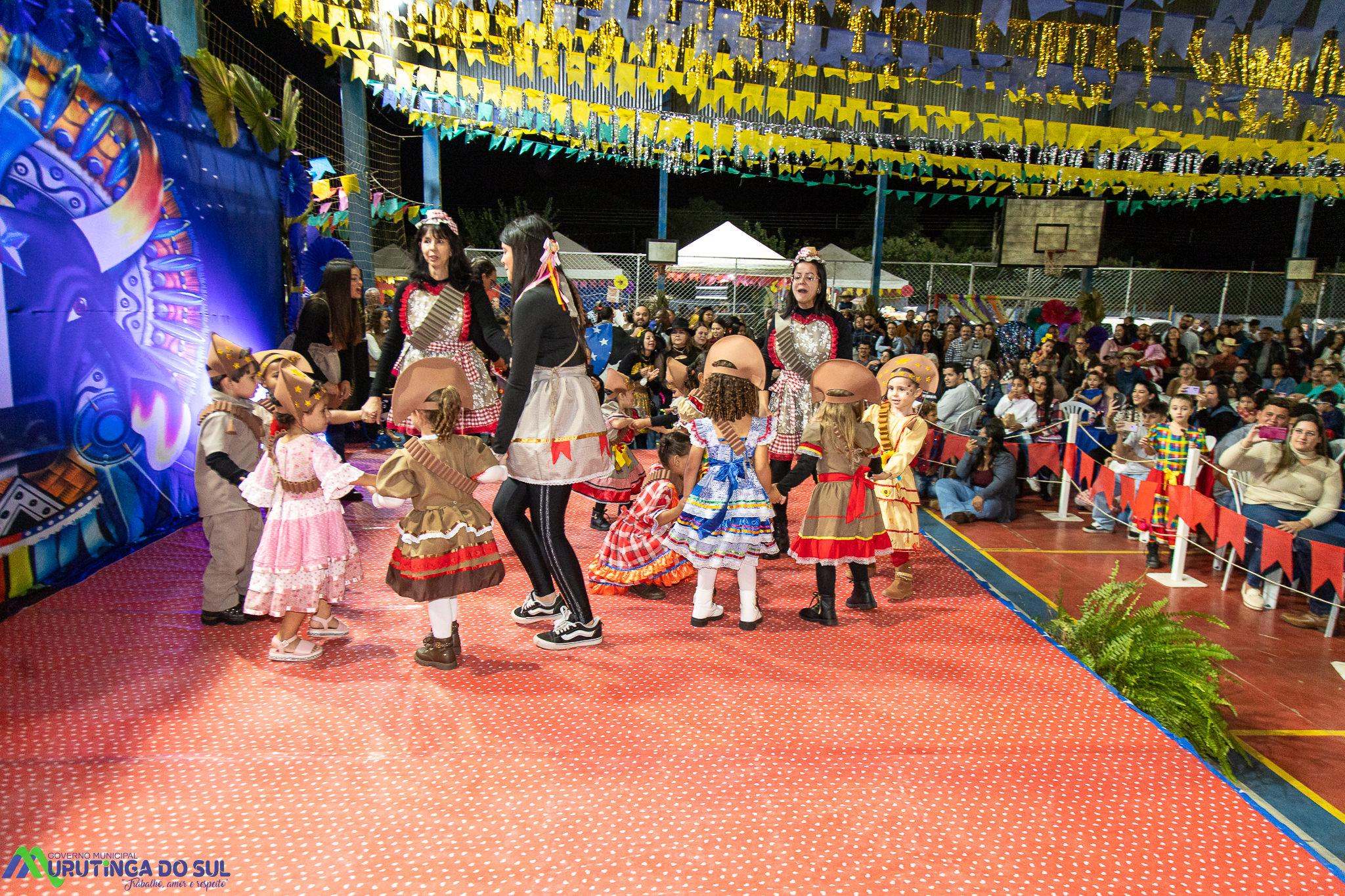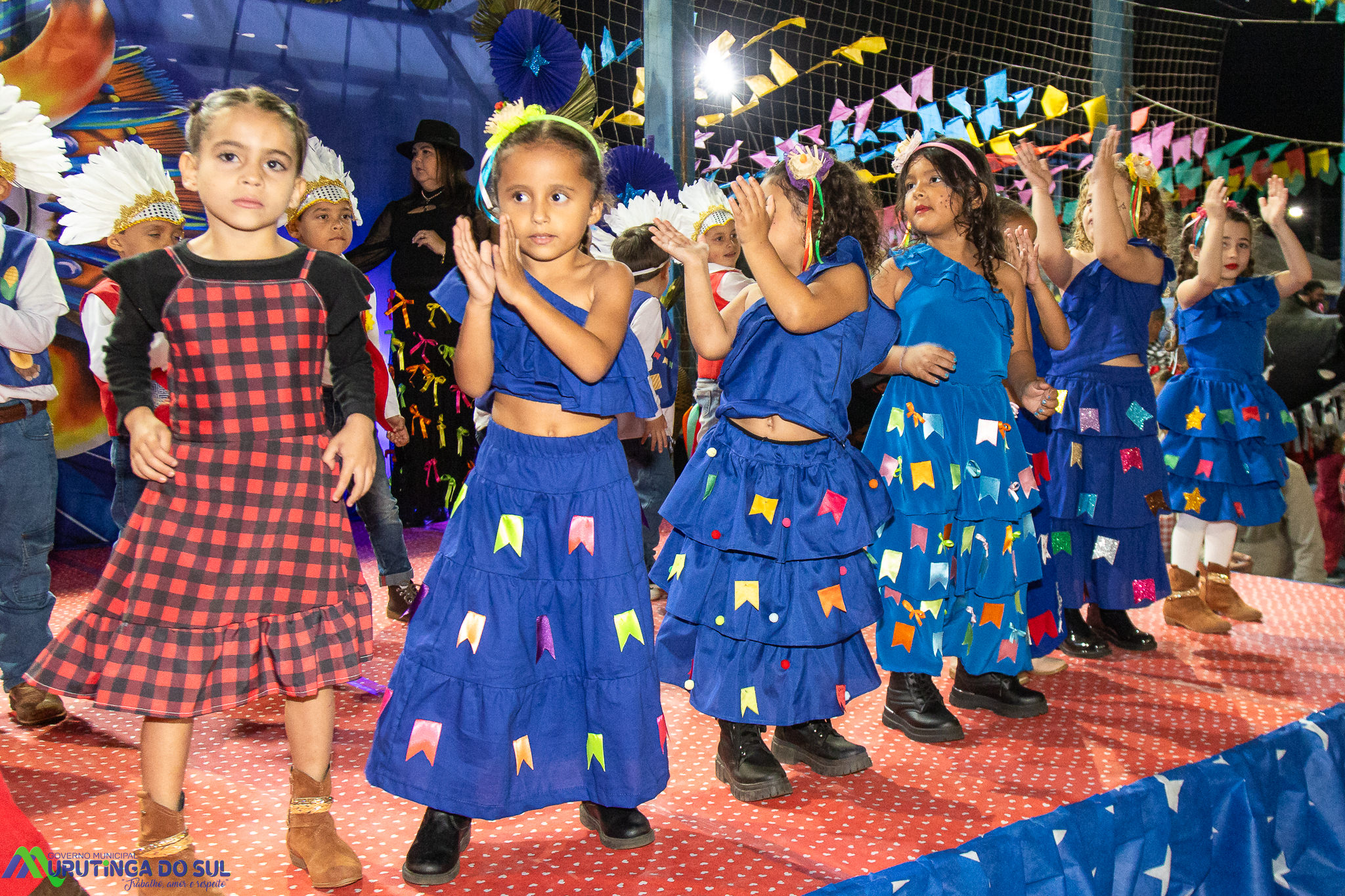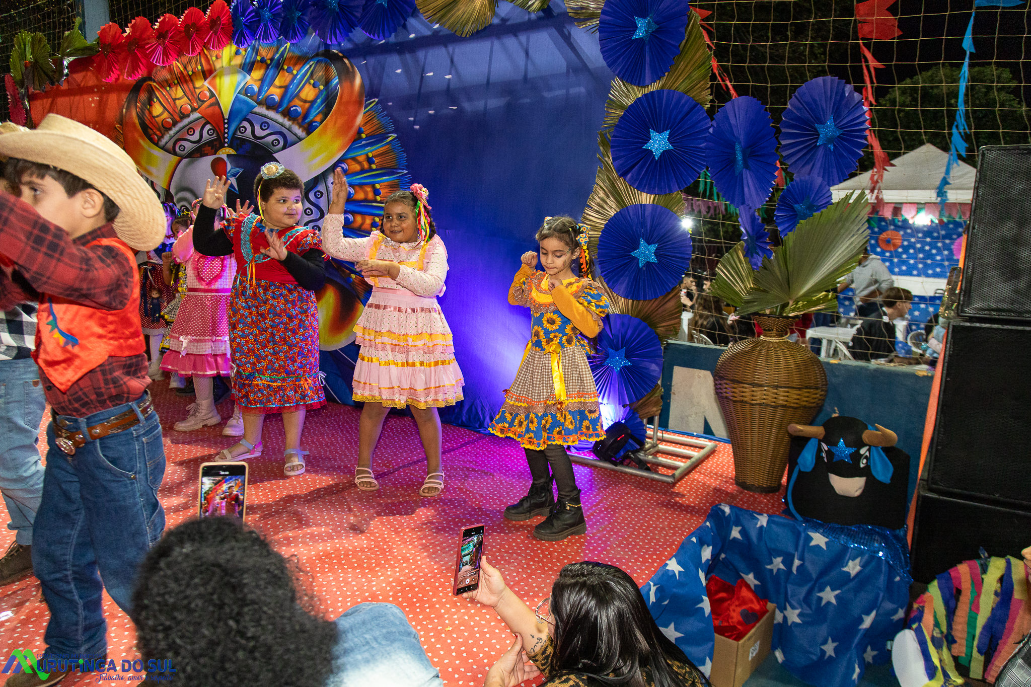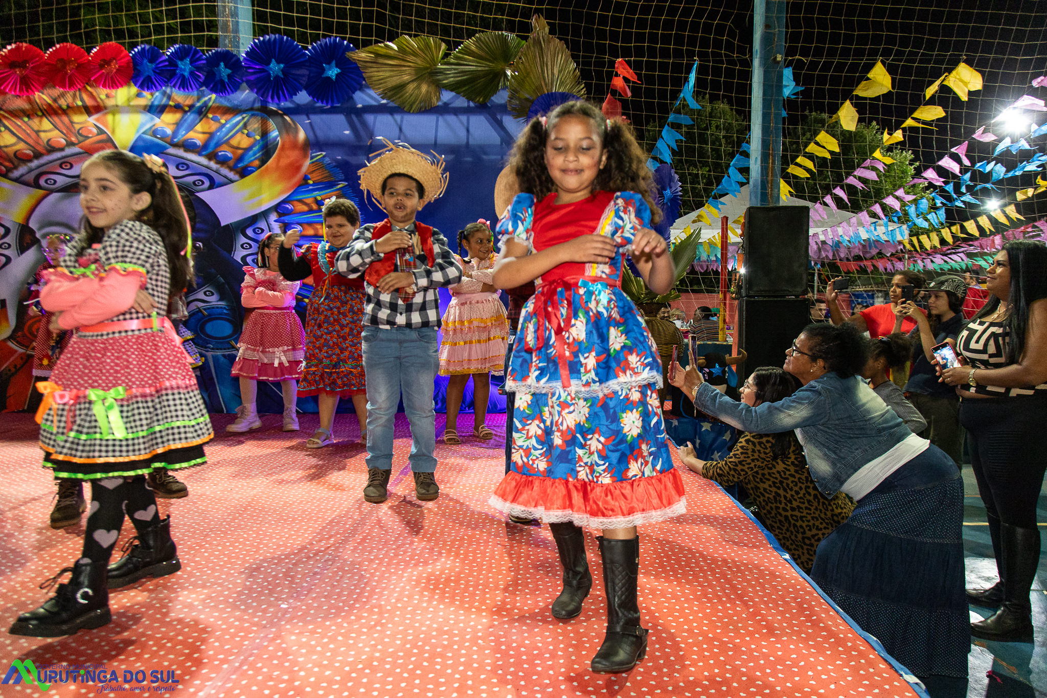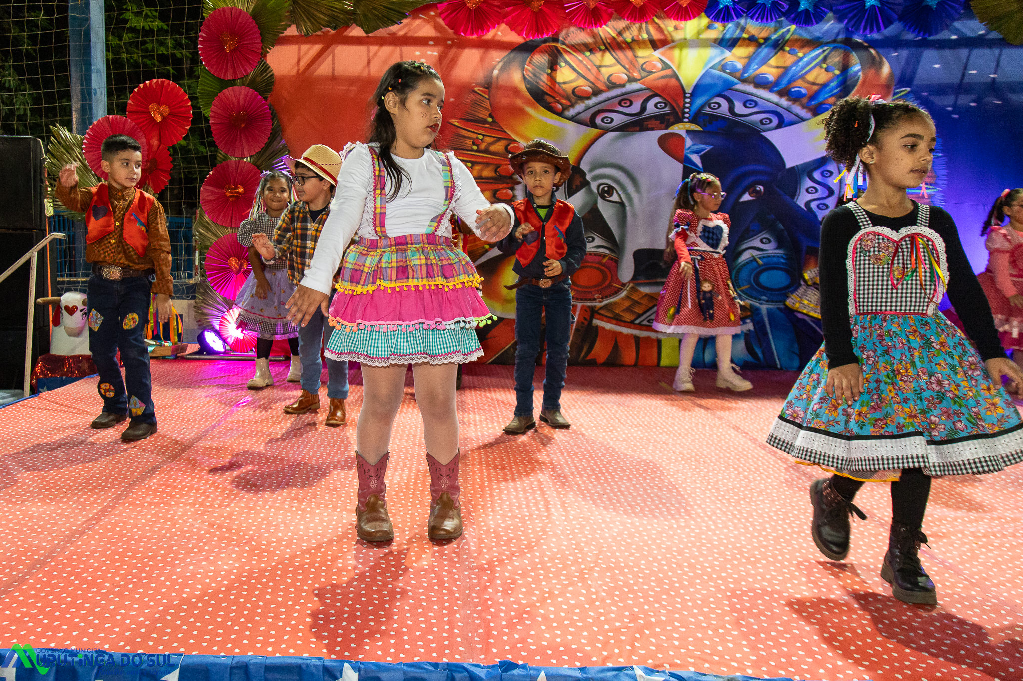 Participaram as crianças do maternal da C.E.I. e tbm as crianças da EMEIF A. Bim Storti com danças típicas daquela região como carimbó, boi bumba, Catira, Frevo e outras. Alem das danças as crianças puderam desfrutar gratuitamente de brinquedos infláveis, touro mecânico e pipoca.