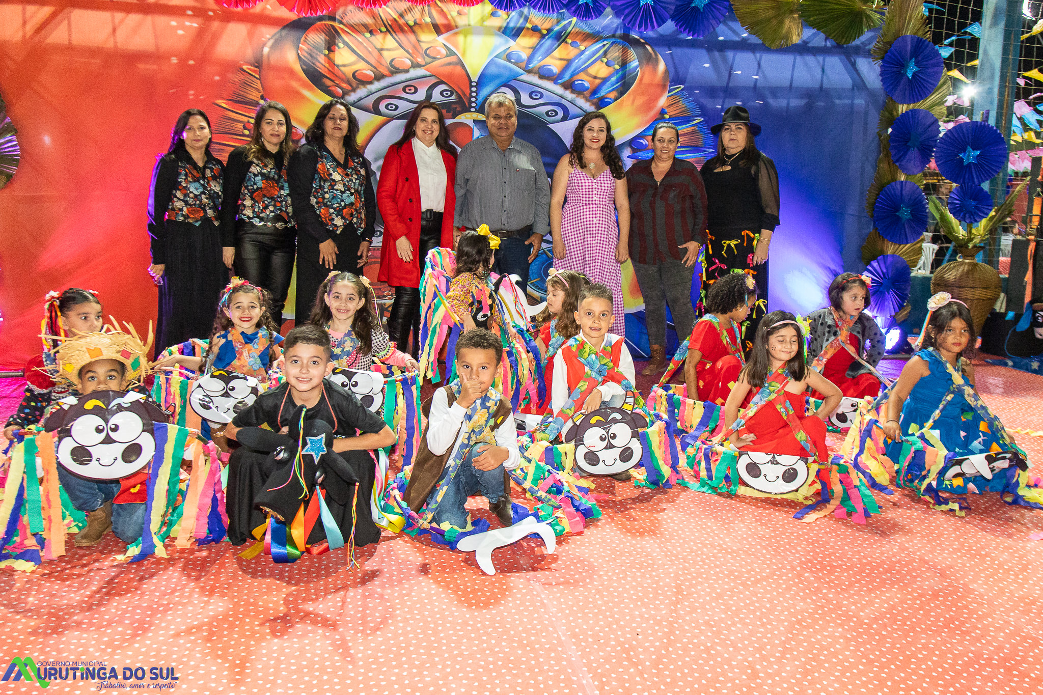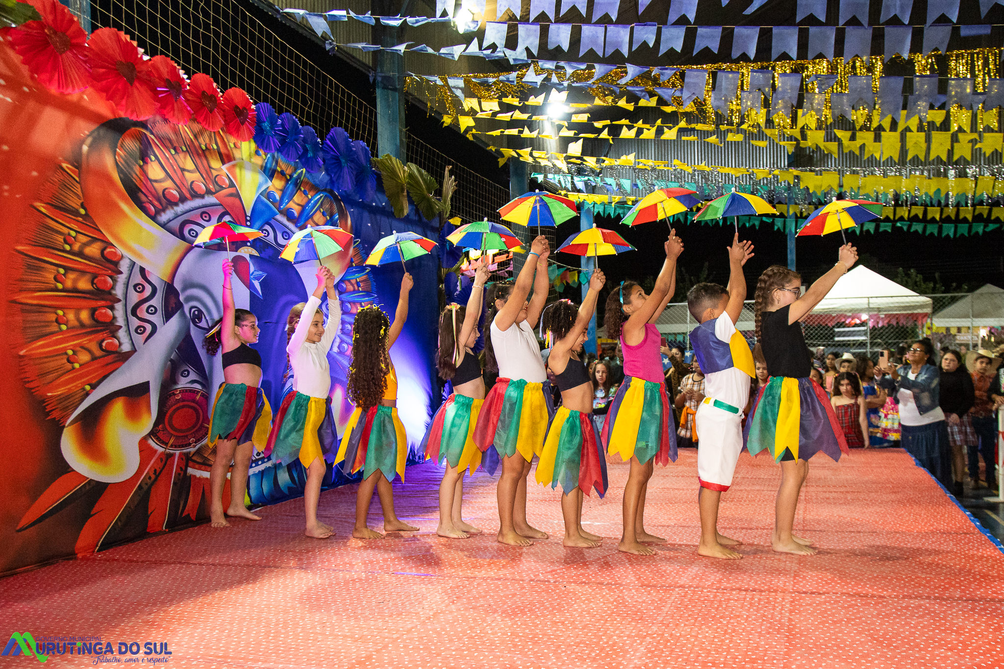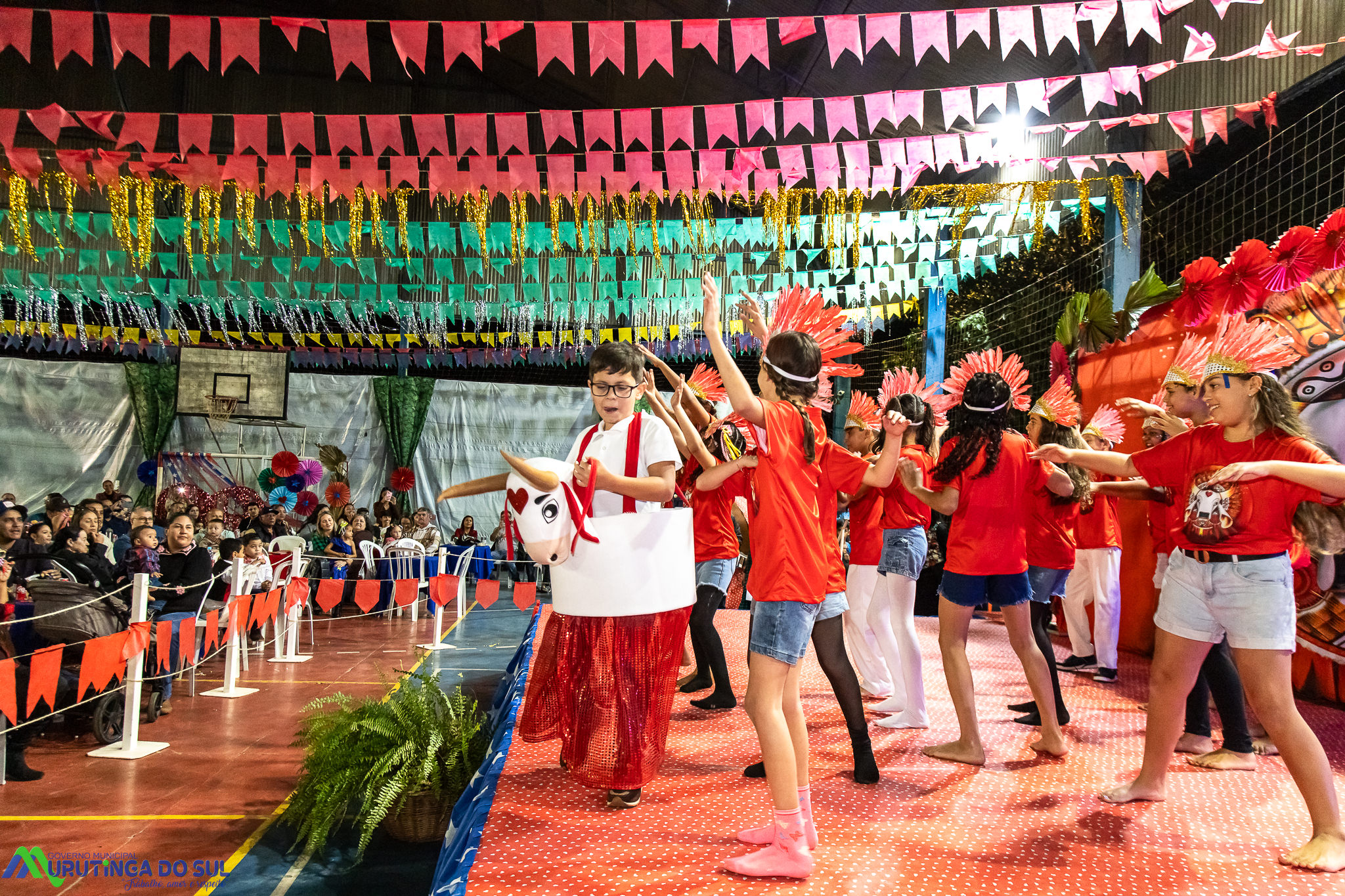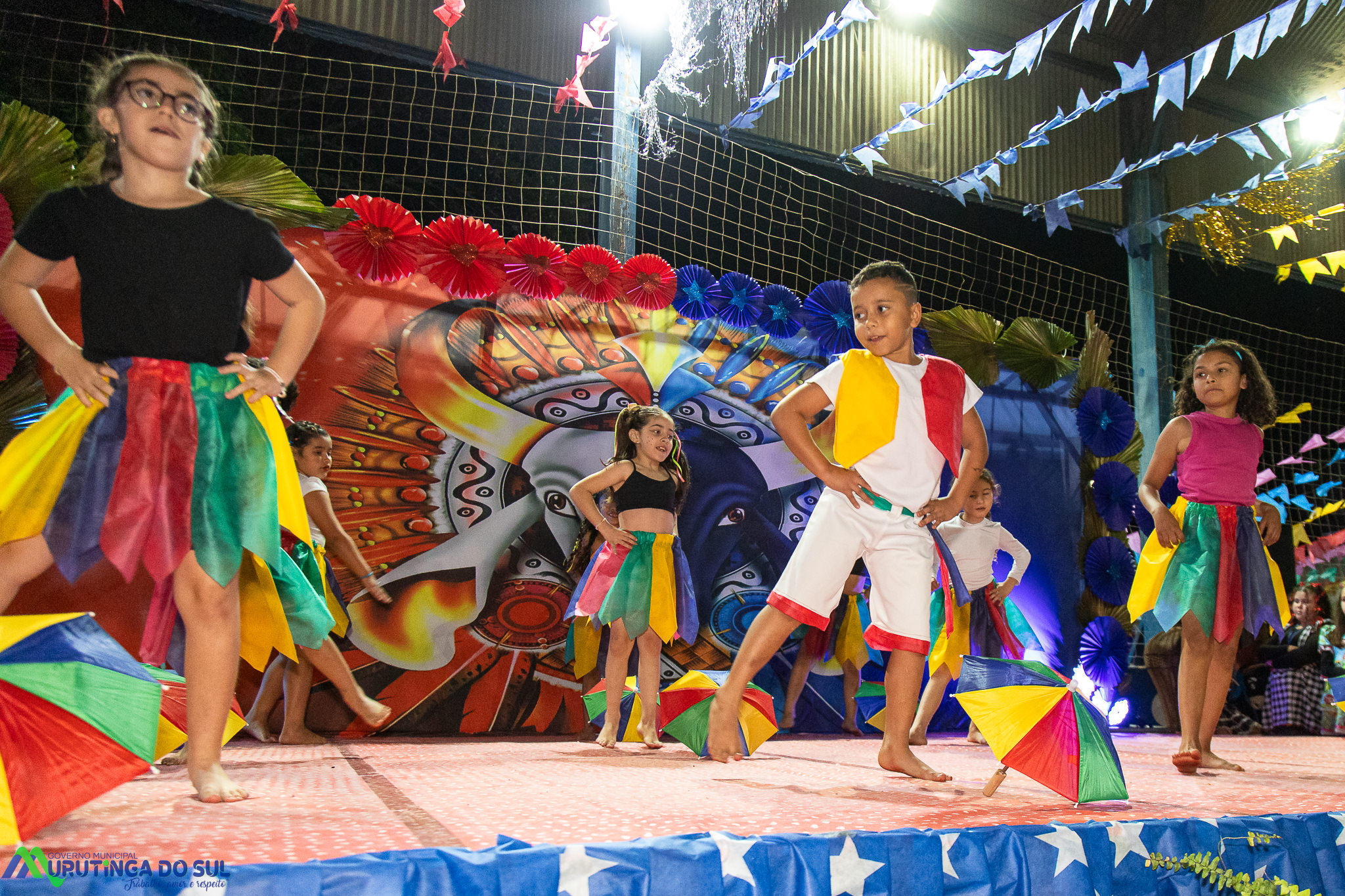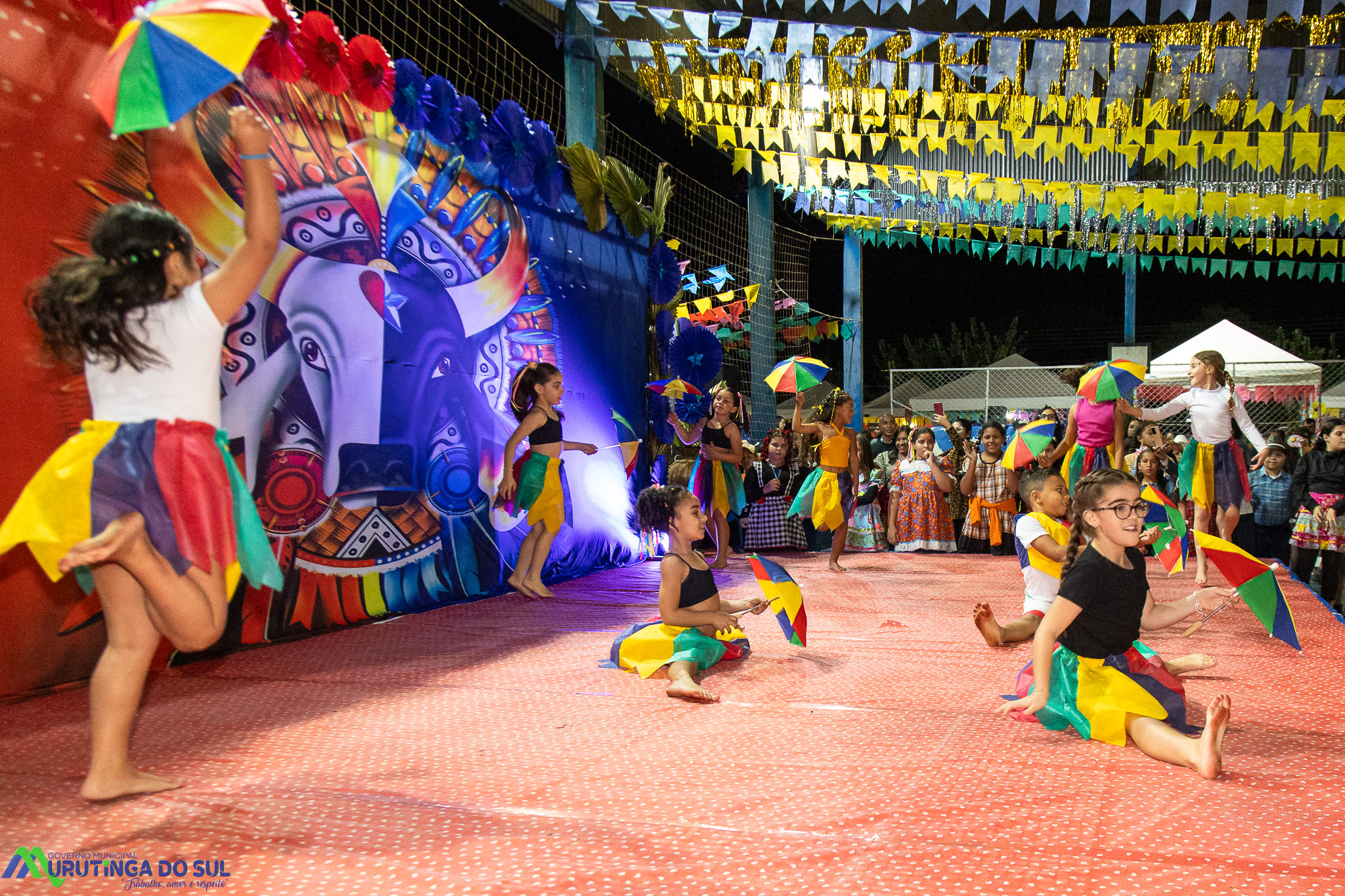 Participaram as crianças do maternal da C.E.I. e tbm as crianças da EMEIF A. Bim Storti com danças típicas daquela região como carimbó, boi bumba, Catira, Frevo e outras. Alem das danças as crianças puderam desfrutar gratuitamente de brinquedos infláveis, touro mecânico e pipoca.