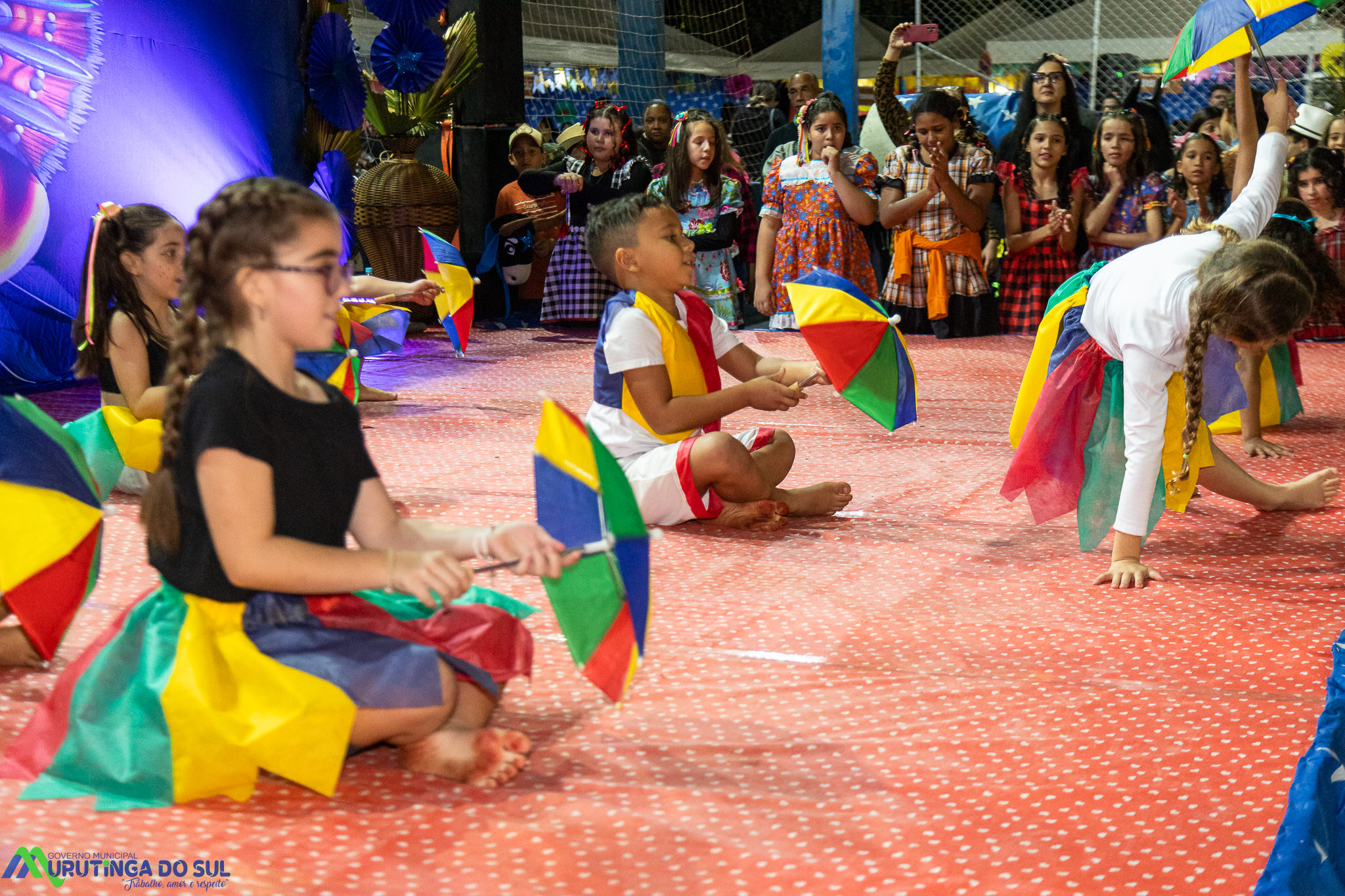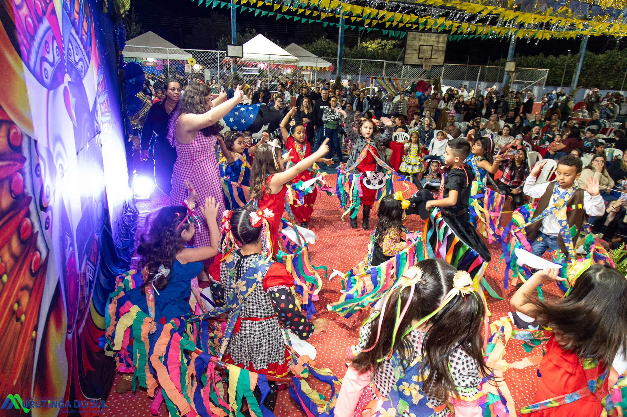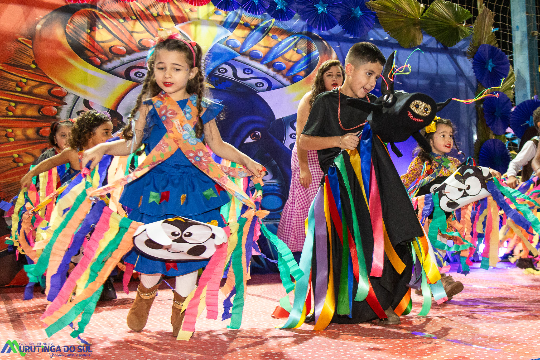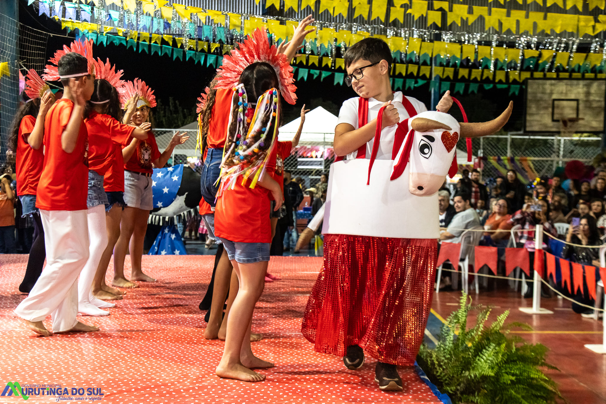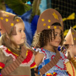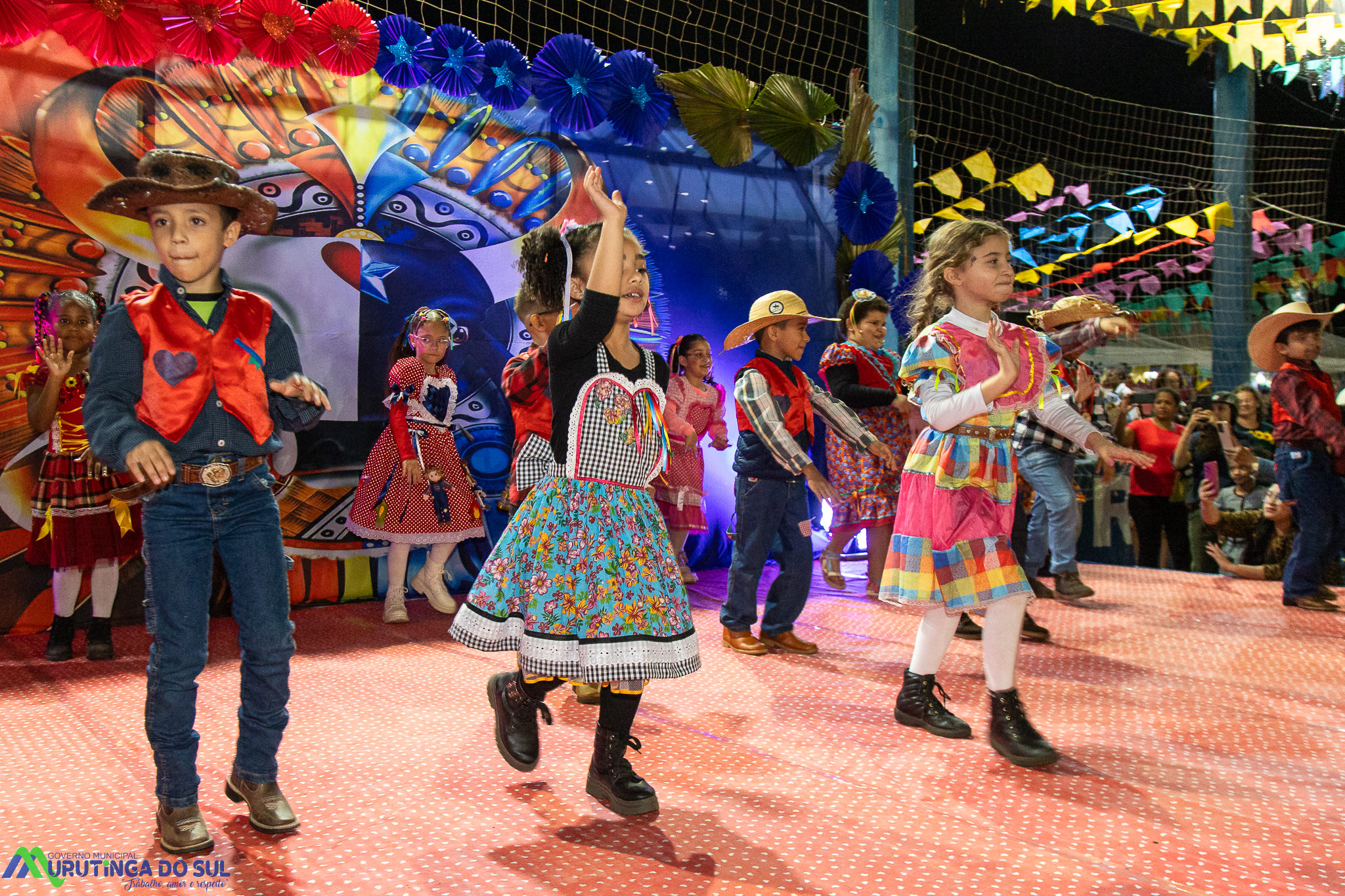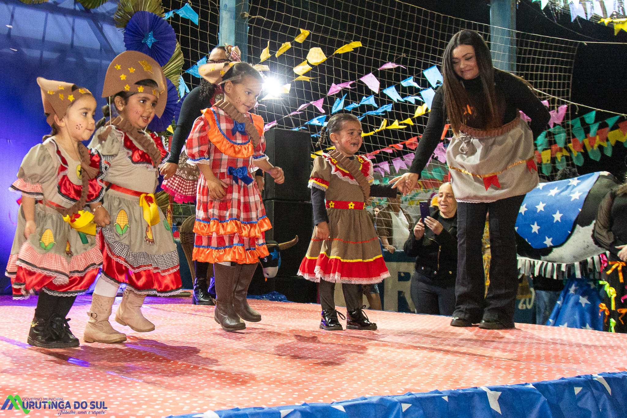 Participaram as crianças do maternal da C.E.I. e tbm as crianças da EMEIF A. Bim Storti com danças típicas daquela região como carimbó, boi bumba, Catira, Frevo e outras. Alem das danças as crianças puderam desfrutar gratuitamente de brinquedos infláveis, touro mecânico e pipoca.