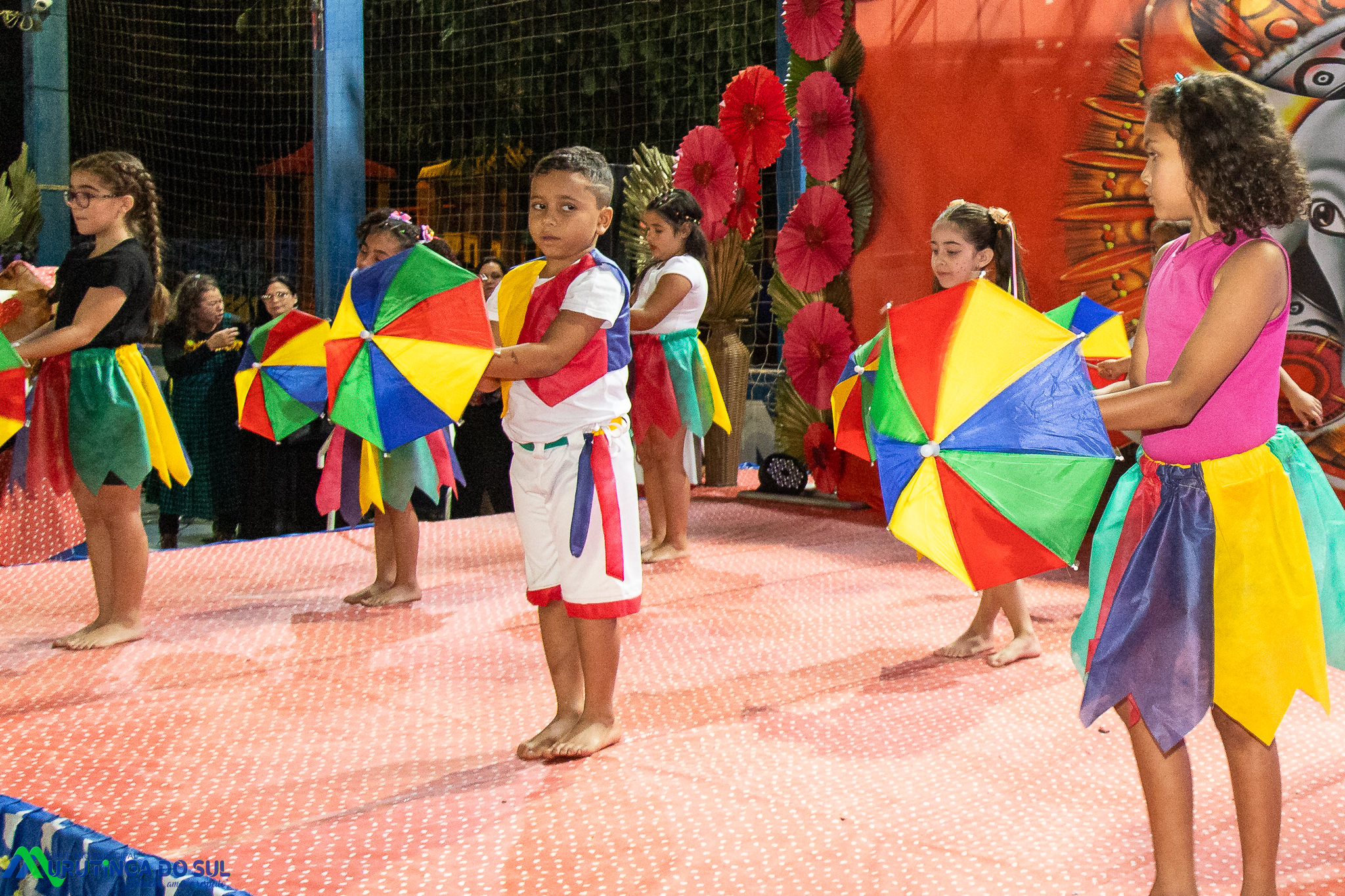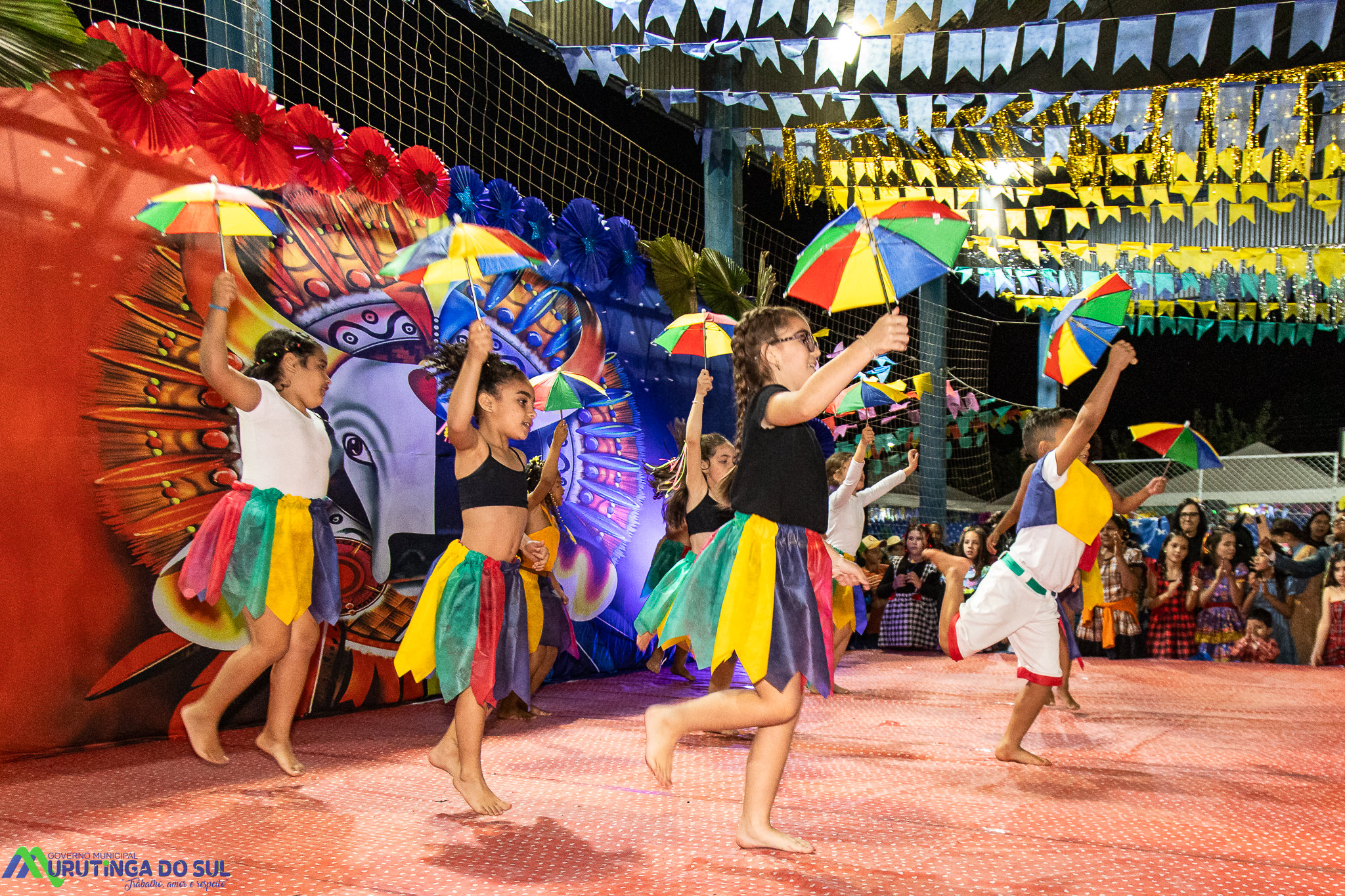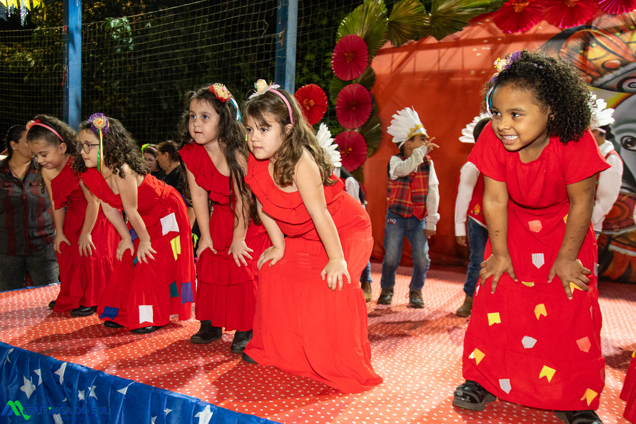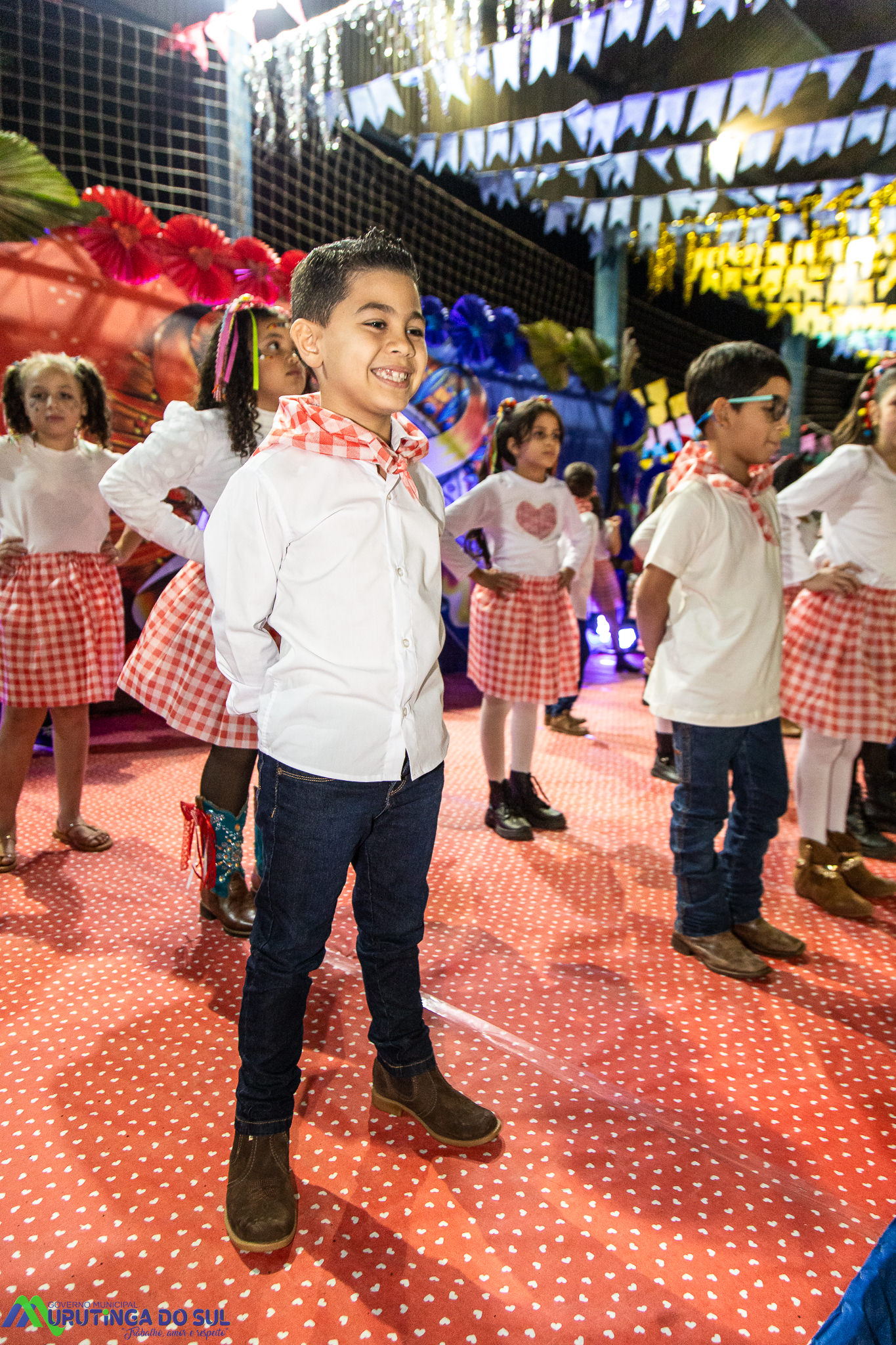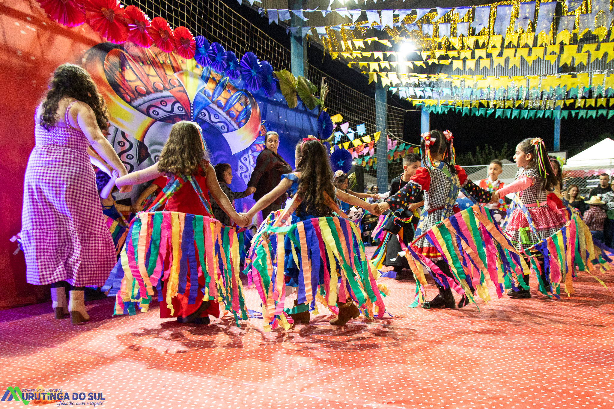 Participaram as crianças do maternal da C.E.I. e tbm as crianças da EMEIF A. Bim Storti com danças típicas daquela região como carimbó, boi bumba, Catira, Frevo e outras. Alem das danças as crianças puderam desfrutar gratuitamente de brinquedos infláveis, touro mecânico e pipoca.