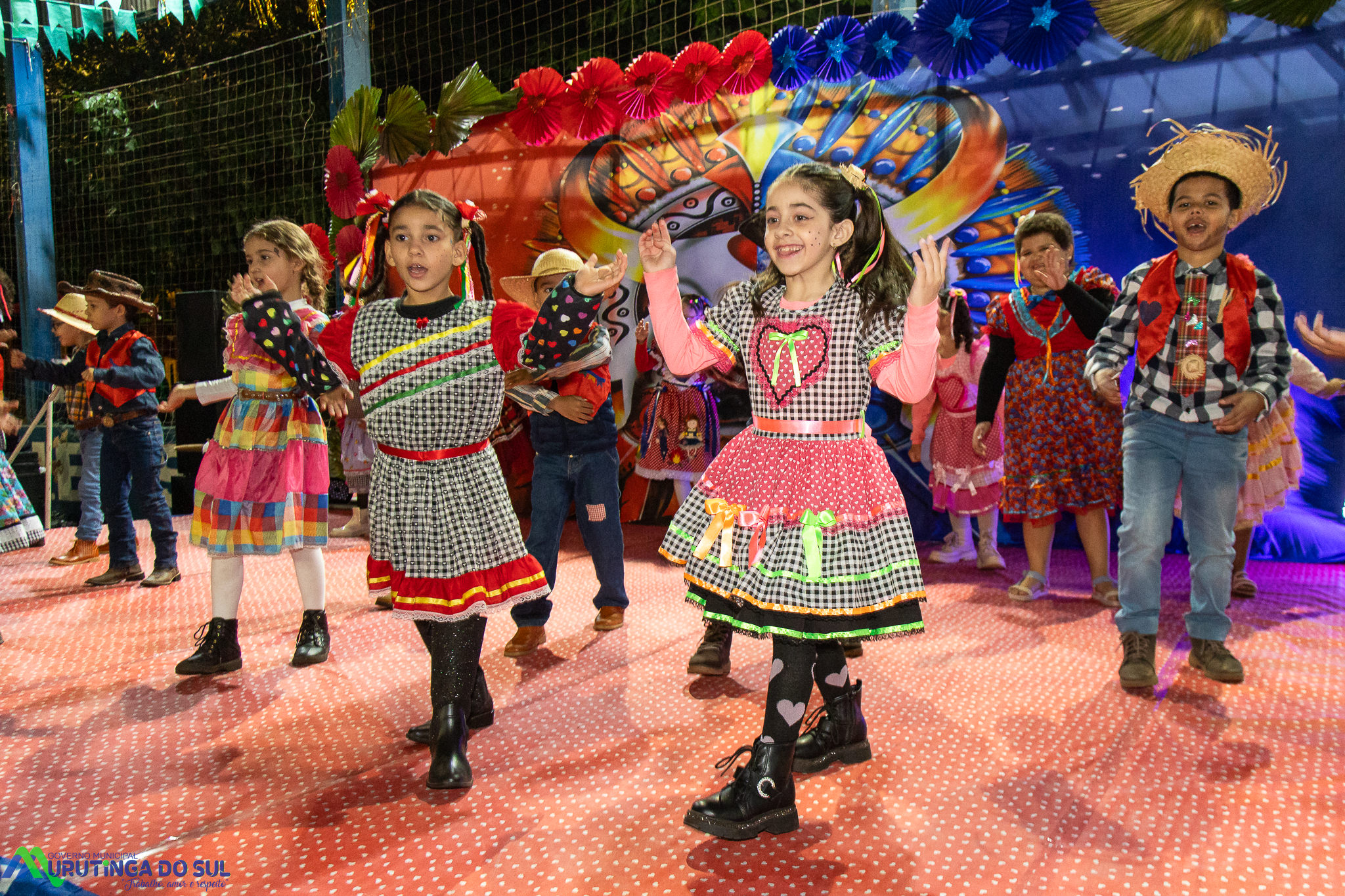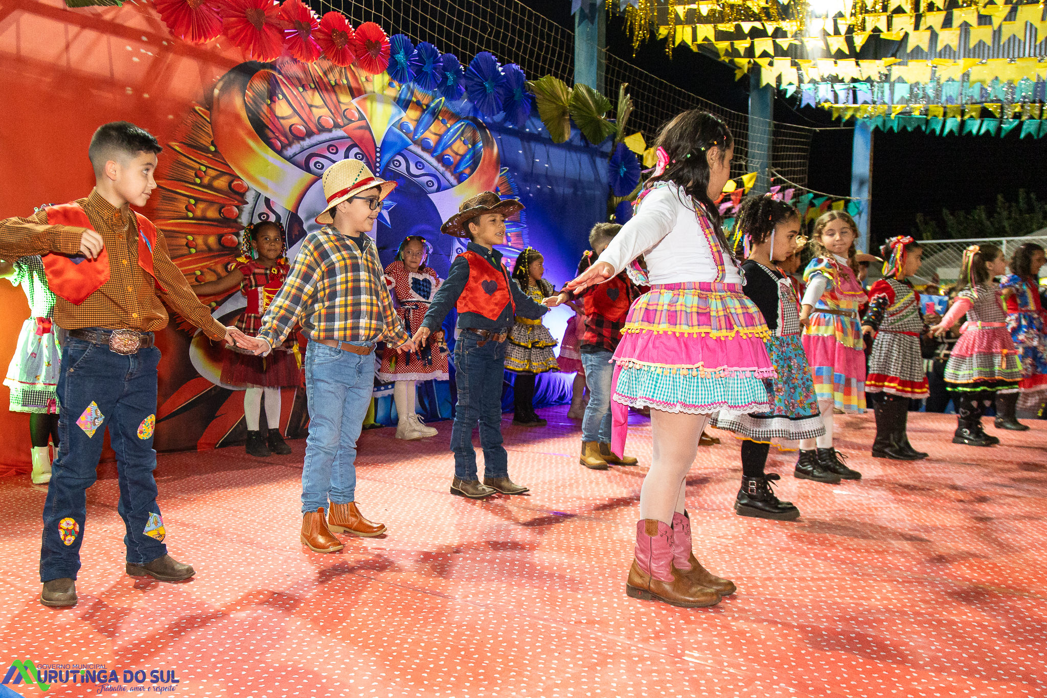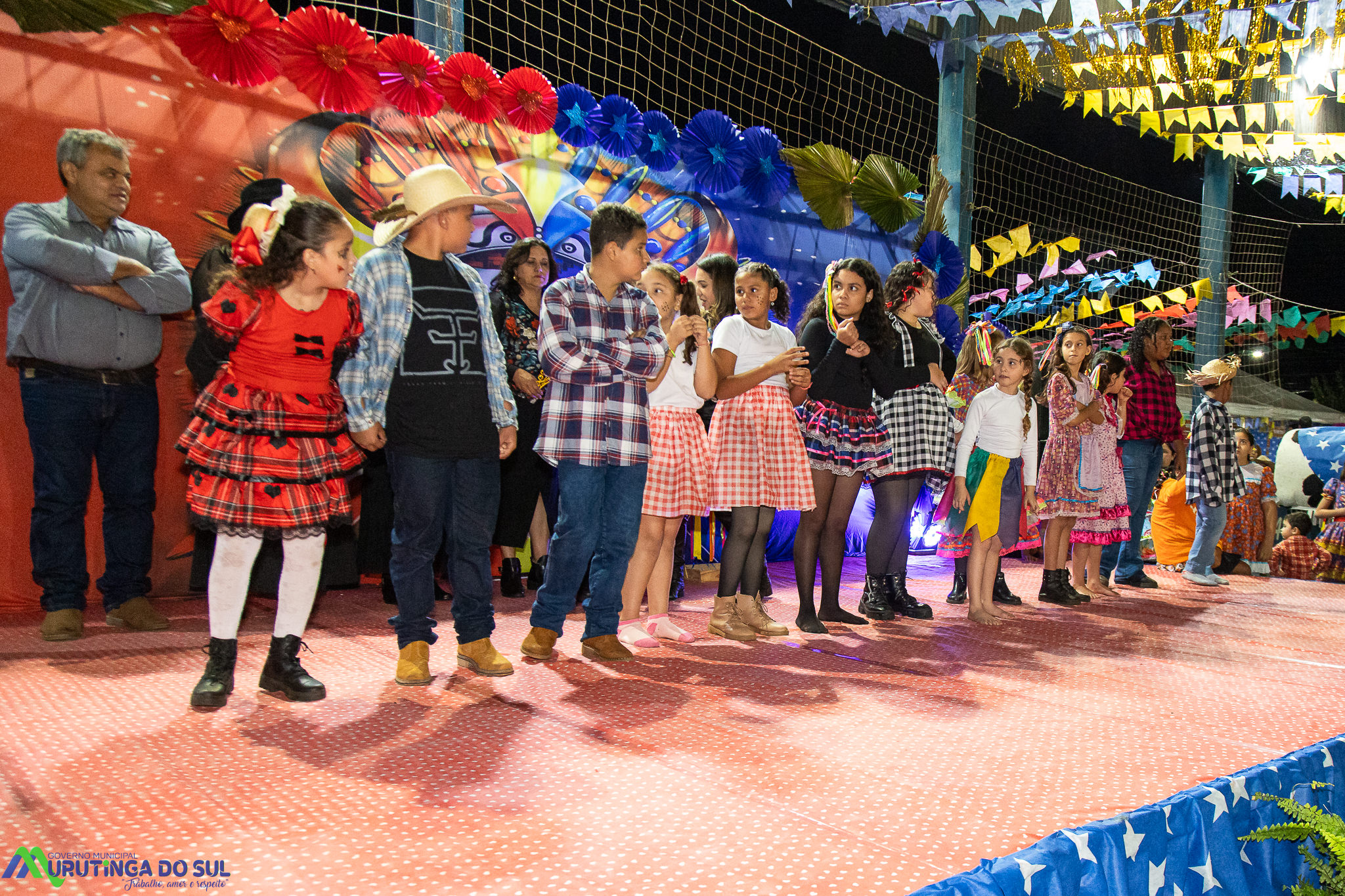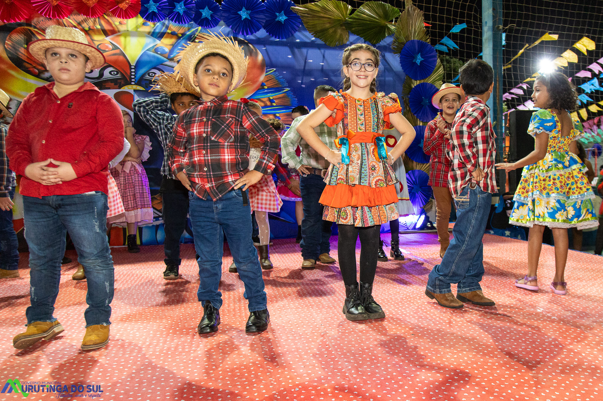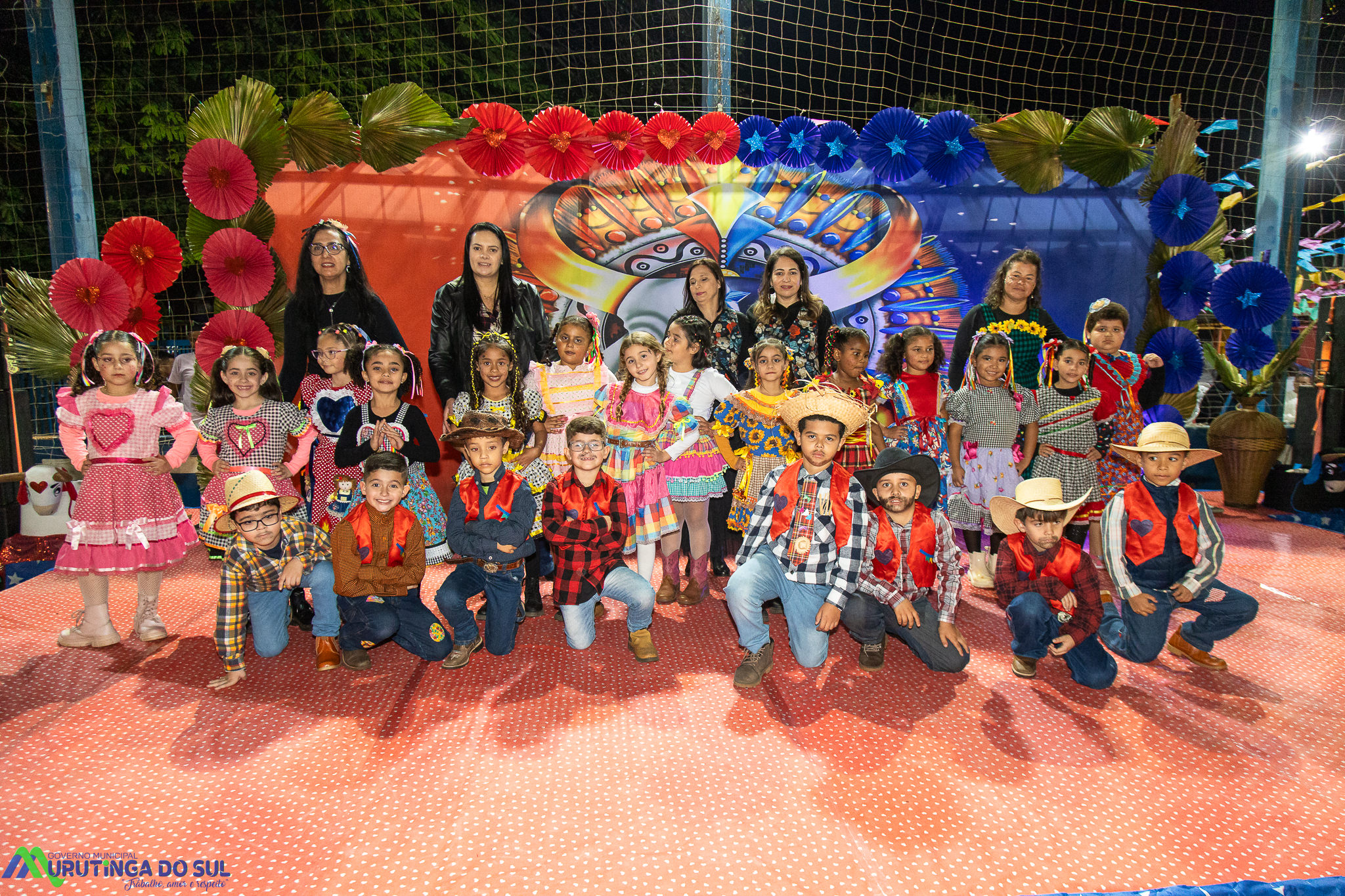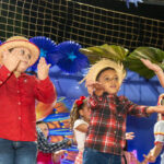 Participaram as crianças do maternal da C.E.I. e tbm as crianças da EMEIF A. Bim Storti com danças típicas daquela região como carimbó, boi bumba, Catira, Frevo e outras. Alem das danças as crianças puderam desfrutar gratuitamente de brinquedos infláveis, touro mecânico e pipoca.