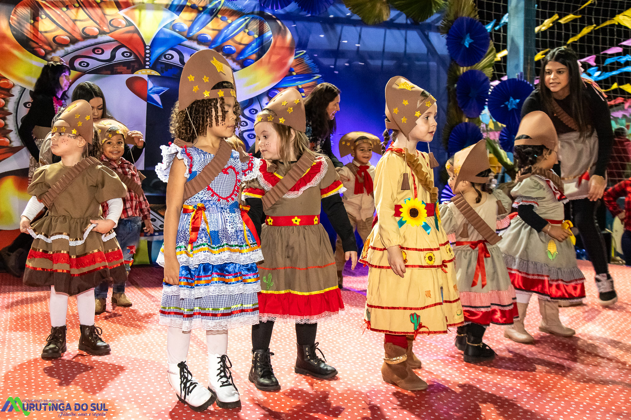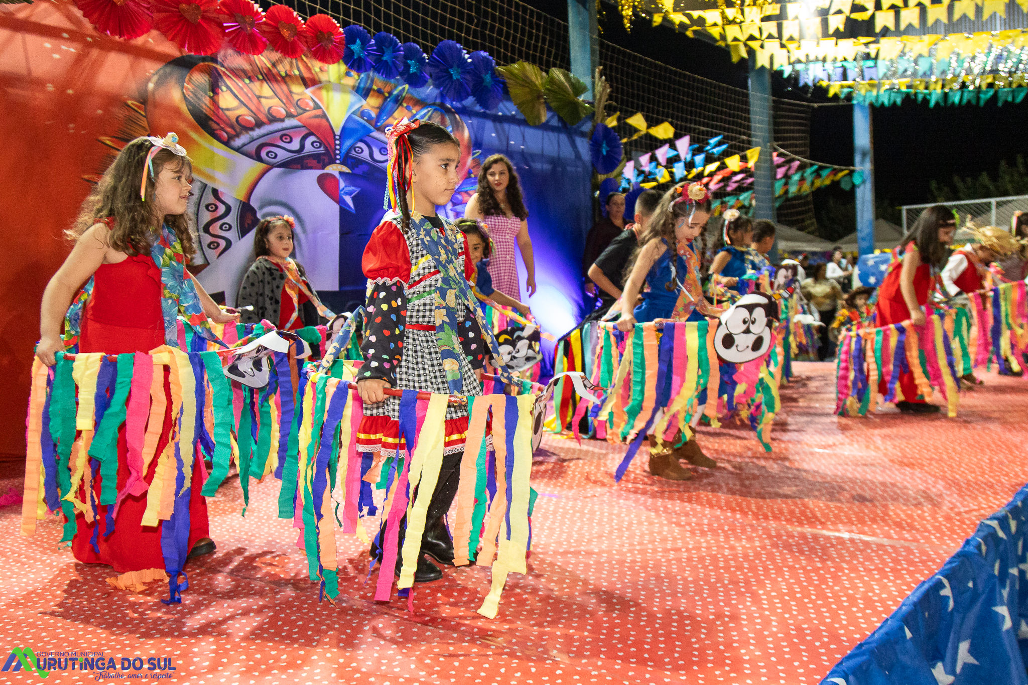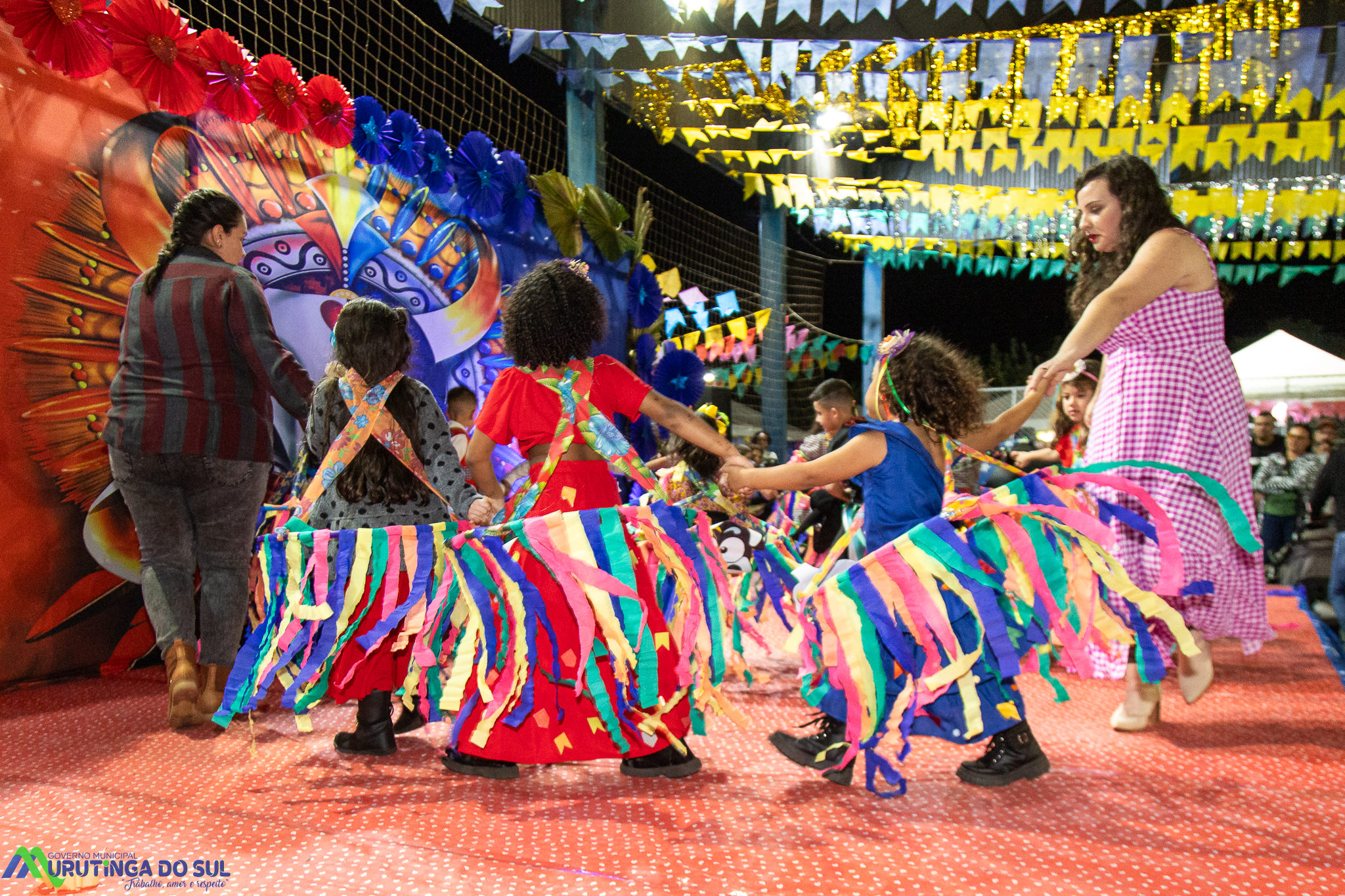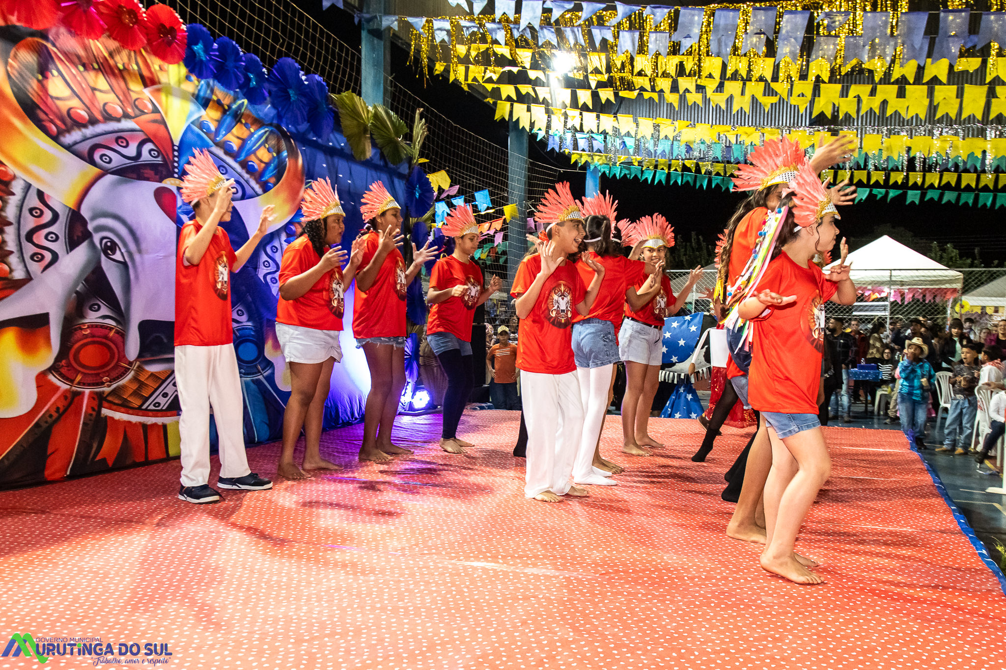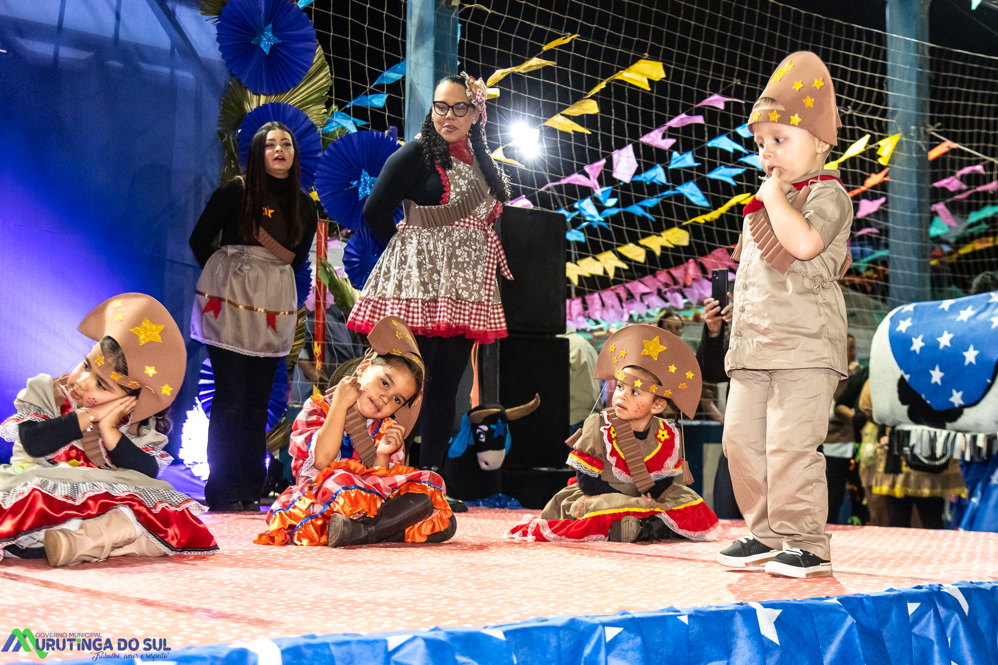Participaram as crianças do maternal da C.E.I. e tbm as crianças da EMEIF A. Bim Storti com danças típicas daquela região como carimbó, boi bumba, Catira, Frevo e outras. Alem das danças as crianças puderam desfrutar gratuitamente de brinquedos infláveis, touro mecânico e pipoca.