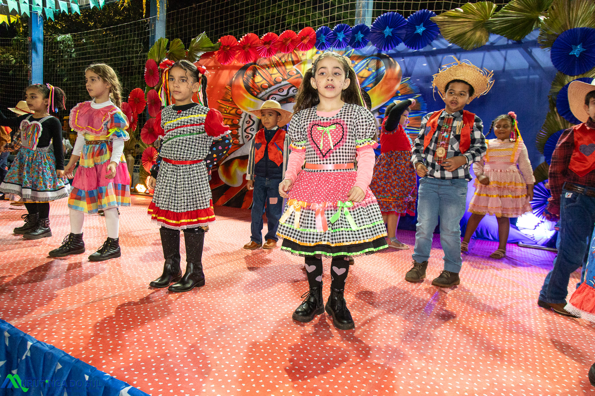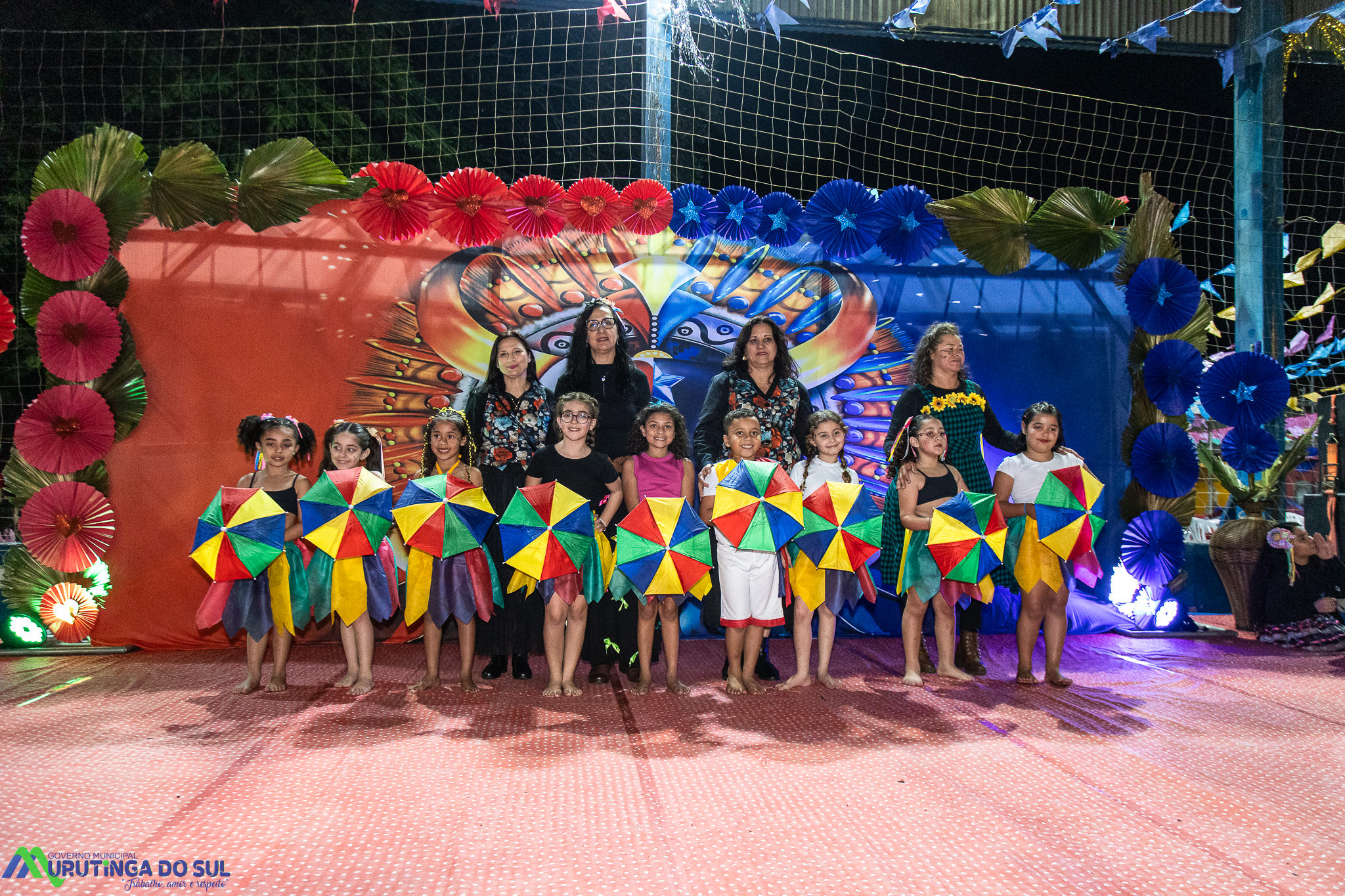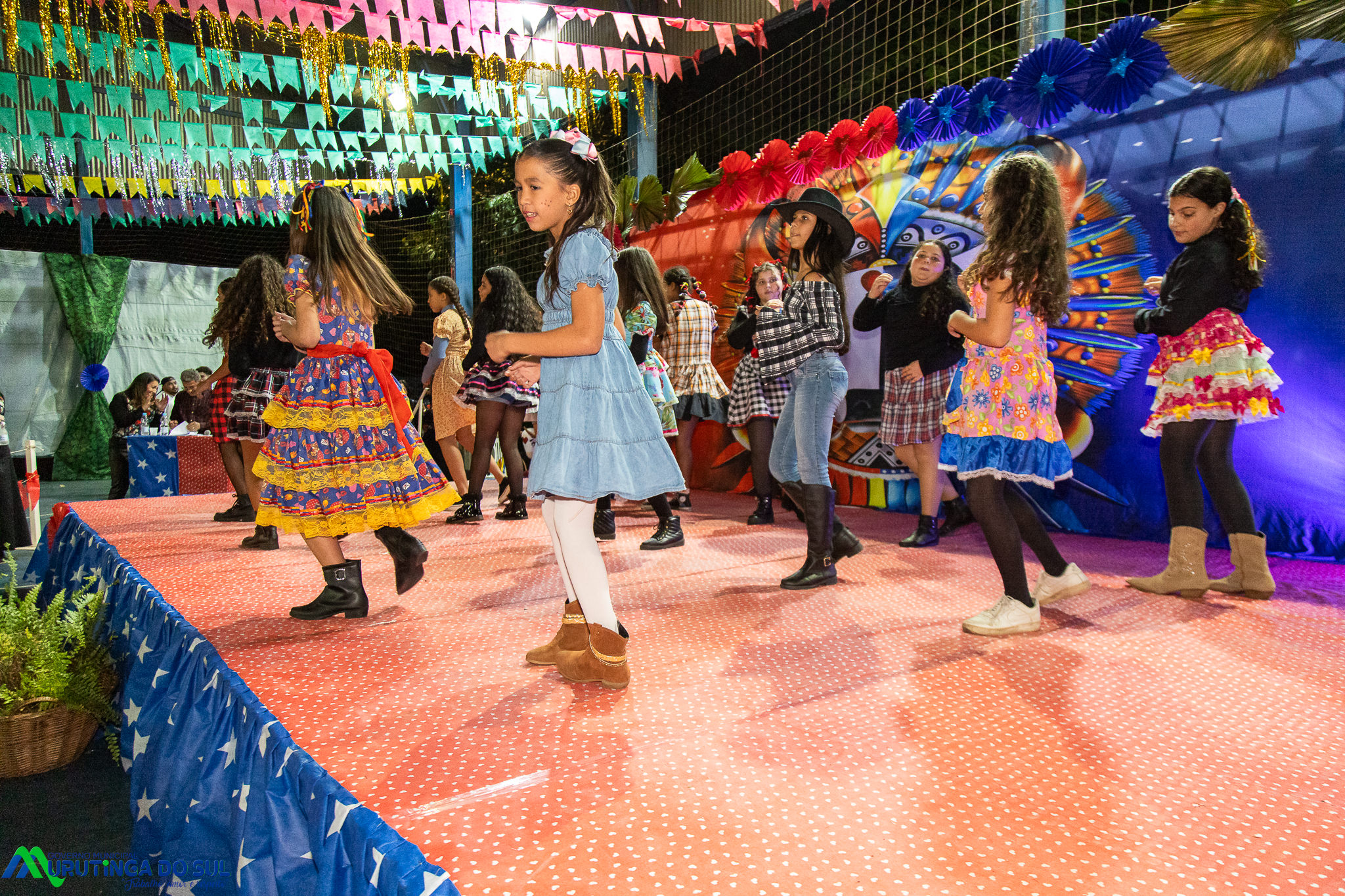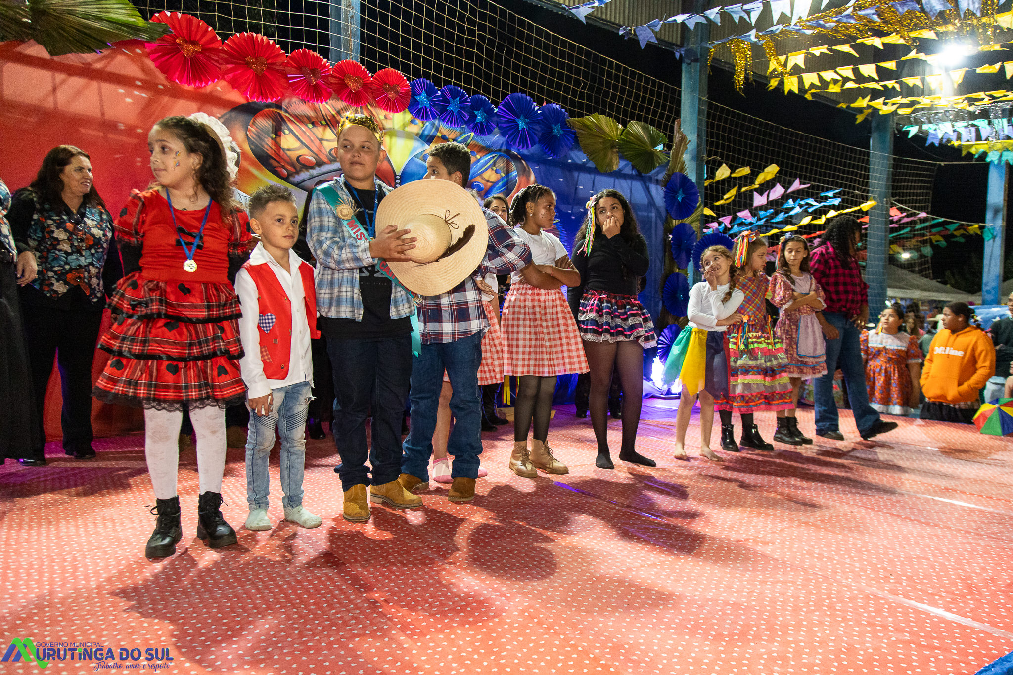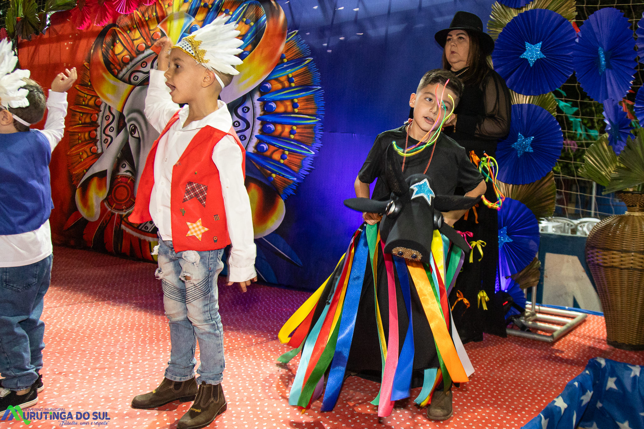 Participaram as crianças do maternal da C.E.I. e tbm as crianças da EMEIF A. Bim Storti com danças típicas daquela região como carimbó, boi bumba, Catira, Frevo e outras. Alem das danças as crianças puderam desfrutar gratuitamente de brinquedos infláveis, touro mecânico e pipoca.