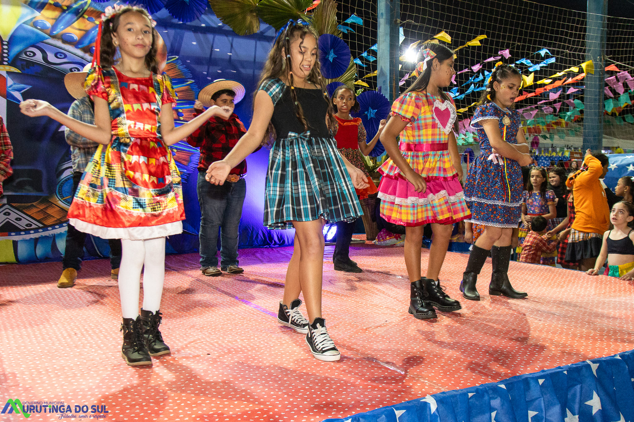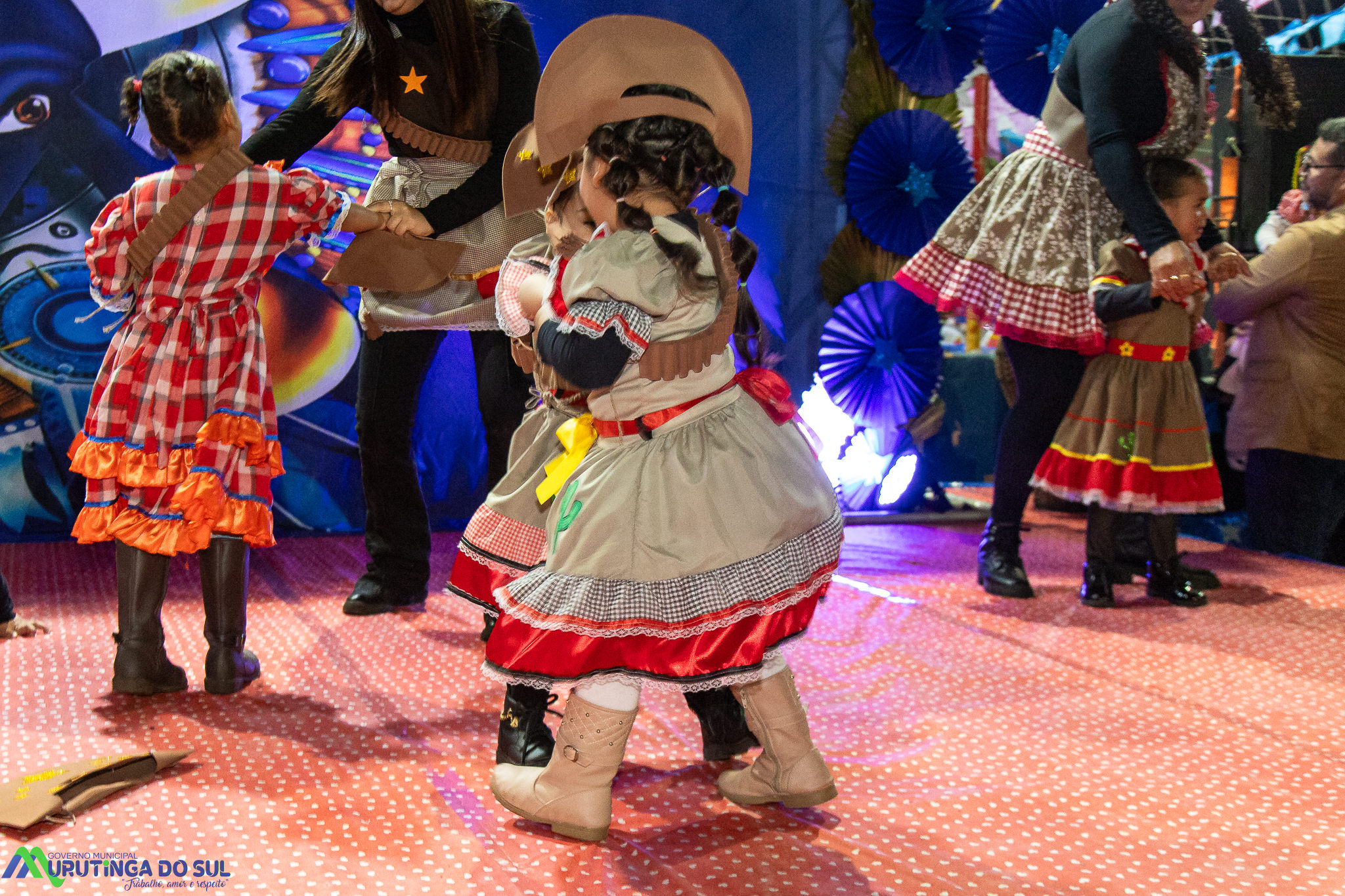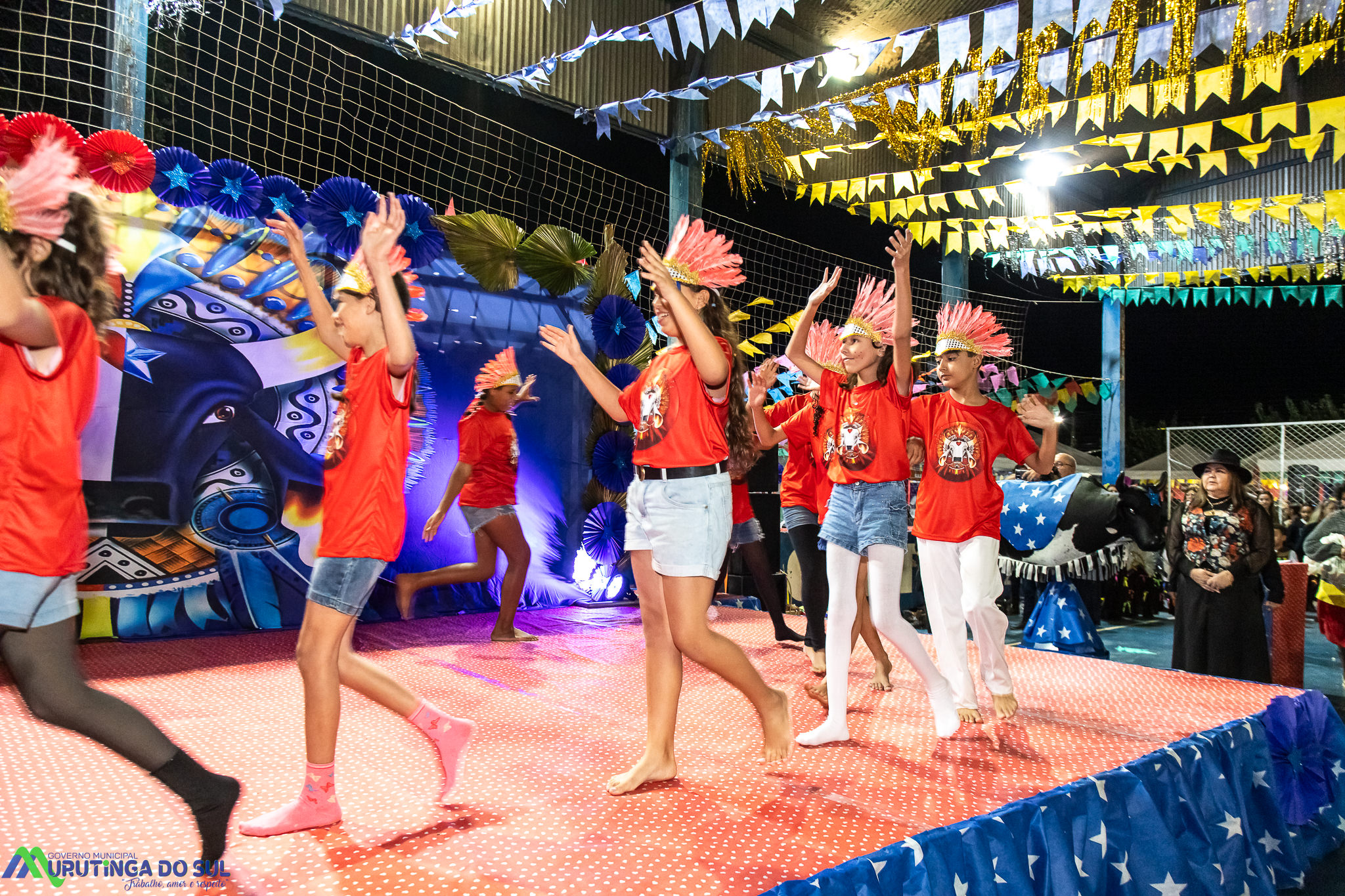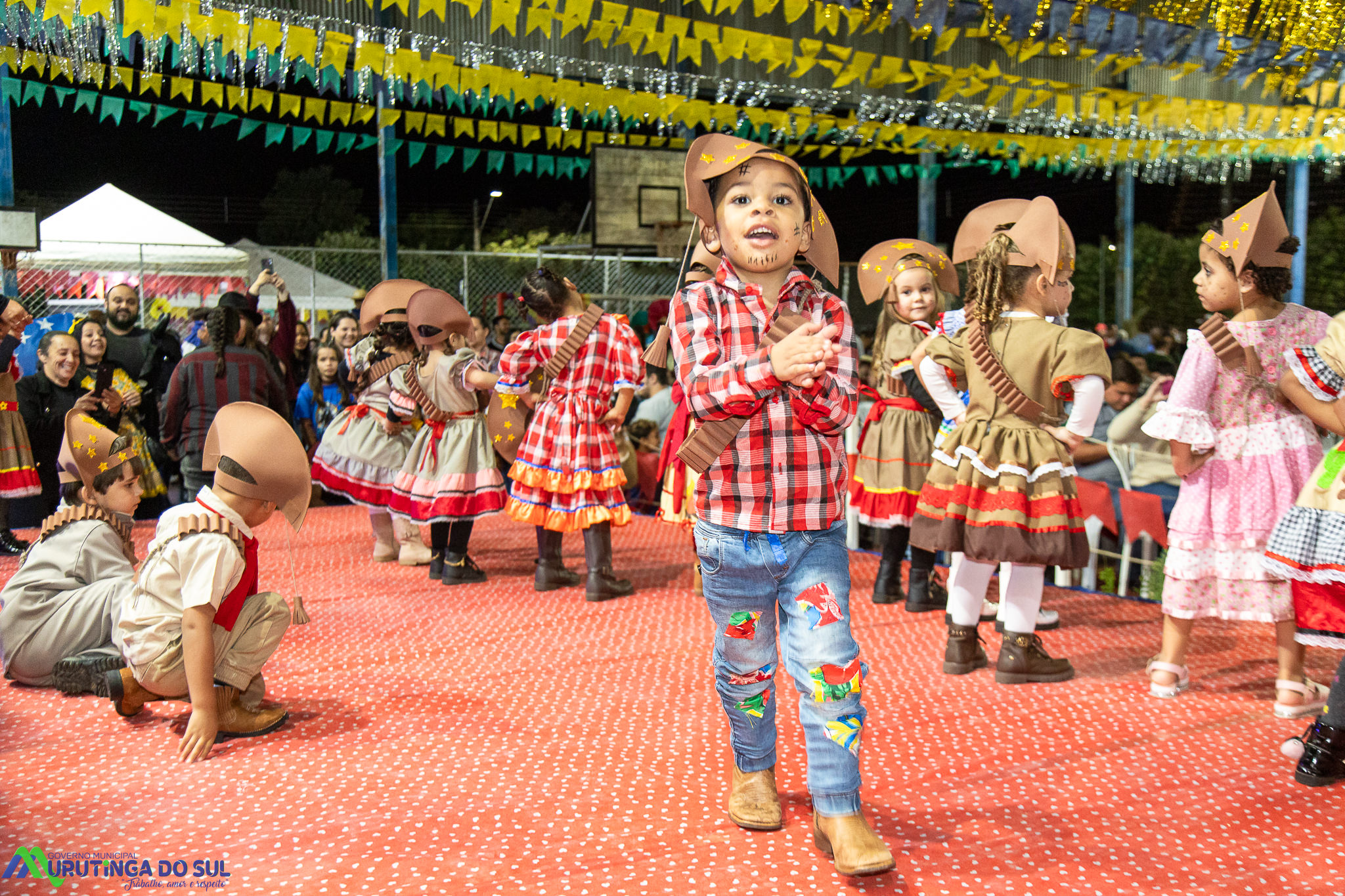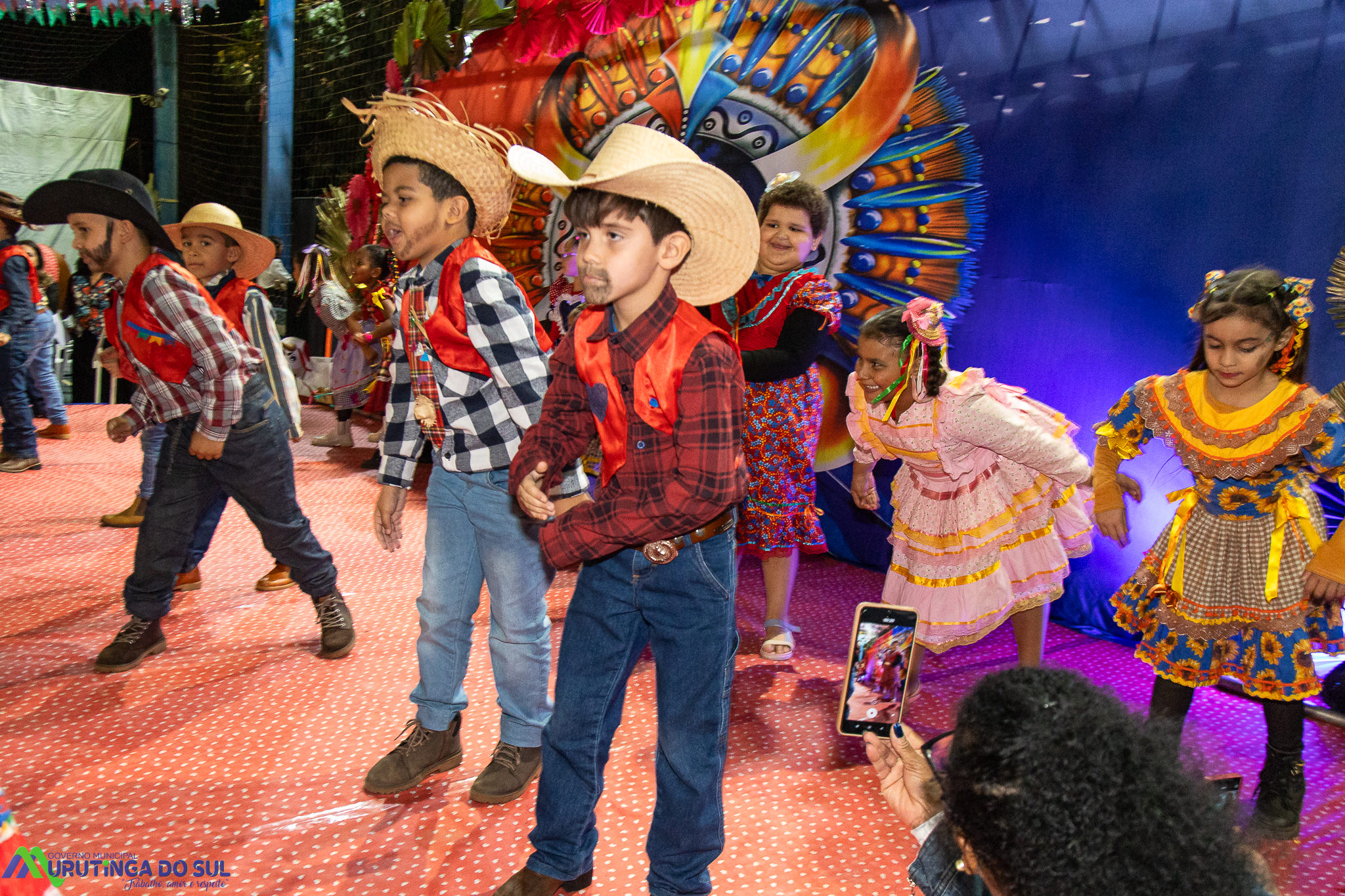 Participaram as crianças do maternal da C.E.I. e tbm as crianças da EMEIF A. Bim Storti com danças típicas daquela região como carimbó, boi bumba, Catira, Frevo e outras. Alem das danças as crianças puderam desfrutar gratuitamente de brinquedos infláveis, touro mecânico e pipoca.