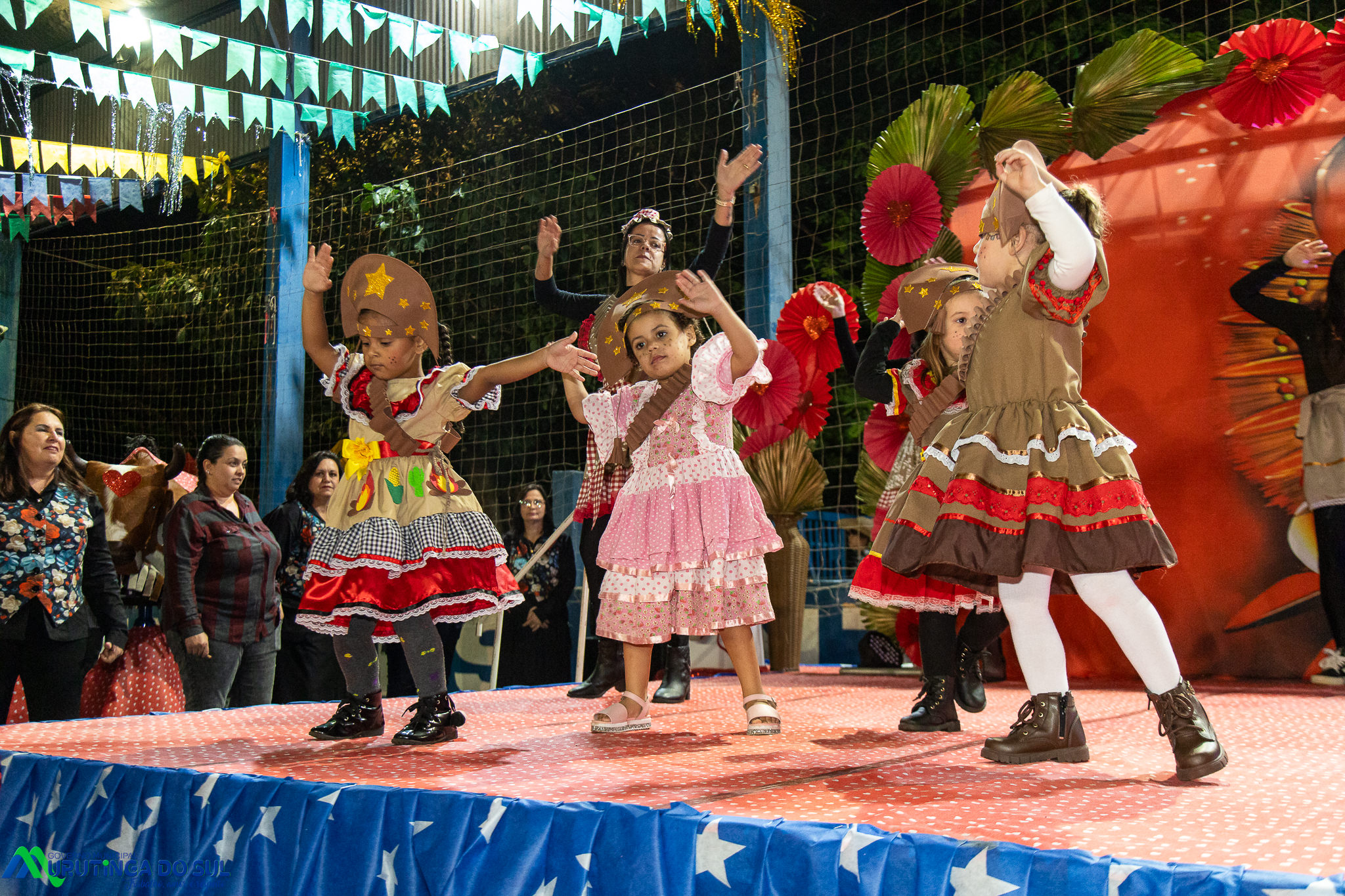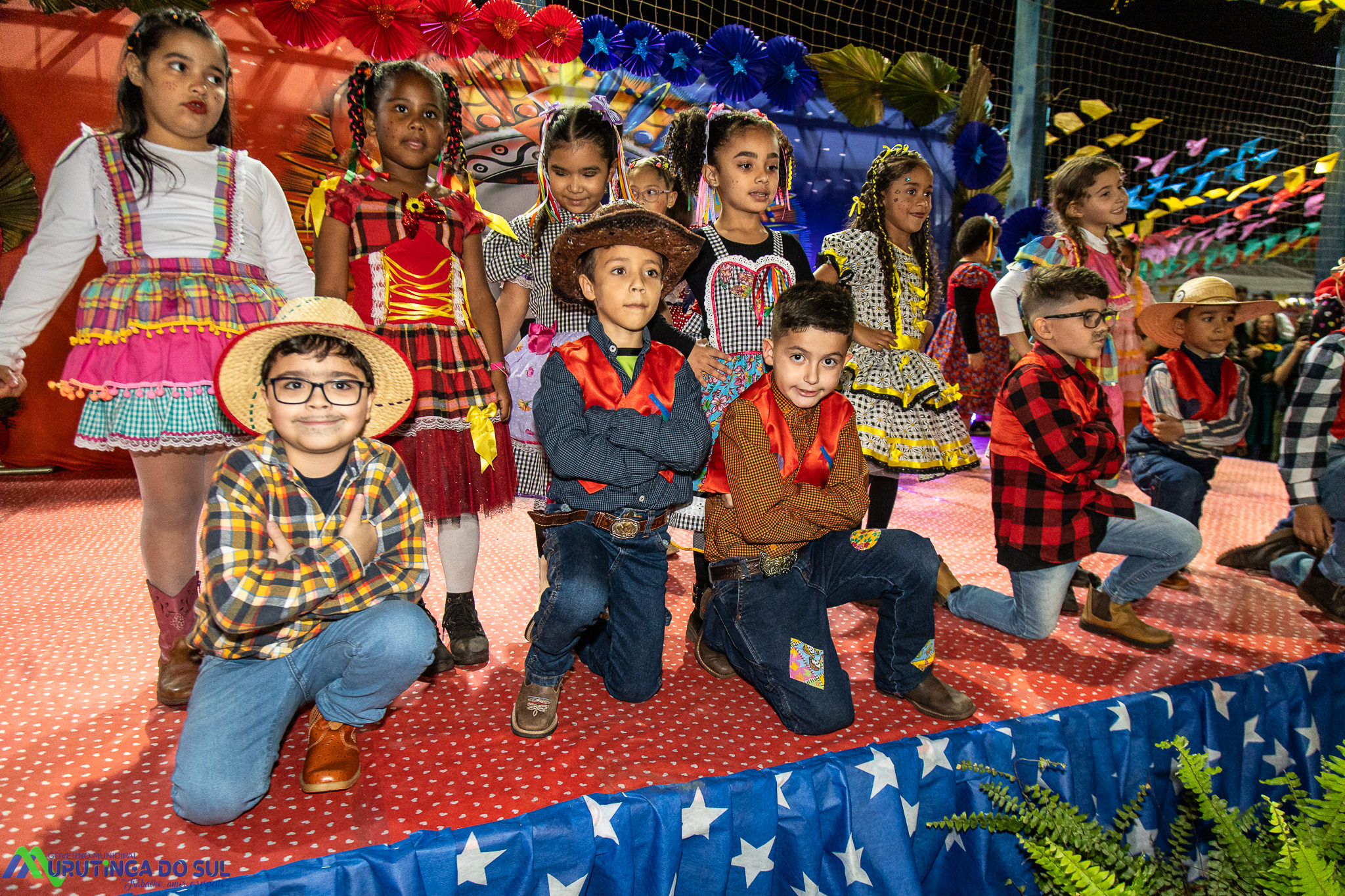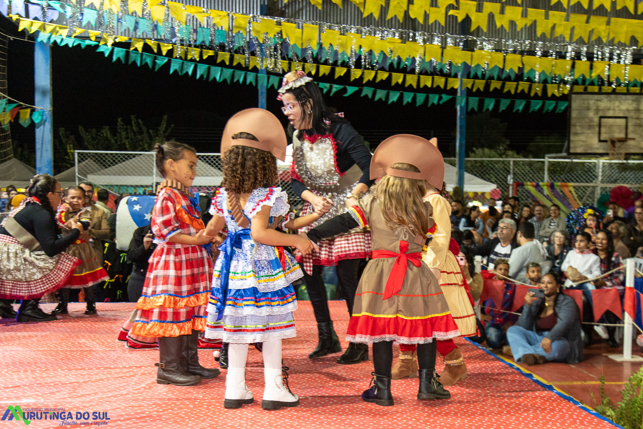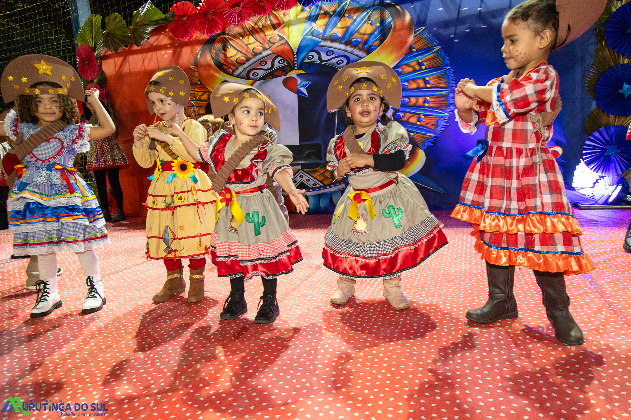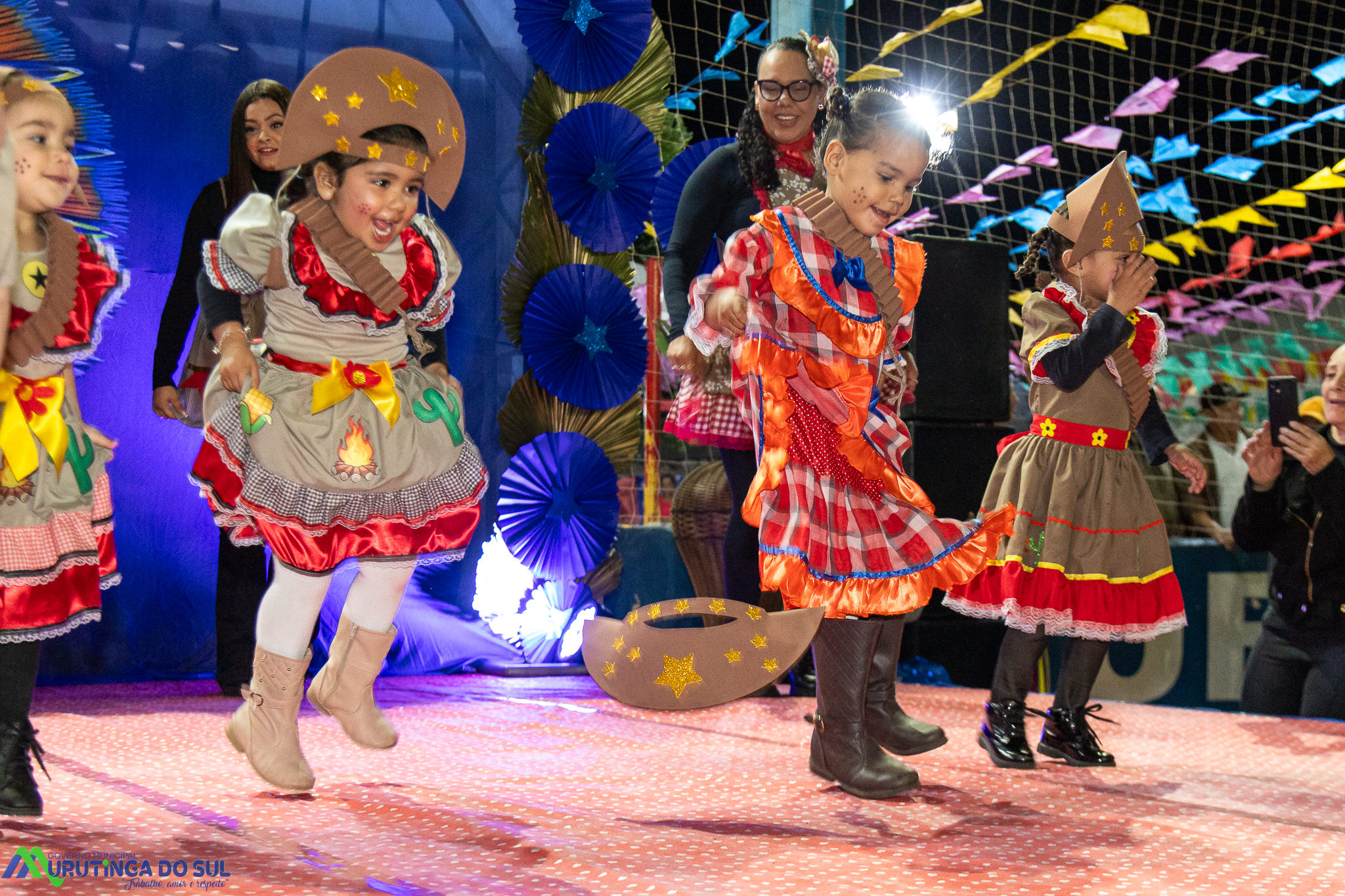 Participaram as crianças do maternal da C.E.I. e tbm as crianças da EMEIF A. Bim Storti com danças típicas daquela região como carimbó, boi bumba, Catira, Frevo e outras. Alem das danças as crianças puderam desfrutar gratuitamente de brinquedos infláveis, touro mecânico e pipoca.