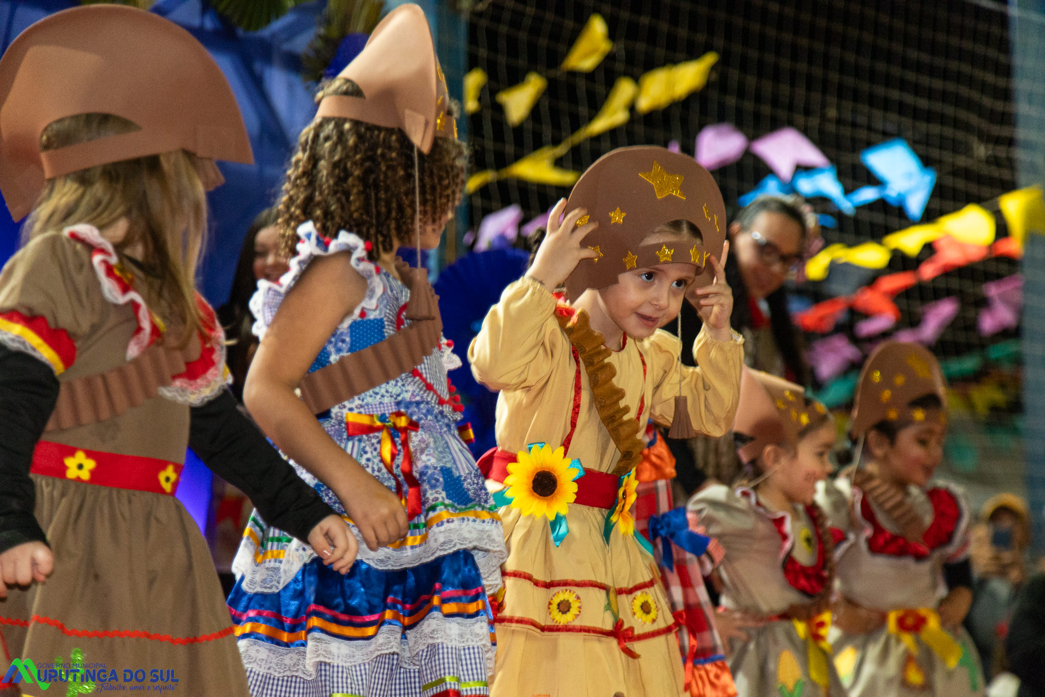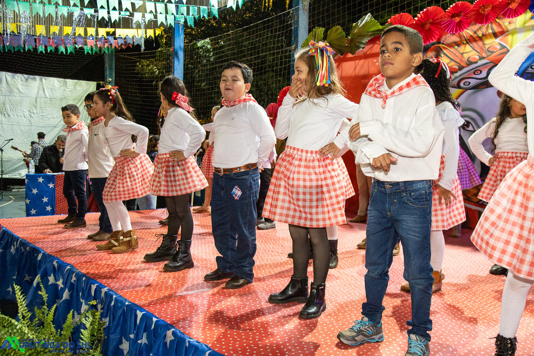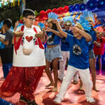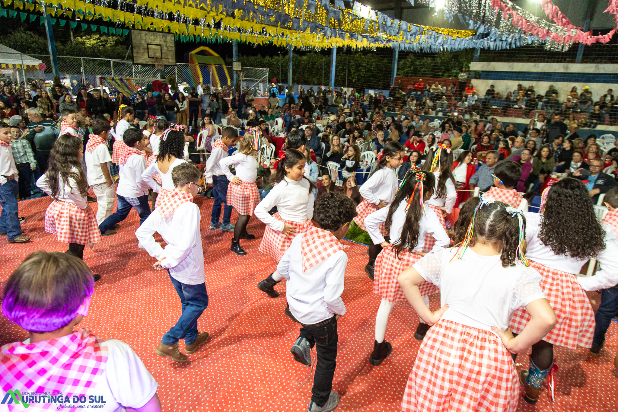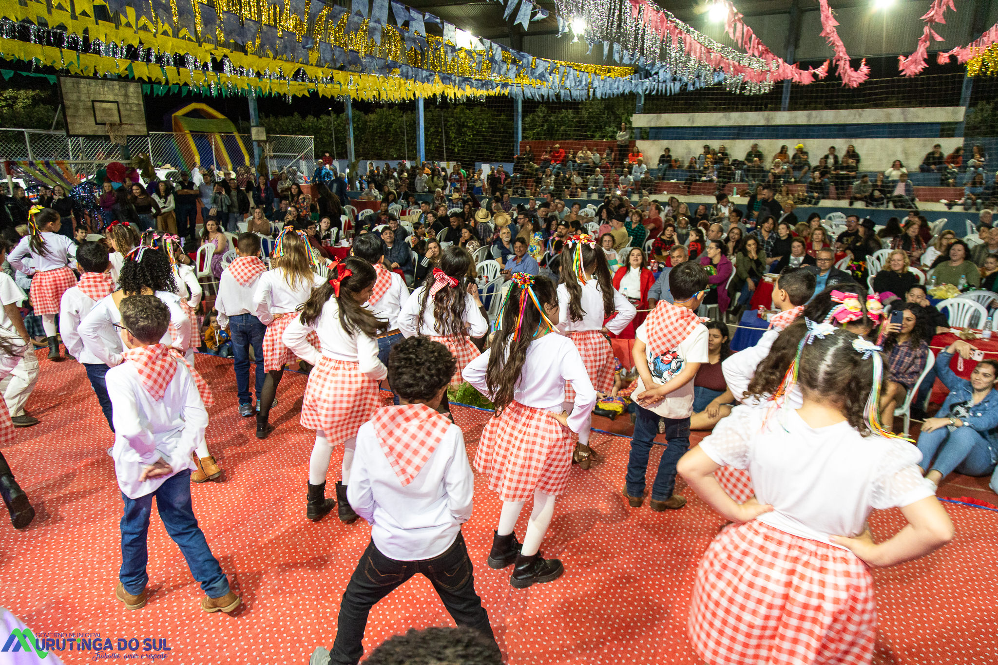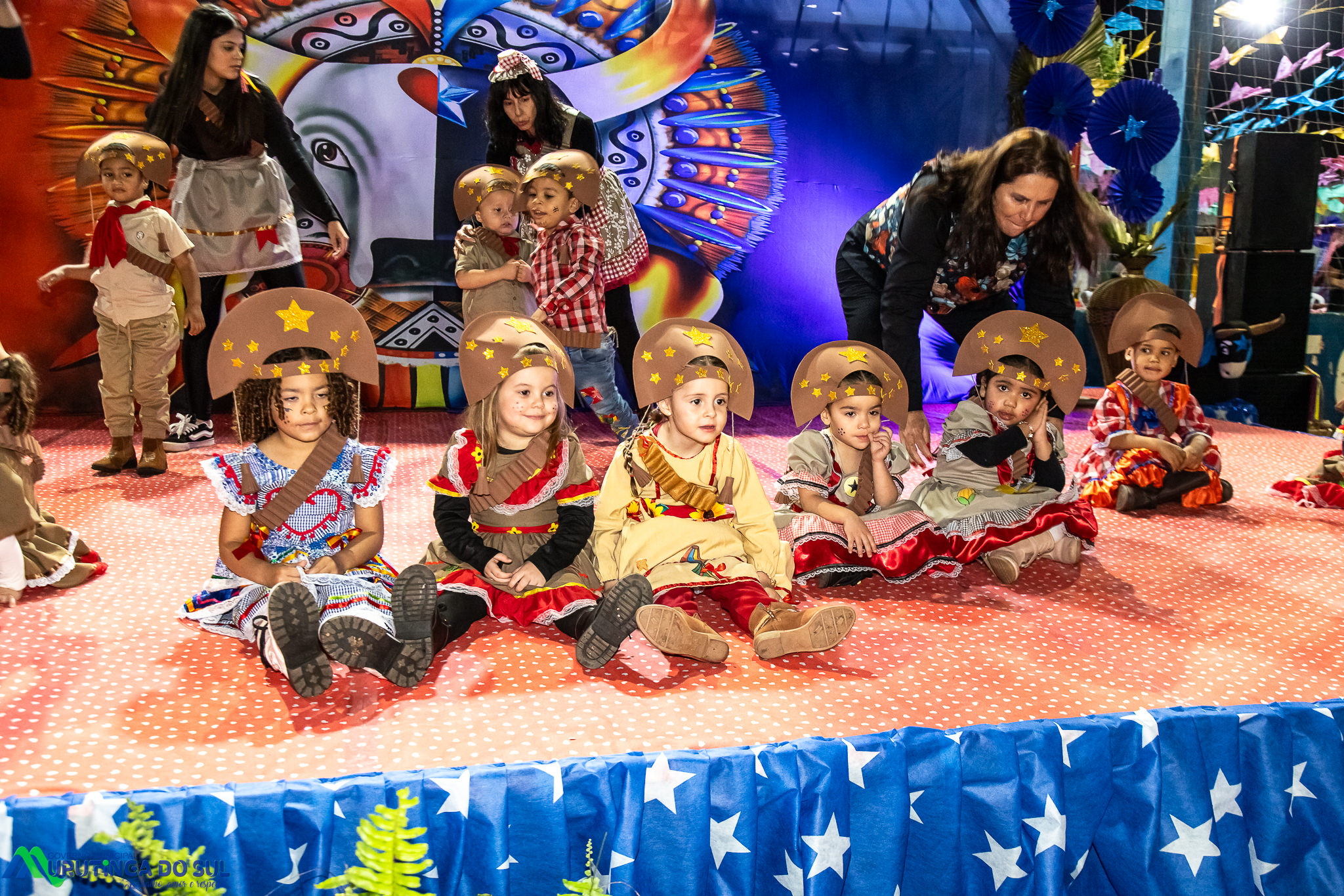 Participaram as crianças do maternal da C.E.I. e tbm as crianças da EMEIF A. Bim Storti com danças típicas daquela região como carimbó, boi bumba, Catira, Frevo e outras. Alem das danças as crianças puderam desfrutar gratuitamente de brinquedos infláveis, touro mecânico e pipoca.