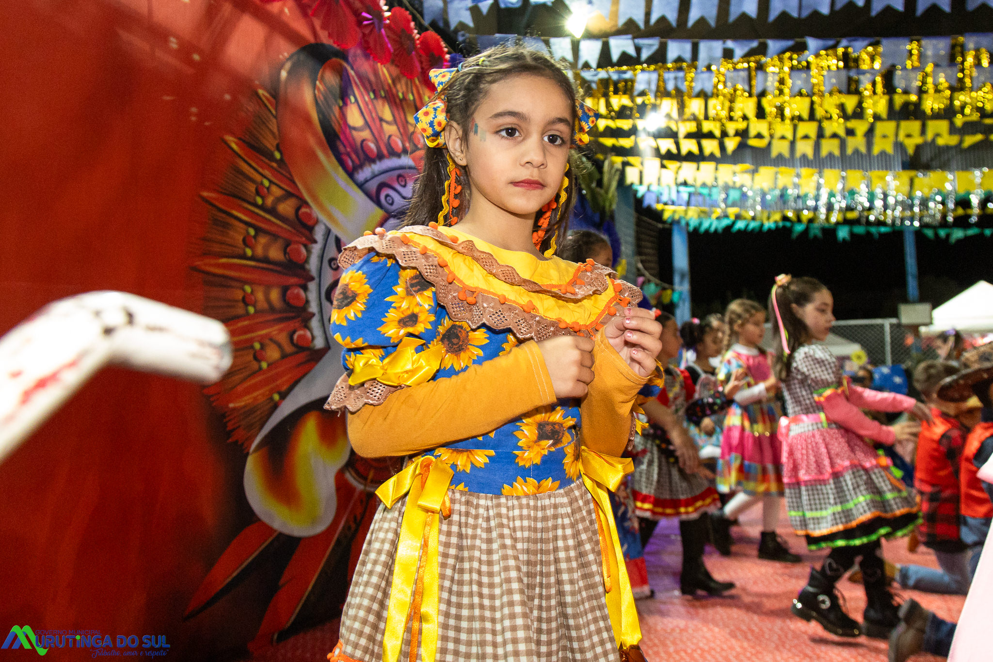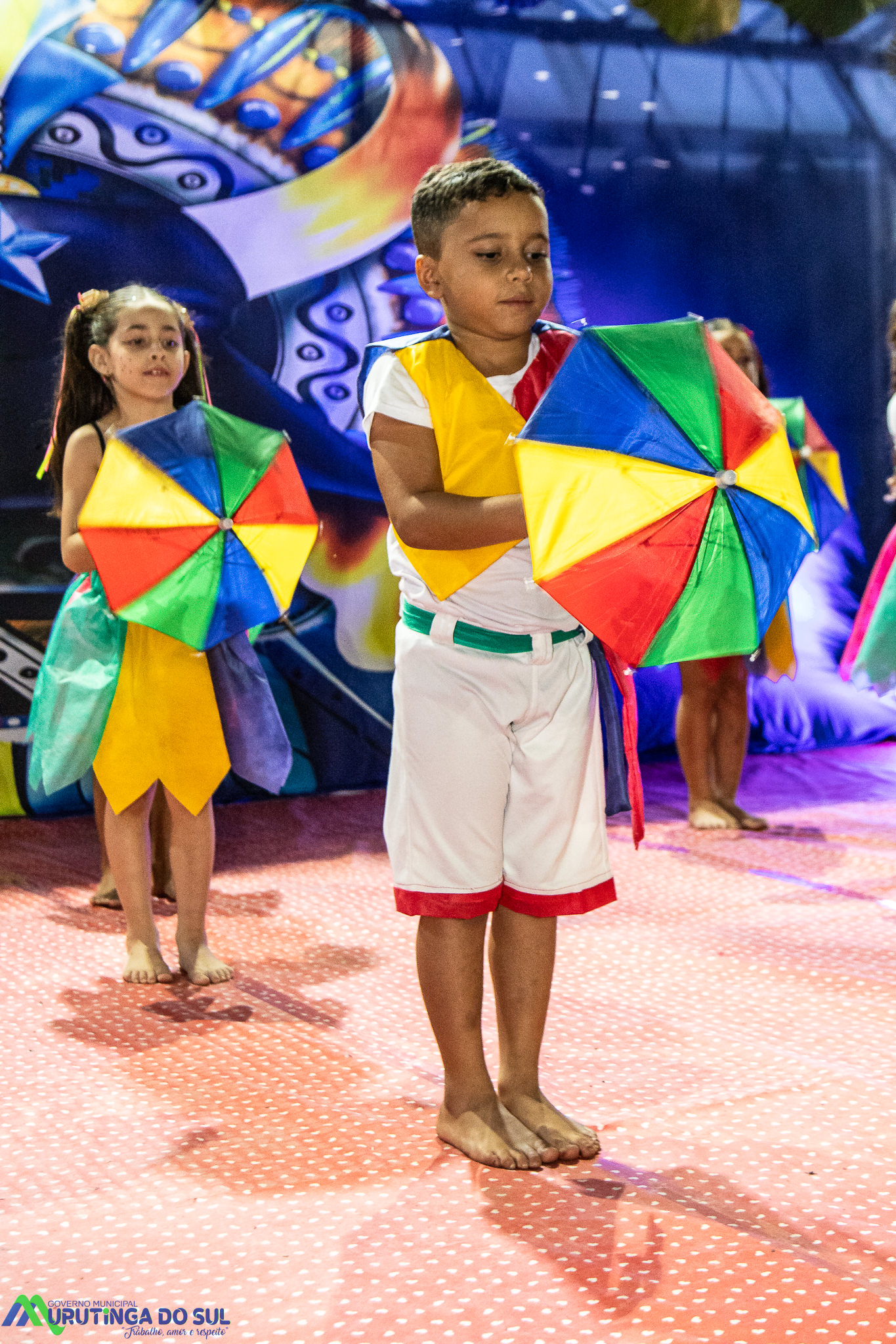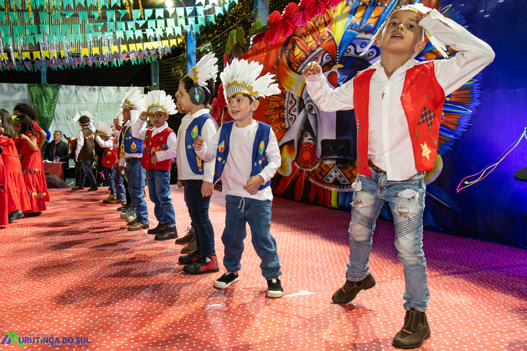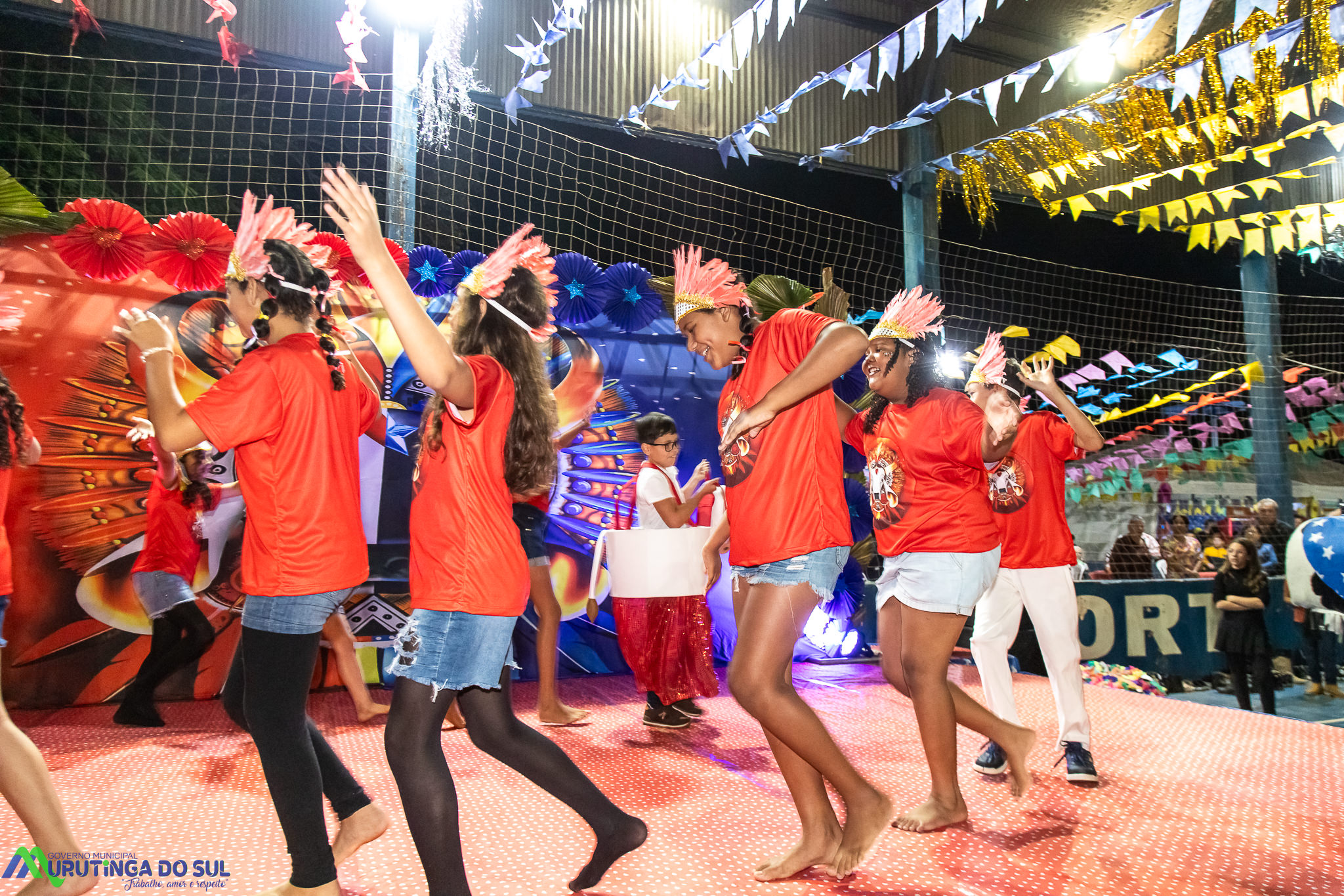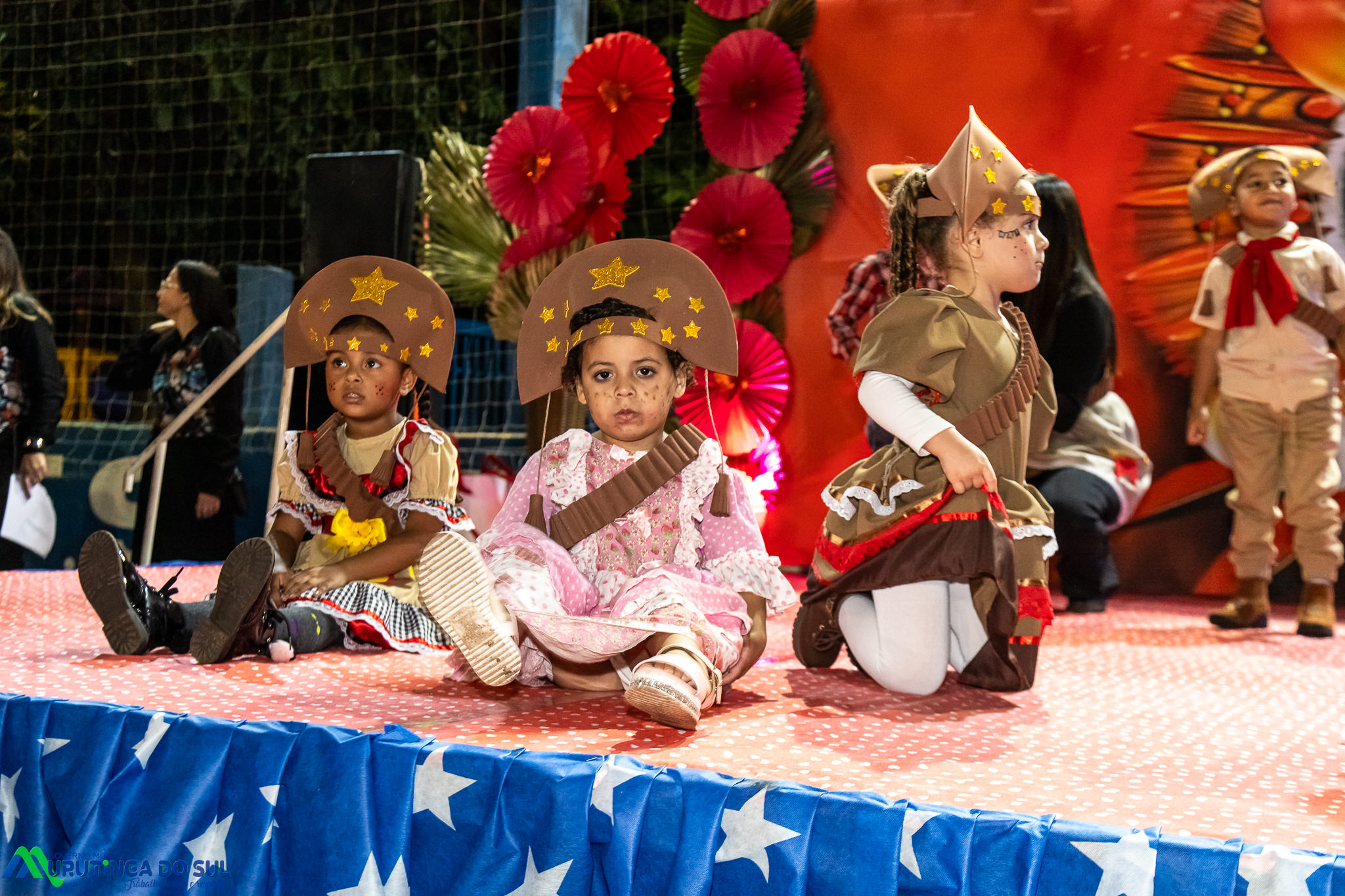 Participaram as crianças do maternal da C.E.I. e tbm as crianças da EMEIF A. Bim Storti com danças típicas daquela região como carimbó, boi bumba, Catira, Frevo e outras. Alem das danças as crianças puderam desfrutar gratuitamente de brinquedos infláveis, touro mecânico e pipoca.