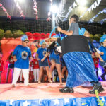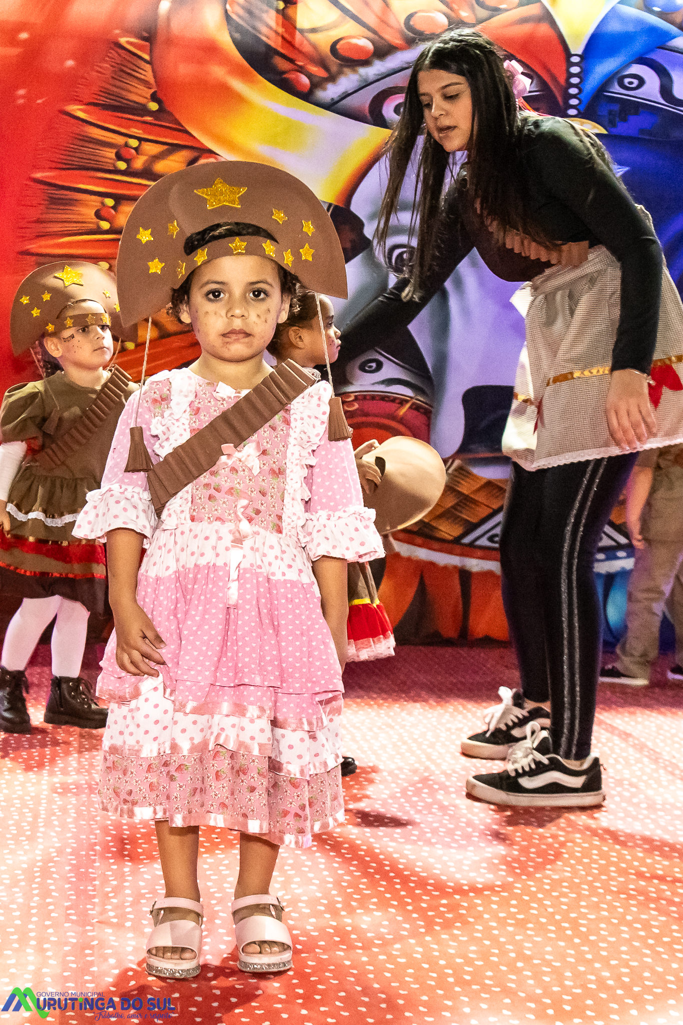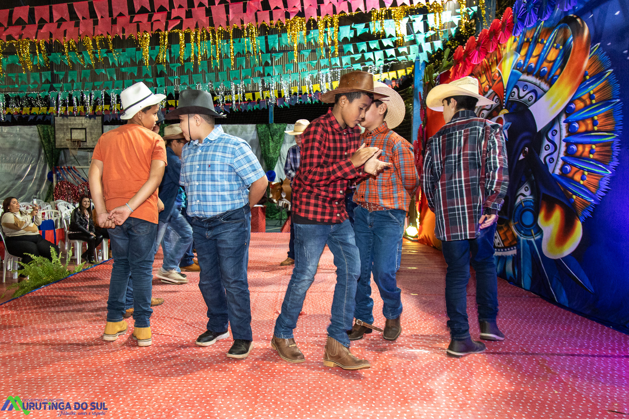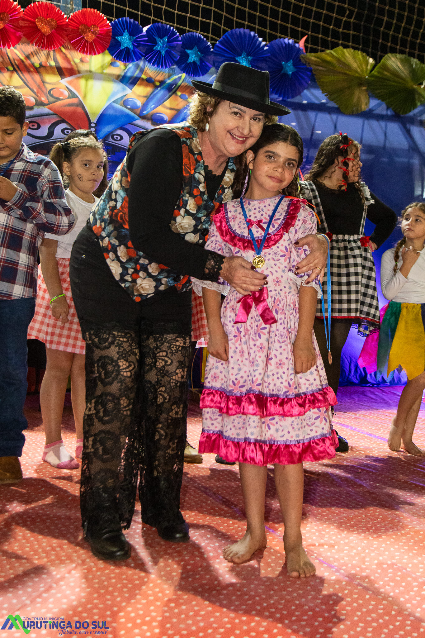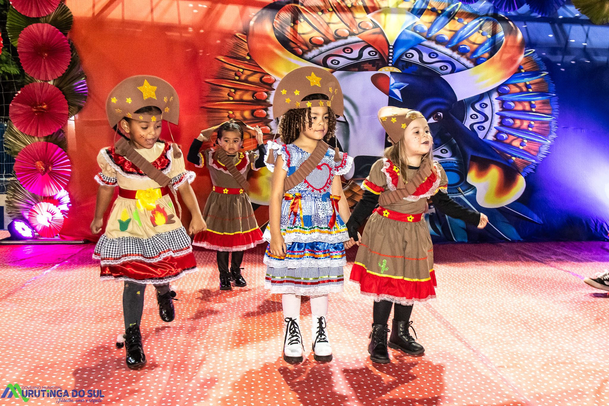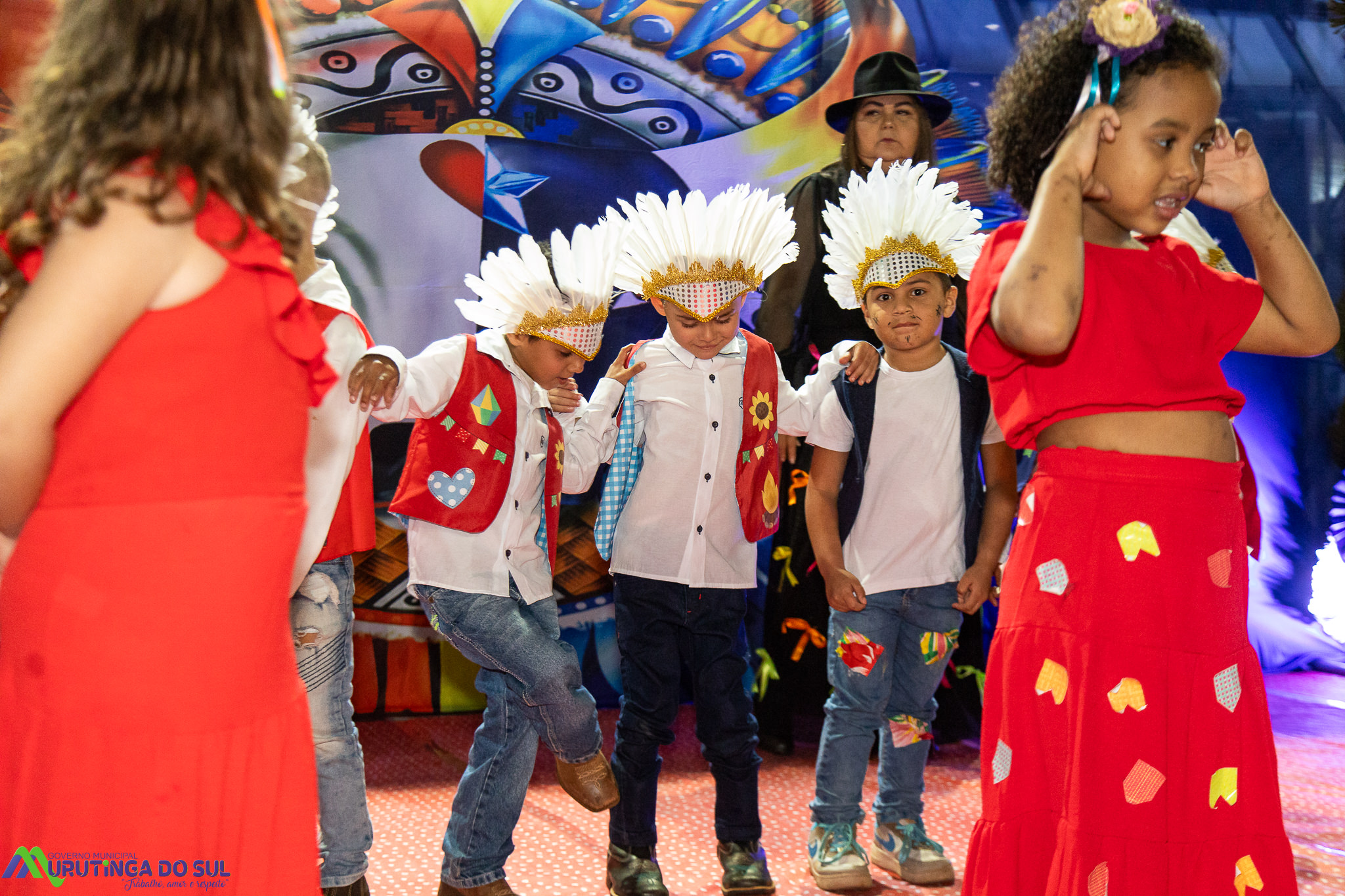Participaram as crianças do maternal da C.E.I. e tbm as crianças da EMEIF A. Bim Storti com danças típicas daquela região como carimbó, boi bumba, Catira, Frevo e outras. Alem das danças as crianças puderam desfrutar gratuitamente de brinquedos infláveis, touro mecânico e pipoca.