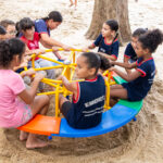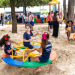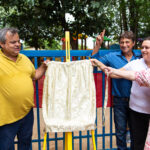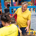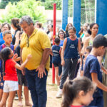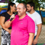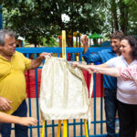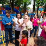 Ao lado da Direção, secretários, professores, seu vice eleito Kikão e alunos foi descerrada a placa e inaugurado oficialmente o Parque Infantil “Infância Feliz” para a alegria da criançada que correram para “inaugurar” os Brinquedos novos!