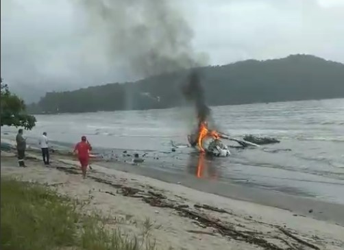 Um avião de pequeno porte caiu na Rua Guarani, bairro Itaguá, em Ubatuba, no litoral de São Paulo, por volta das 10h desta quinta-feira (09).
