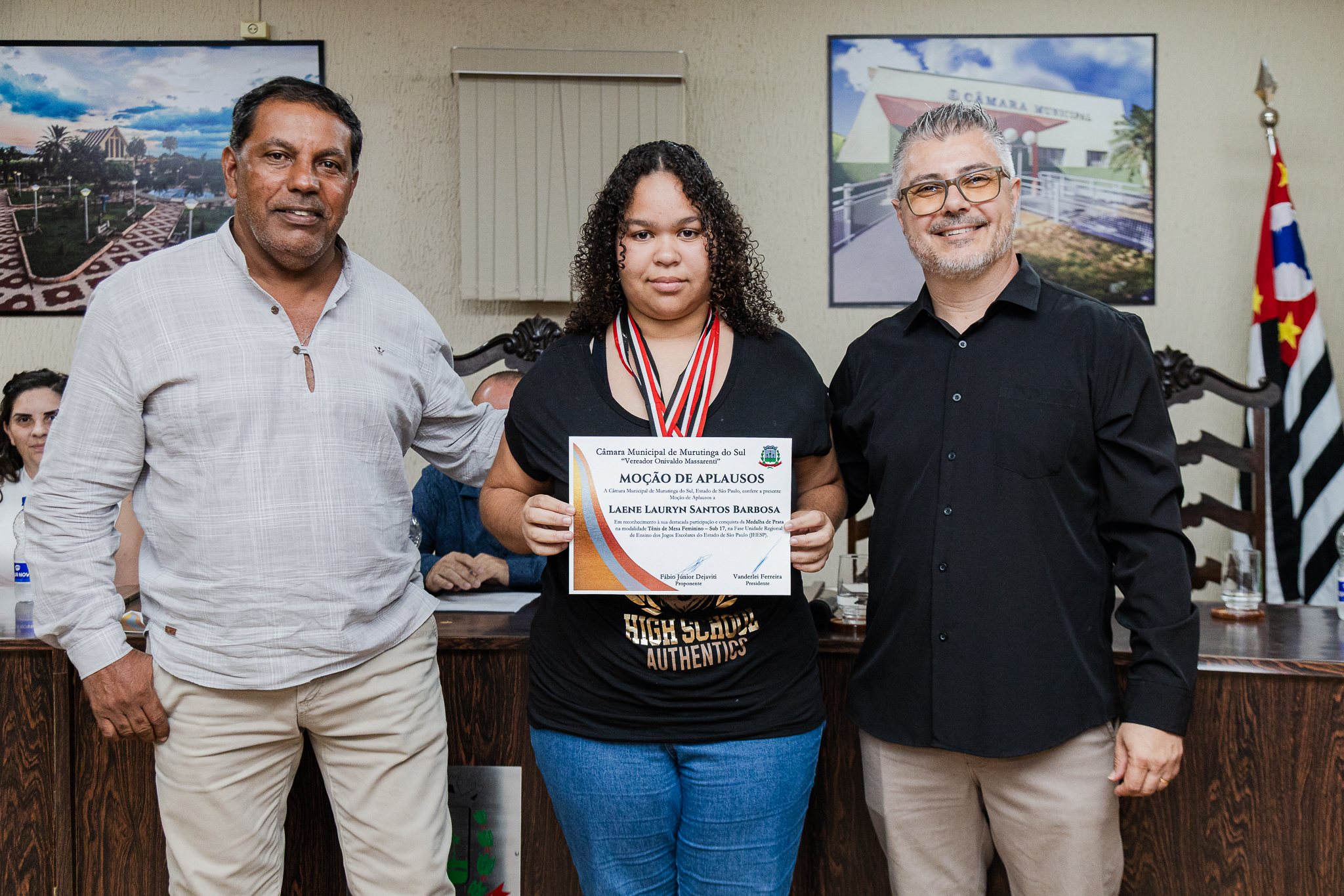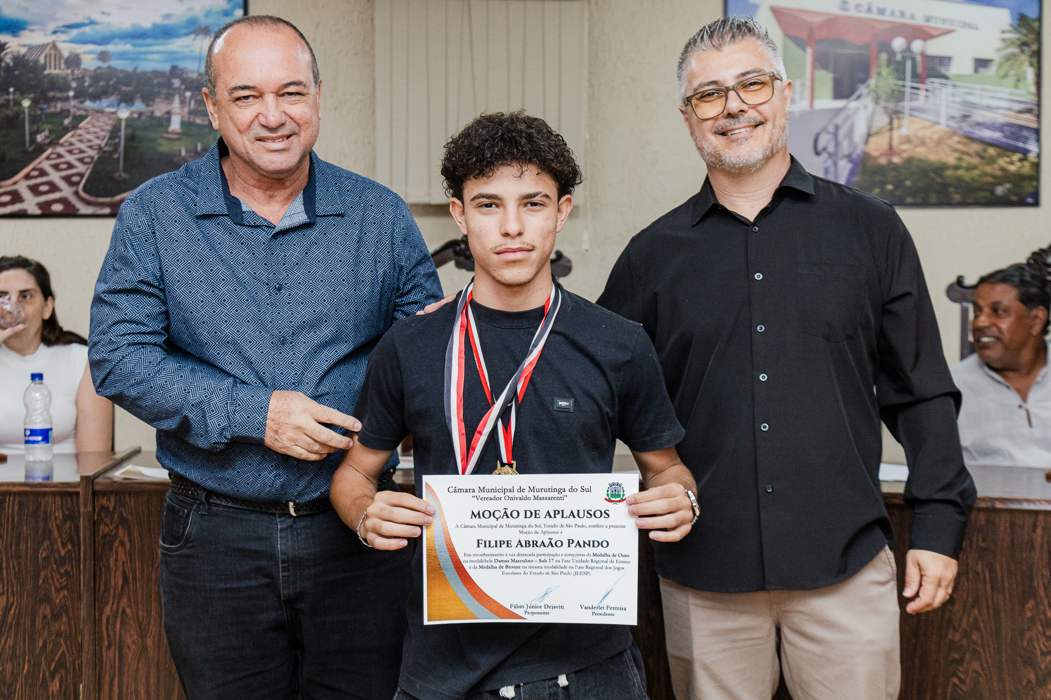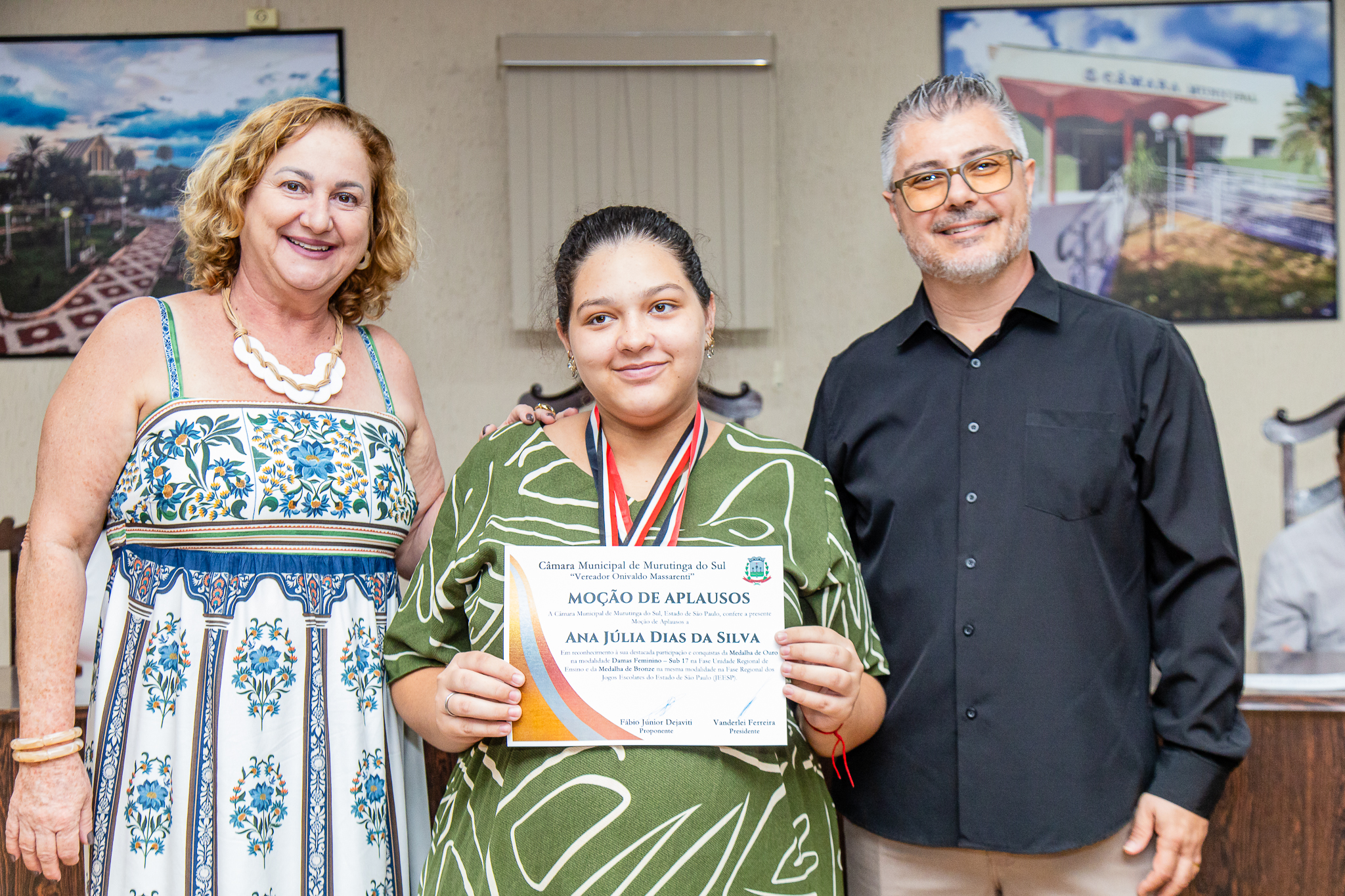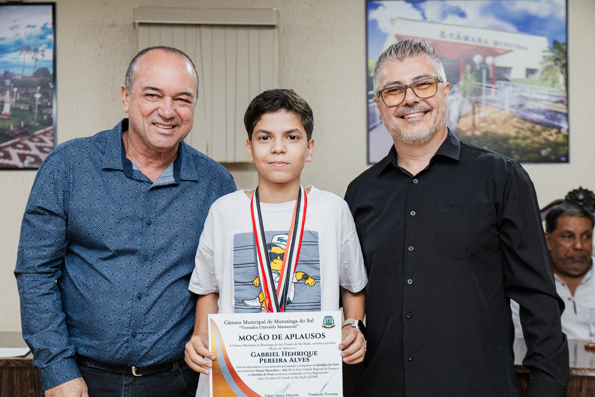 “A homenagem é um reconhecimento ao esforço e dedicação dos alunos e da professora Mariana Peres Pereira, que contribuíram para o sucesso esportivo da cidade de Murutinga do Sul”, destacou o autor das homenagens.
