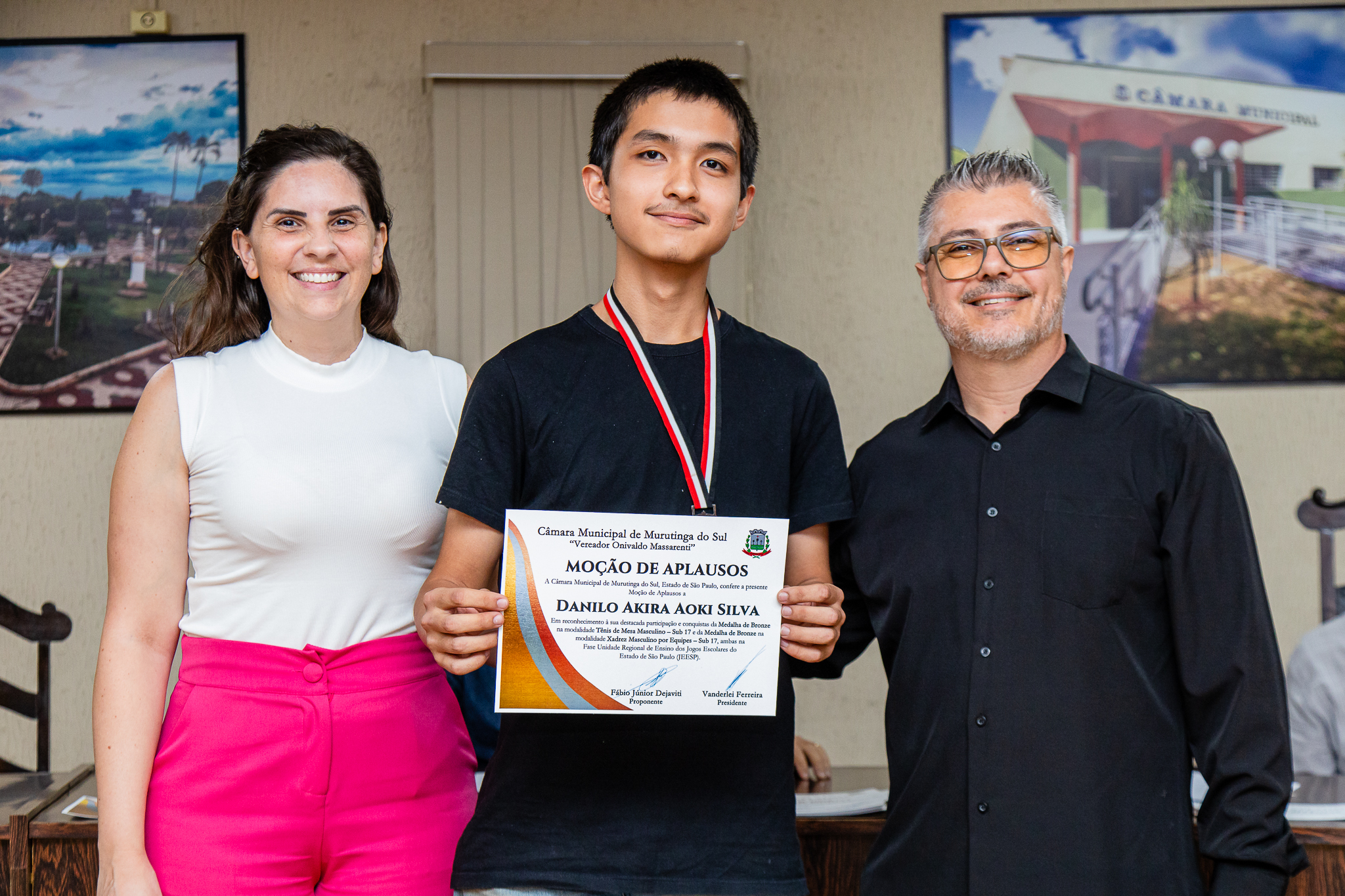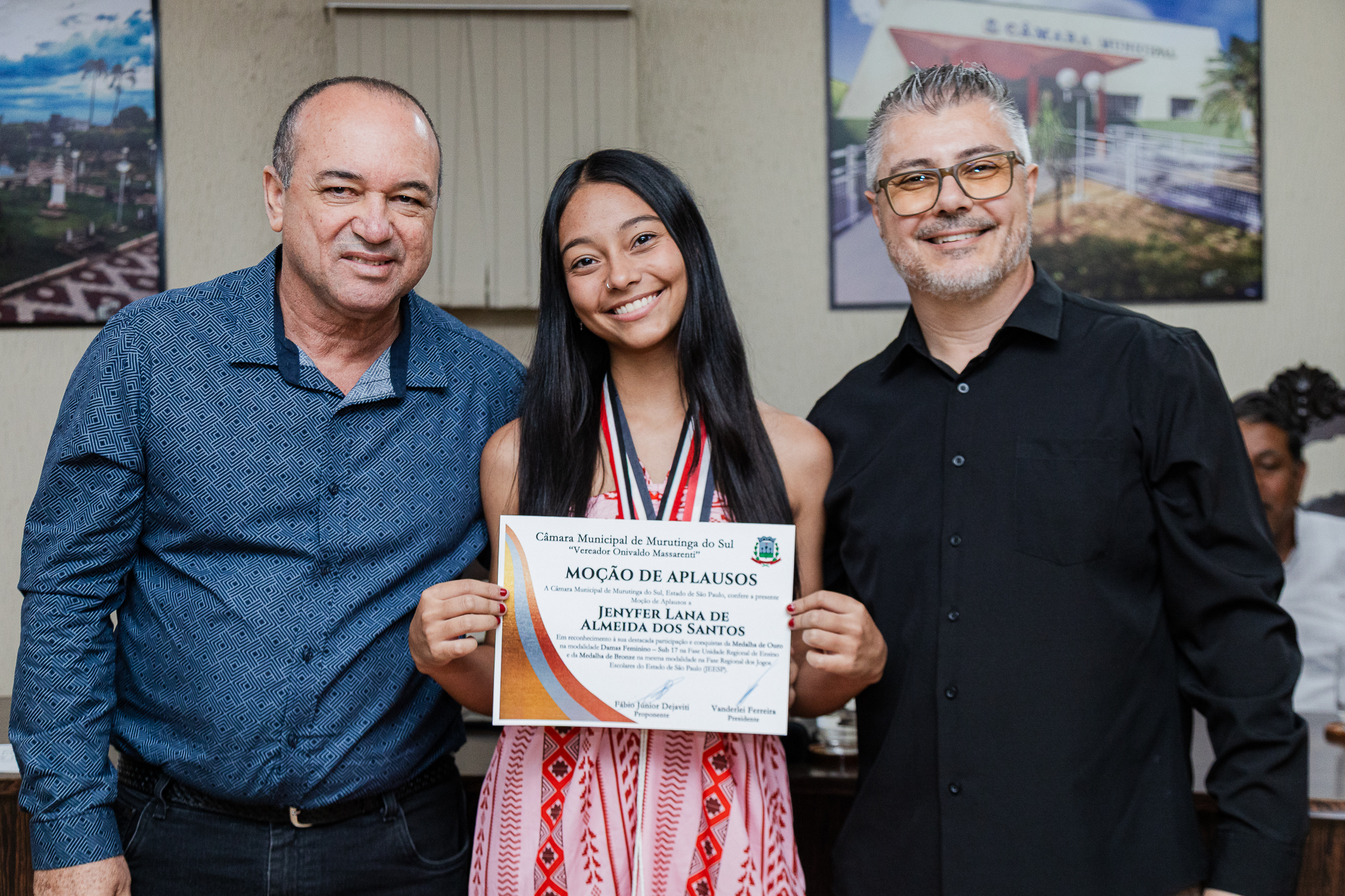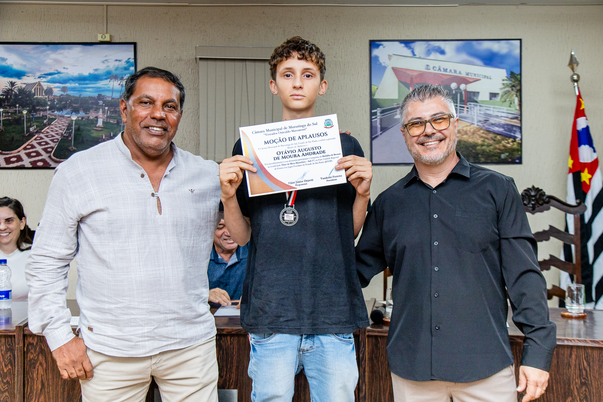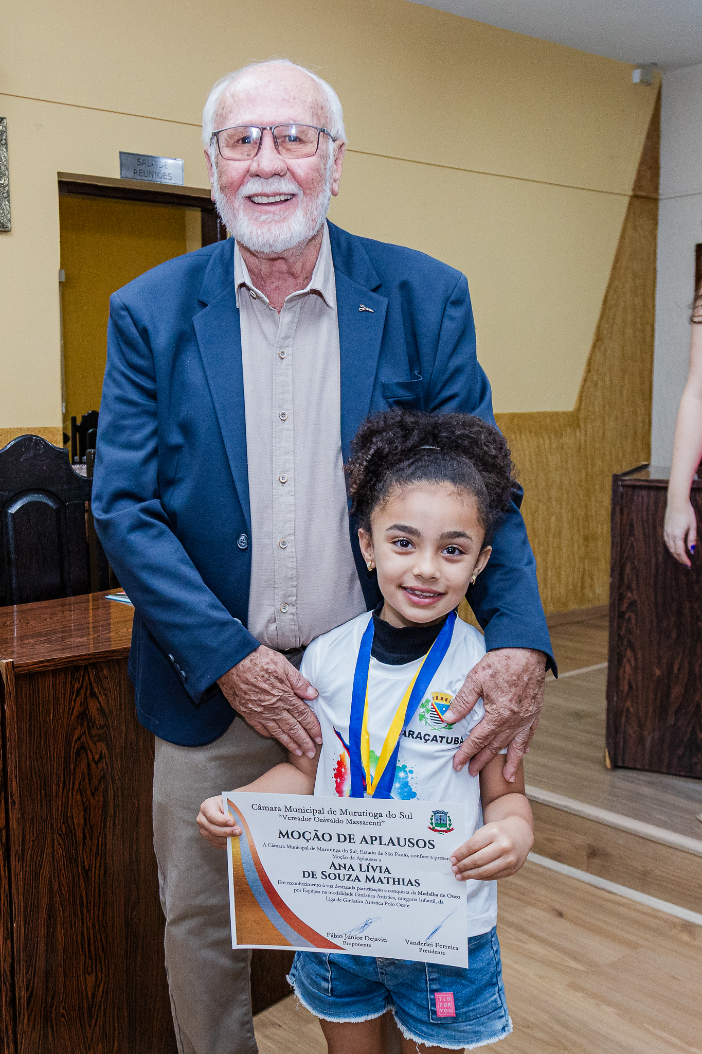 “A homenagem é um reconhecimento ao esforço e dedicação dos alunos e da professora Mariana Peres Pereira, que contribuíram para o sucesso esportivo da cidade de Murutinga do Sul”, destacou o autor das homenagens.