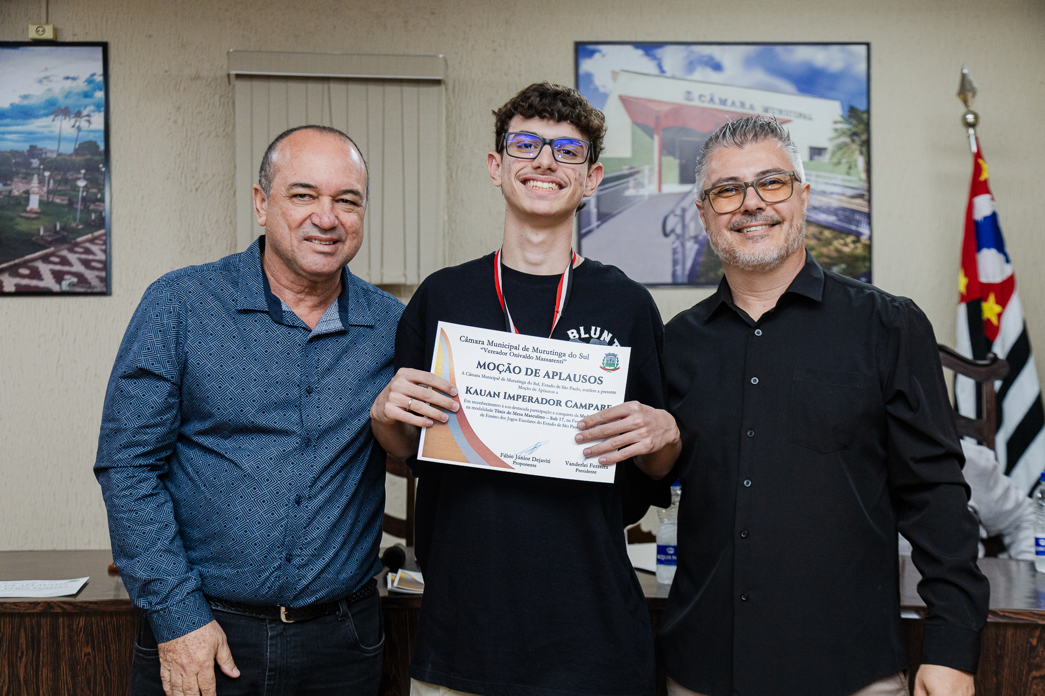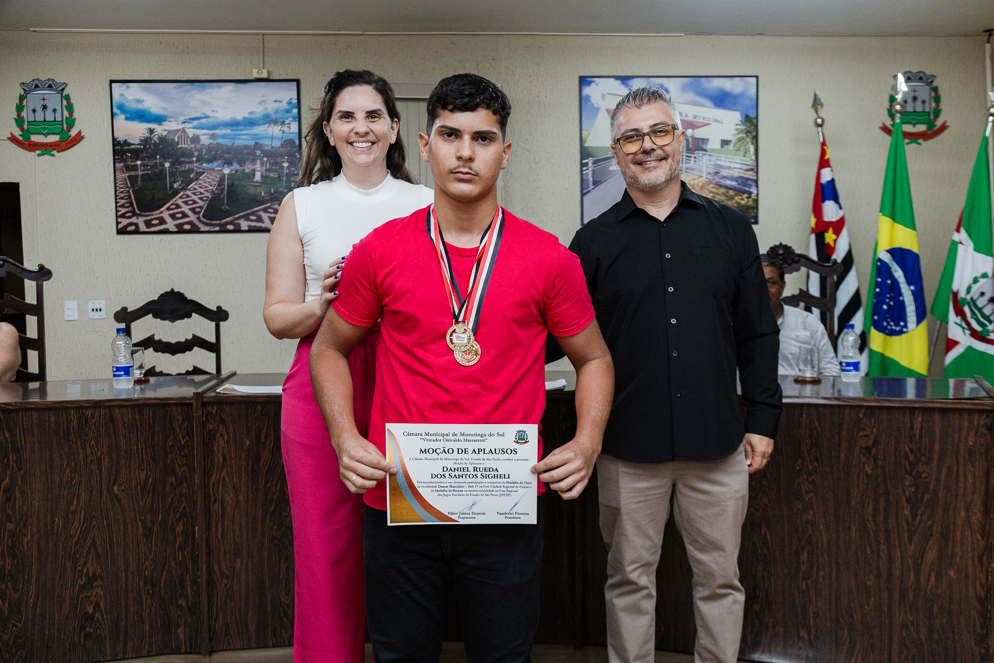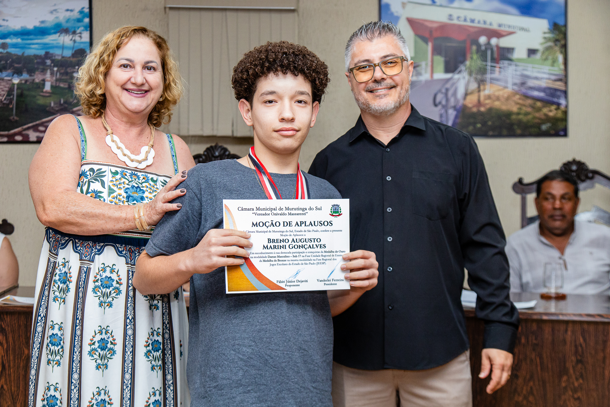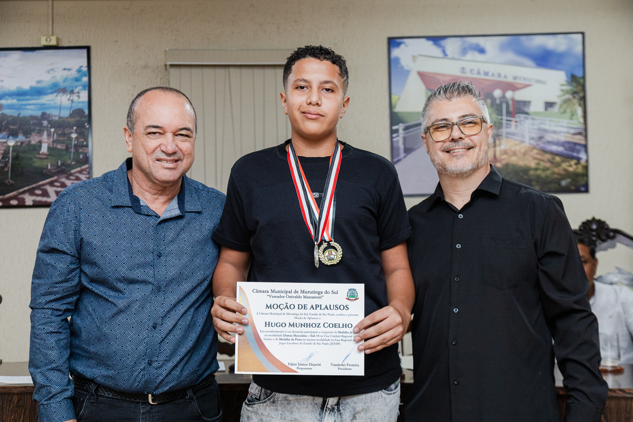 O ponto alto da noite foi a entrega dos diplomas de Moção de Aplausos. Um a um, os alunos medalhistas foram chamados ao plenário para receber o merecido reconhecimento. Com sorrisos largos e visível orgulho, cada jovem segurou seu diploma, simbolizando não apenas uma conquista esportiva, mas também o respeito e a admiração de toda a comunidade murutinguense.