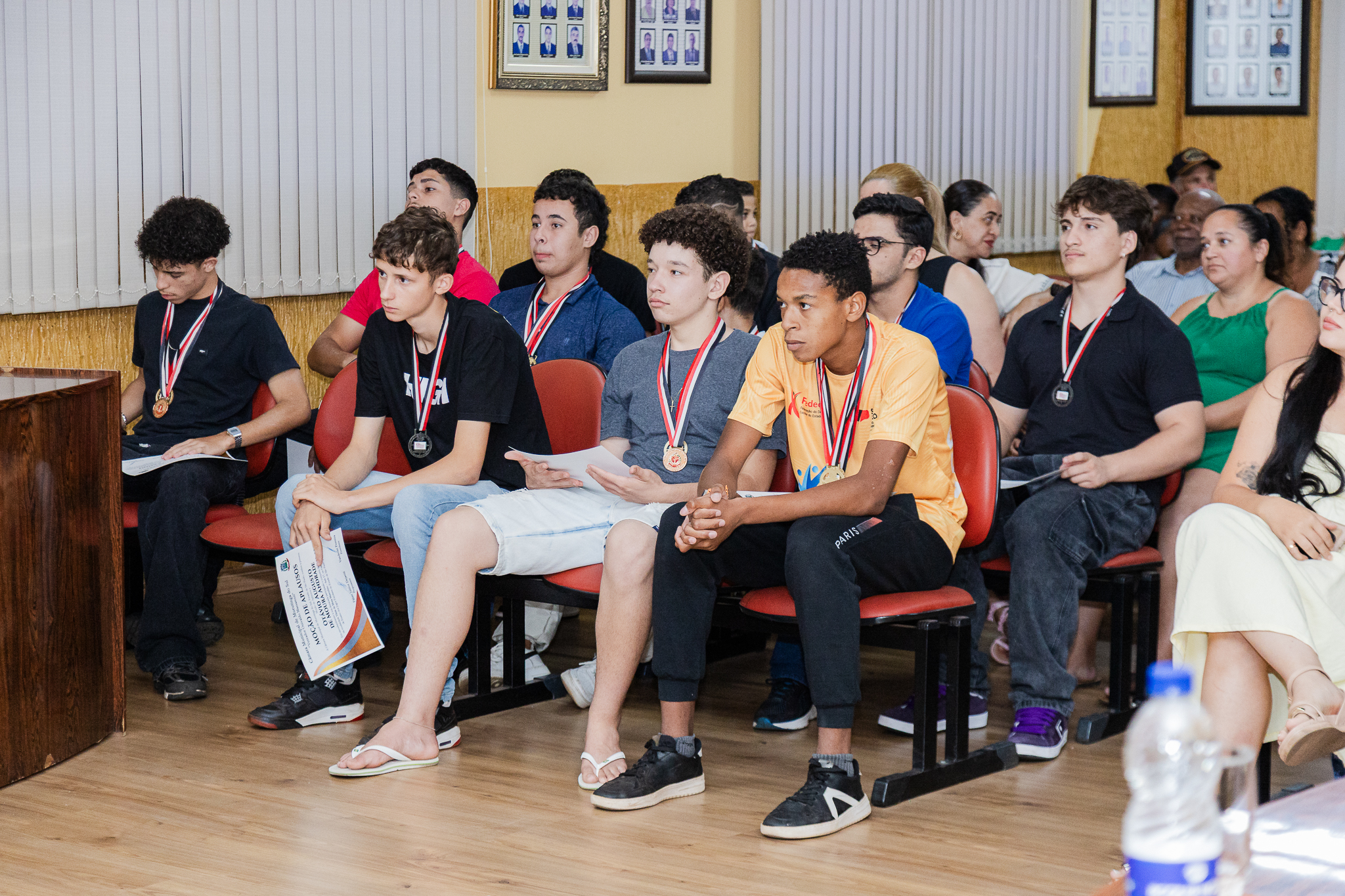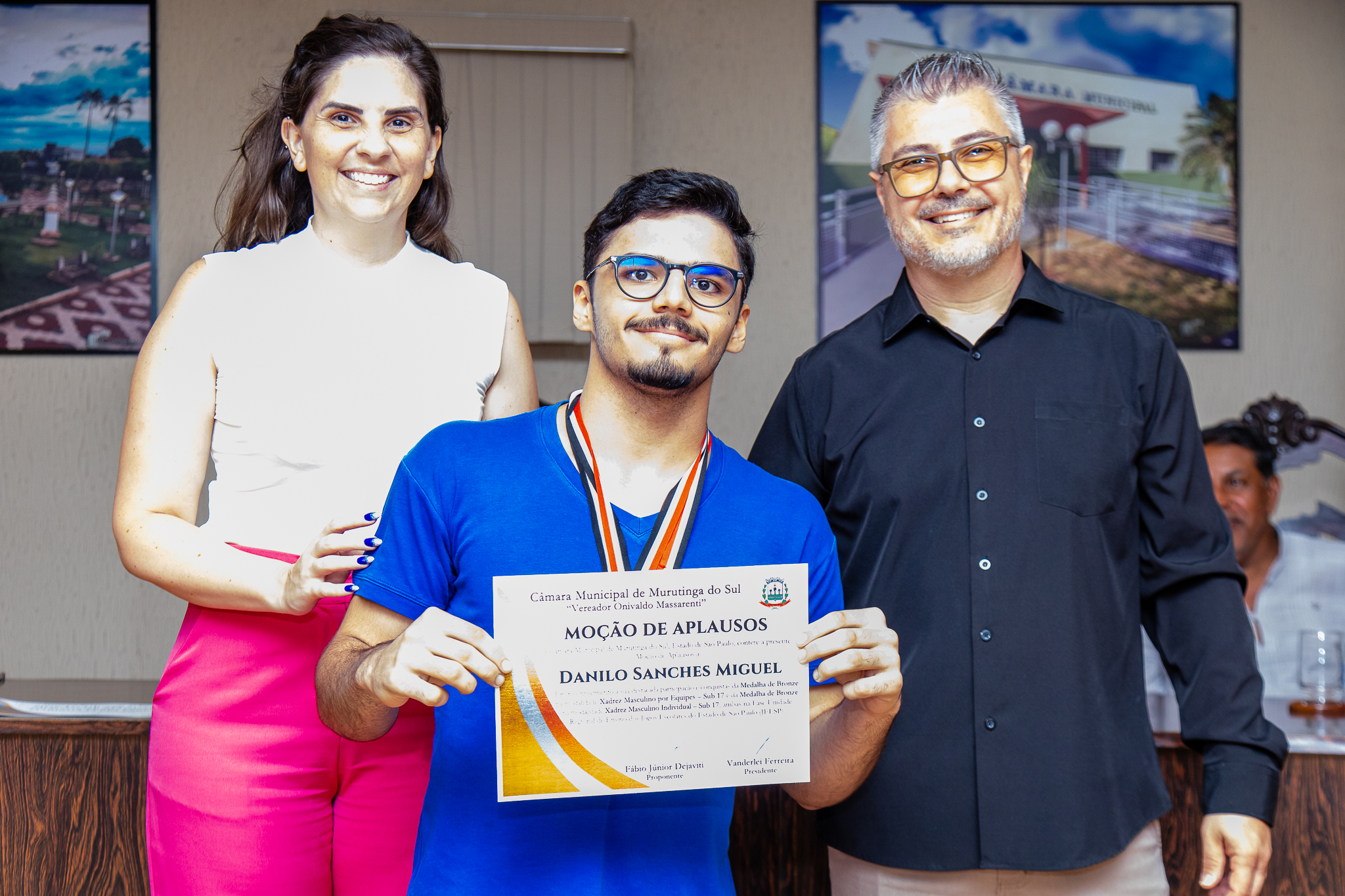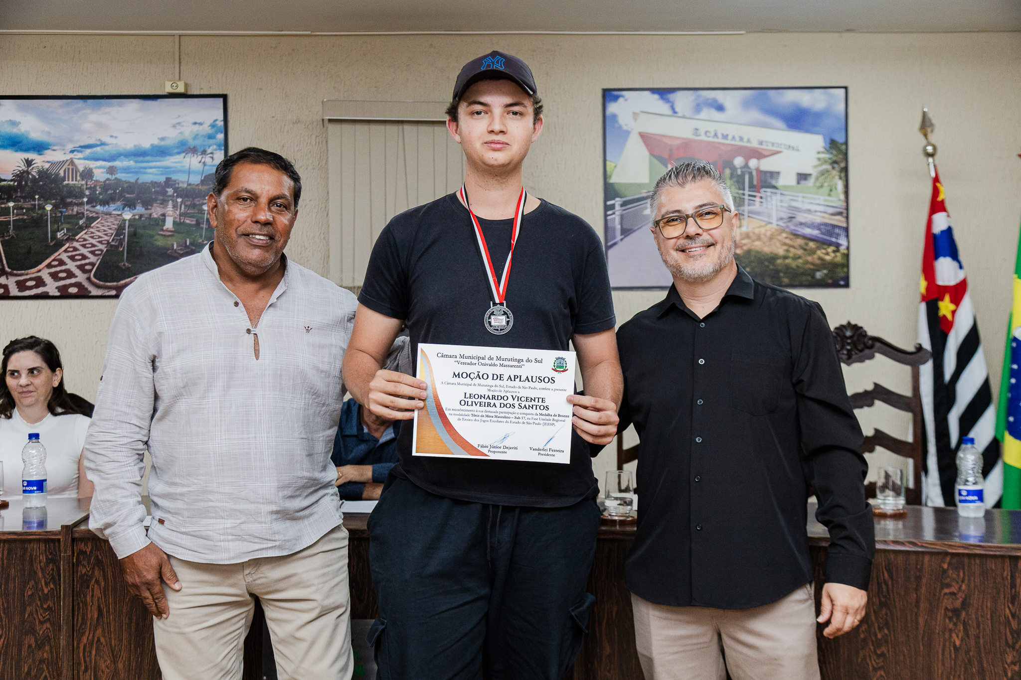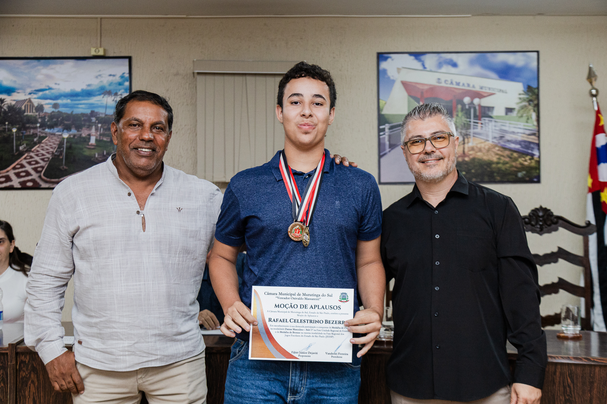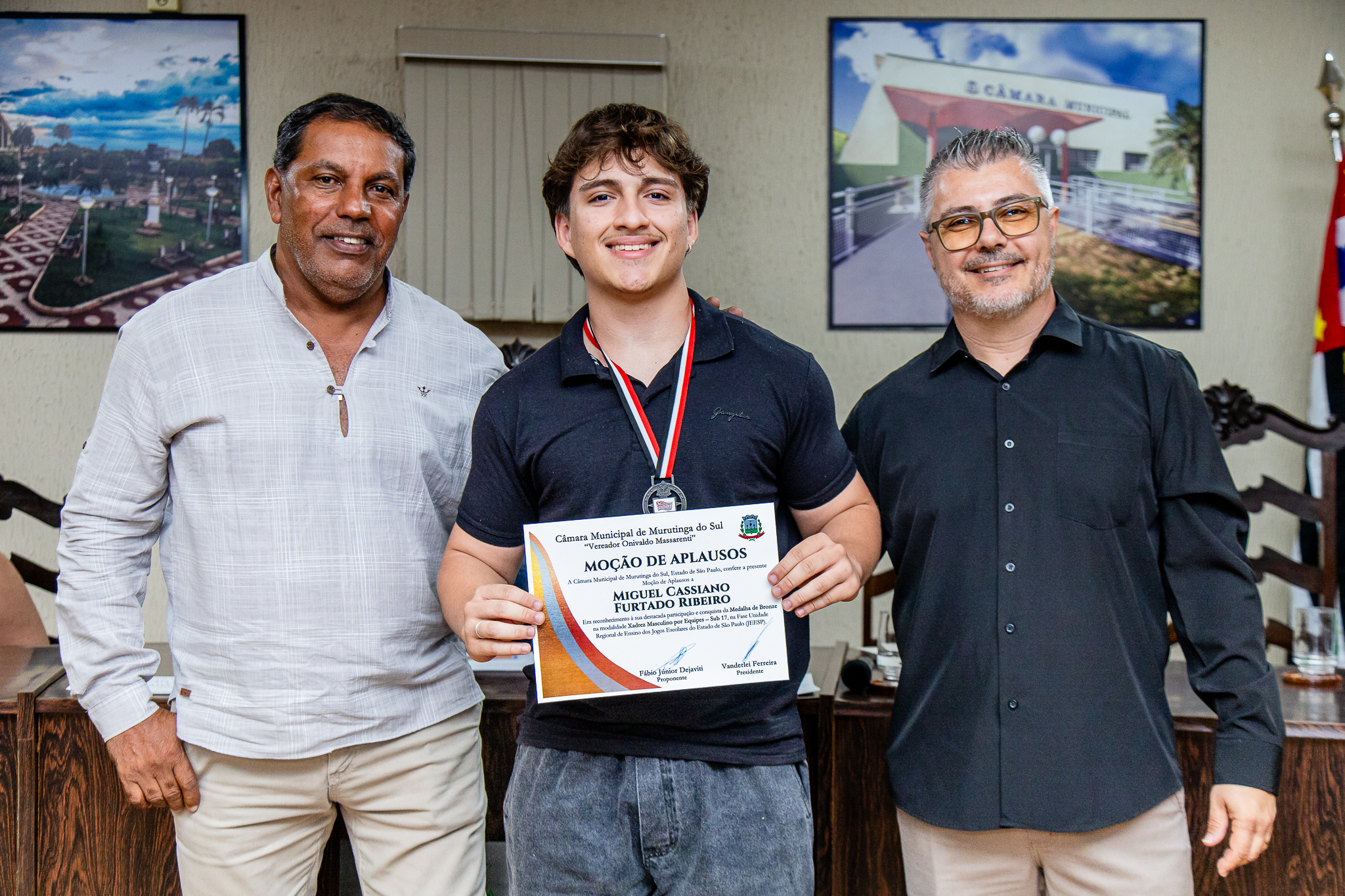 O ponto alto da noite foi a entrega dos diplomas de Moção de Aplausos. Um a um, os alunos medalhistas foram chamados ao plenário para receber o merecido reconhecimento. Com sorrisos largos e visível orgulho, cada jovem segurou seu diploma, simbolizando não apenas uma conquista esportiva, mas também o respeito e a admiração de toda a comunidade murutinguense.