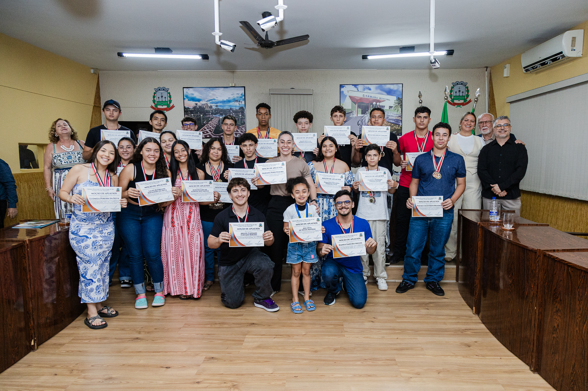 A proposta de homenagem foi apresentada pelo vereador Fábio Júnior Dejaviti e aprovada por unanimidade pelos demais colegas. O ambiente foi de pura alegria e orgulho, com o espaço repleto de estudantes, pais, mães e familiares, que acompanharam emocionados a cerimônia. A solenidade destacou o talento, a dedicação e o esforço dos jovens atletas do município.